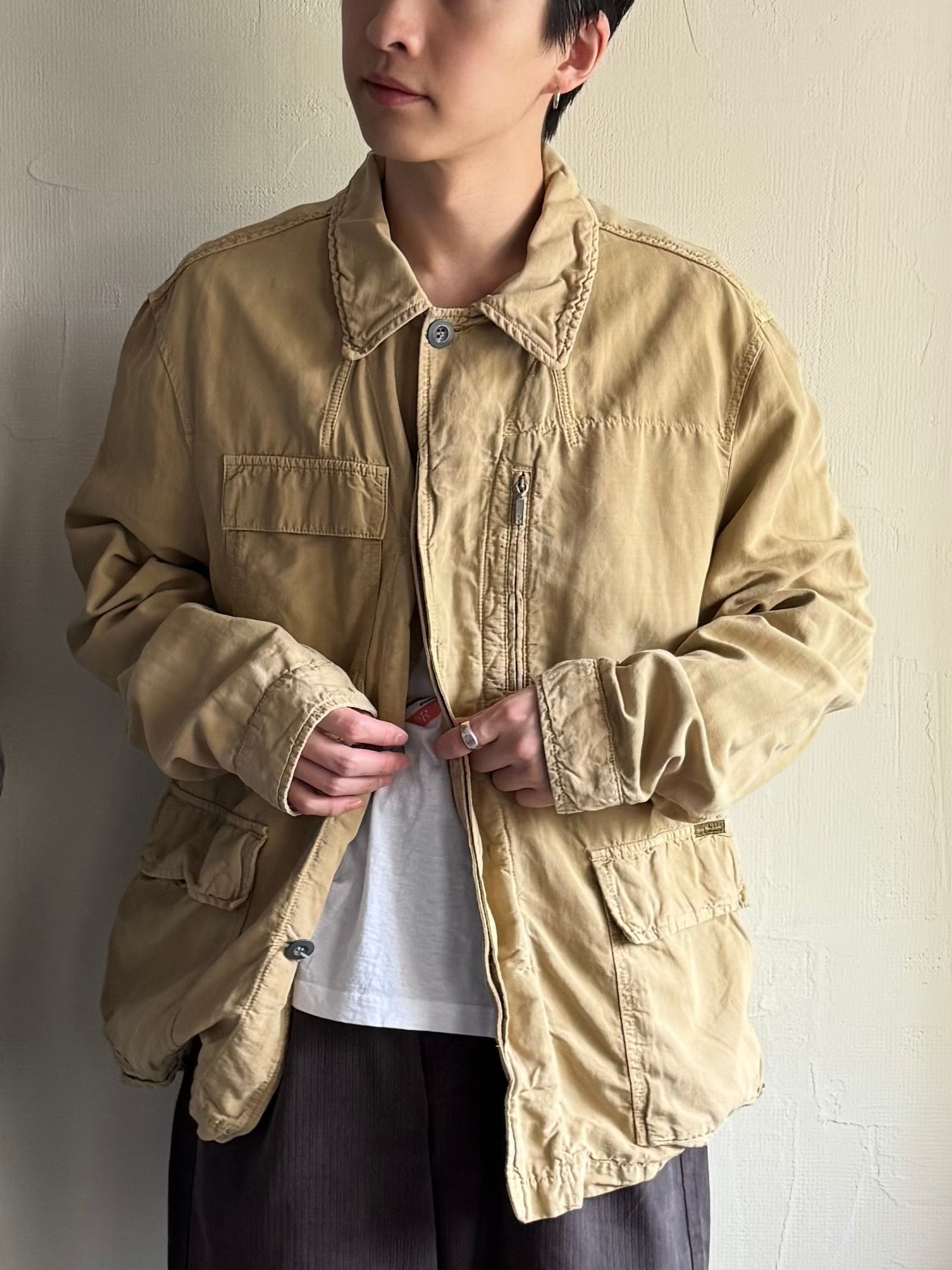 ミリタリーのジャケットを何個かサンプリングしたようなディテール。