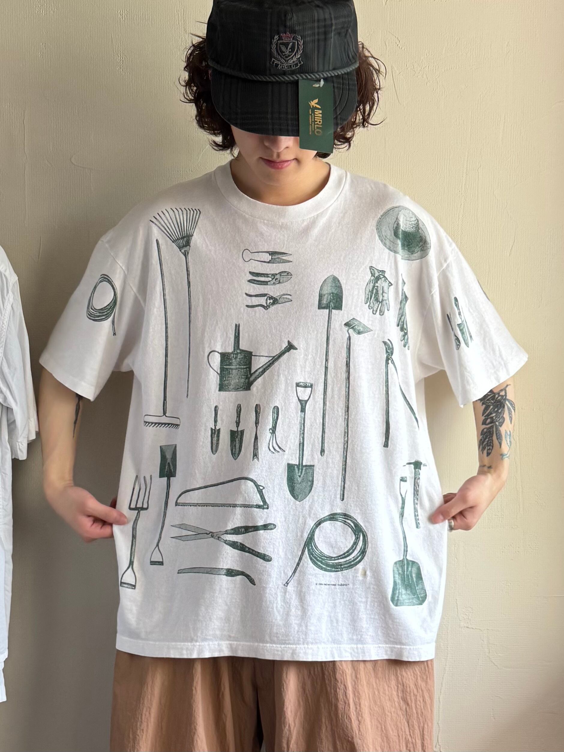 こちらは代表とも言える農具のアートプリントTシャツ。