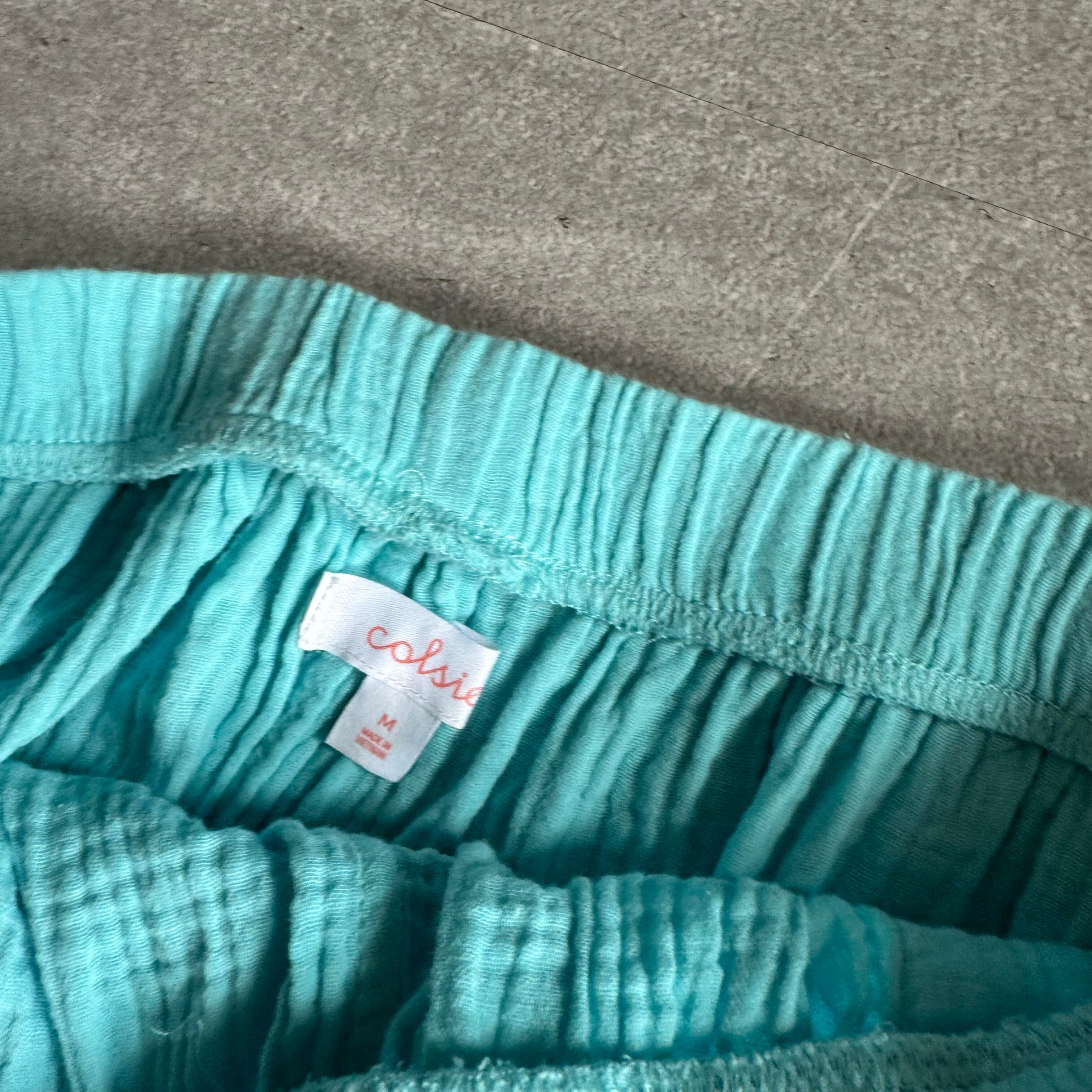 あまり見かけないガーゼ生地のカラーパンツ。