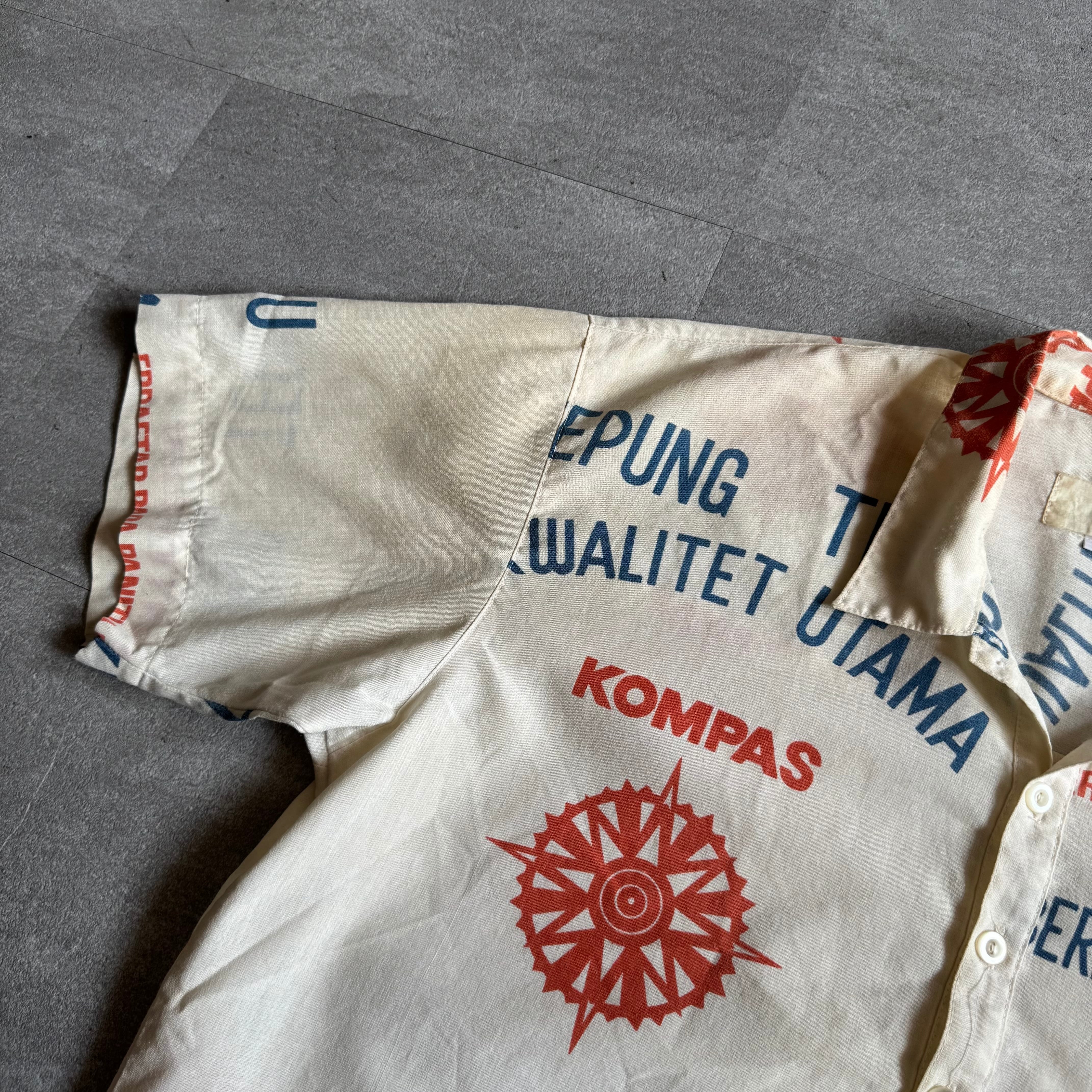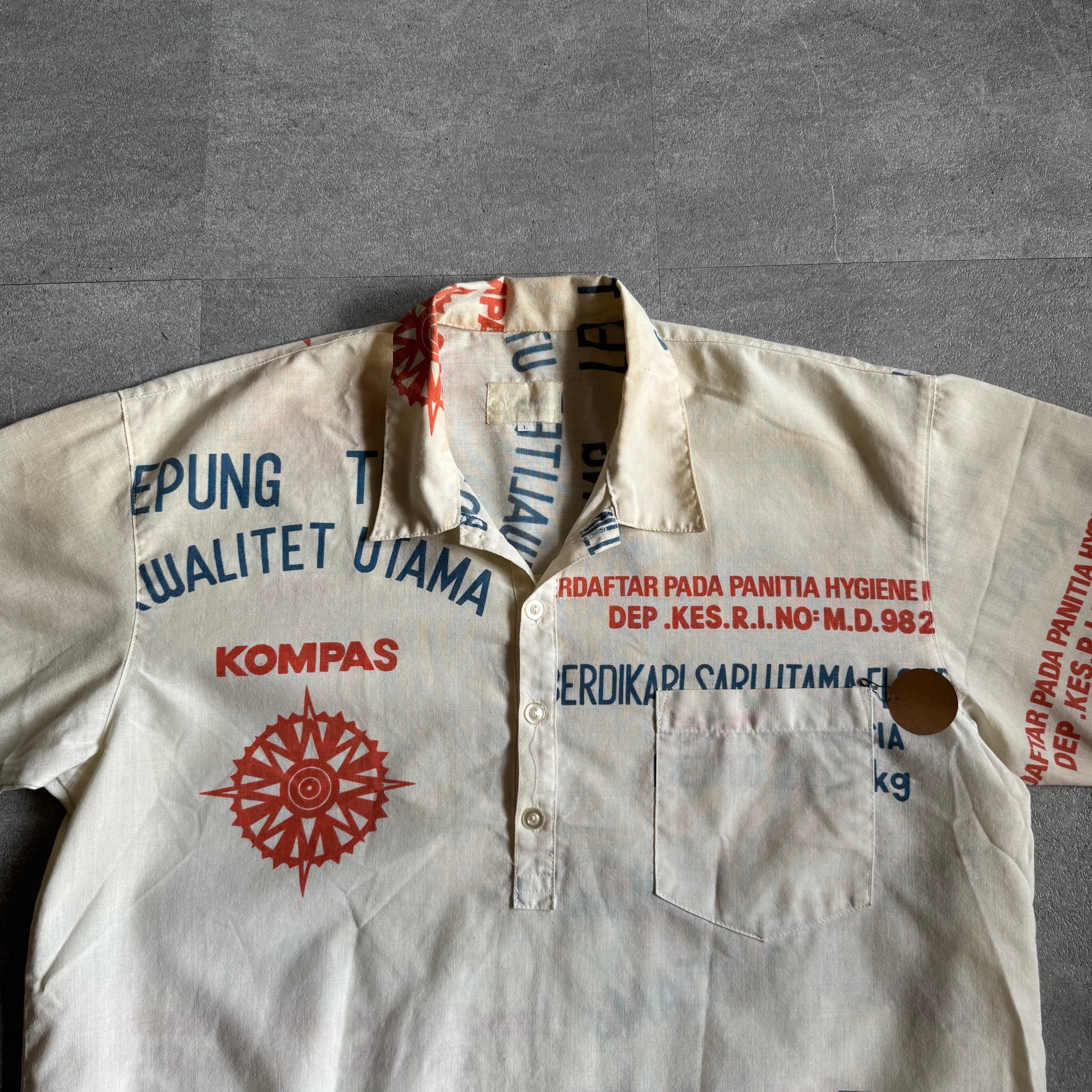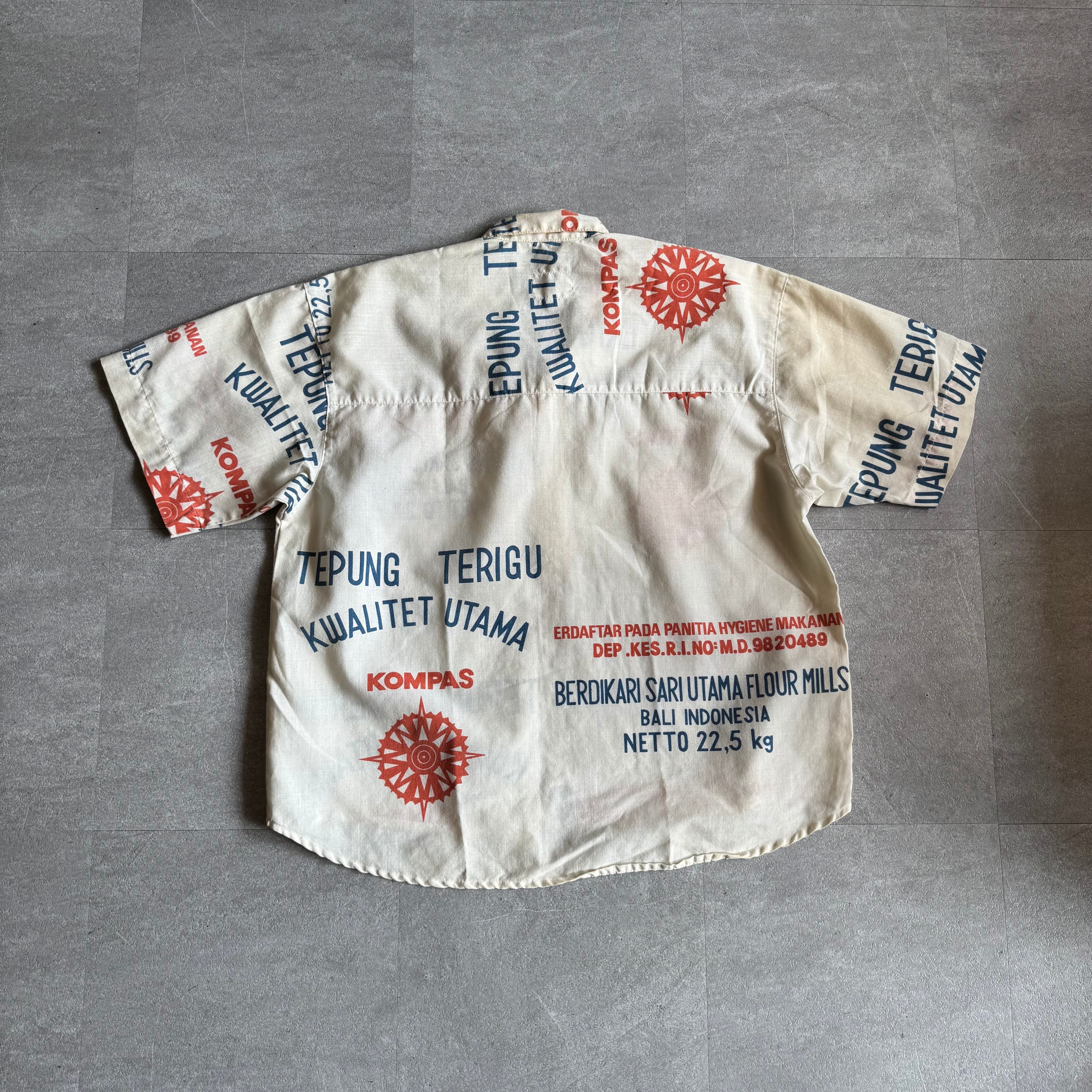 フードサック(主に穀物などを入れる袋)をリメイクして作られたシャツ。