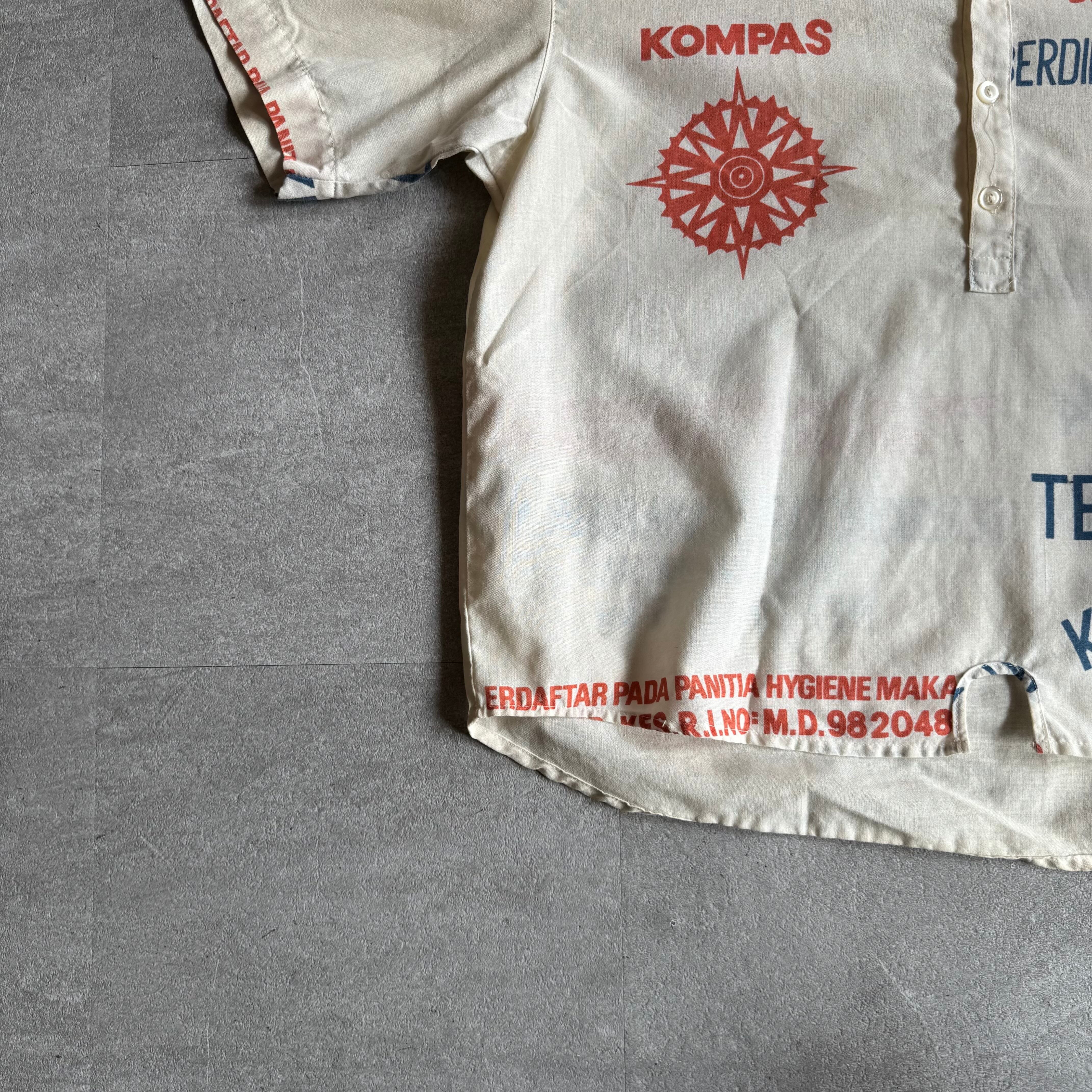 【USED】1960-70s food sack remake shirt