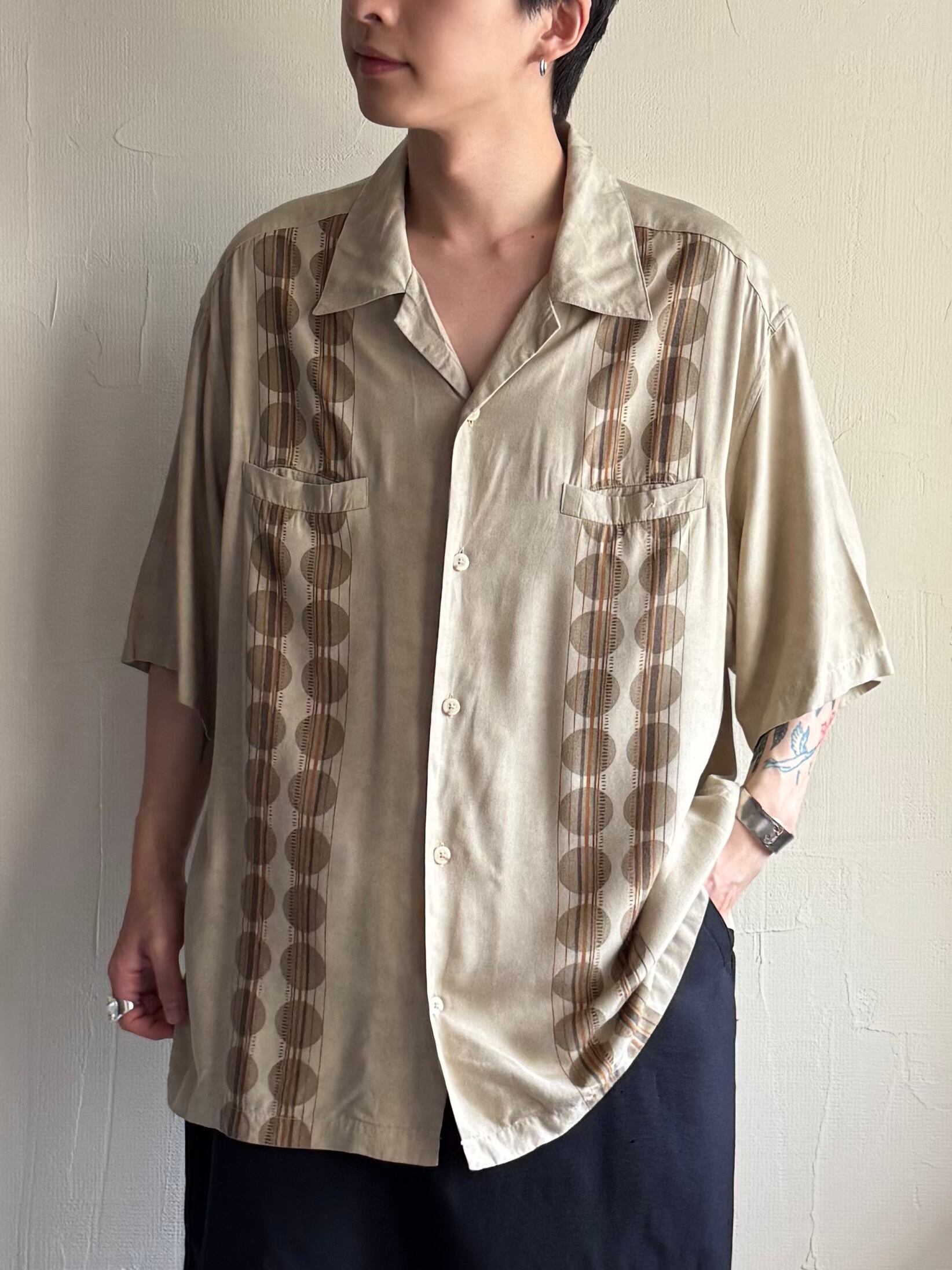 【USED】00s Claiborne rayon open-collar shirt