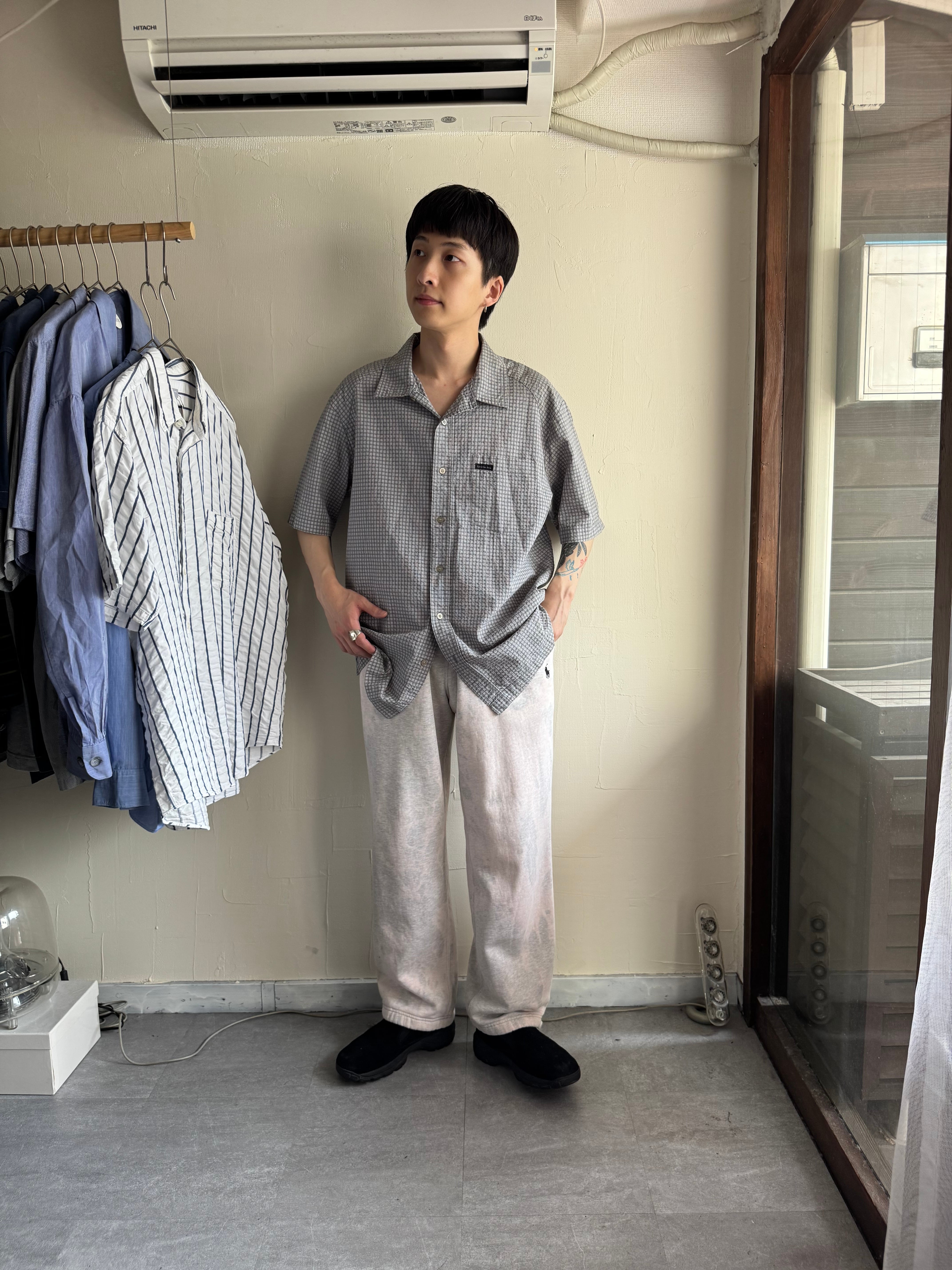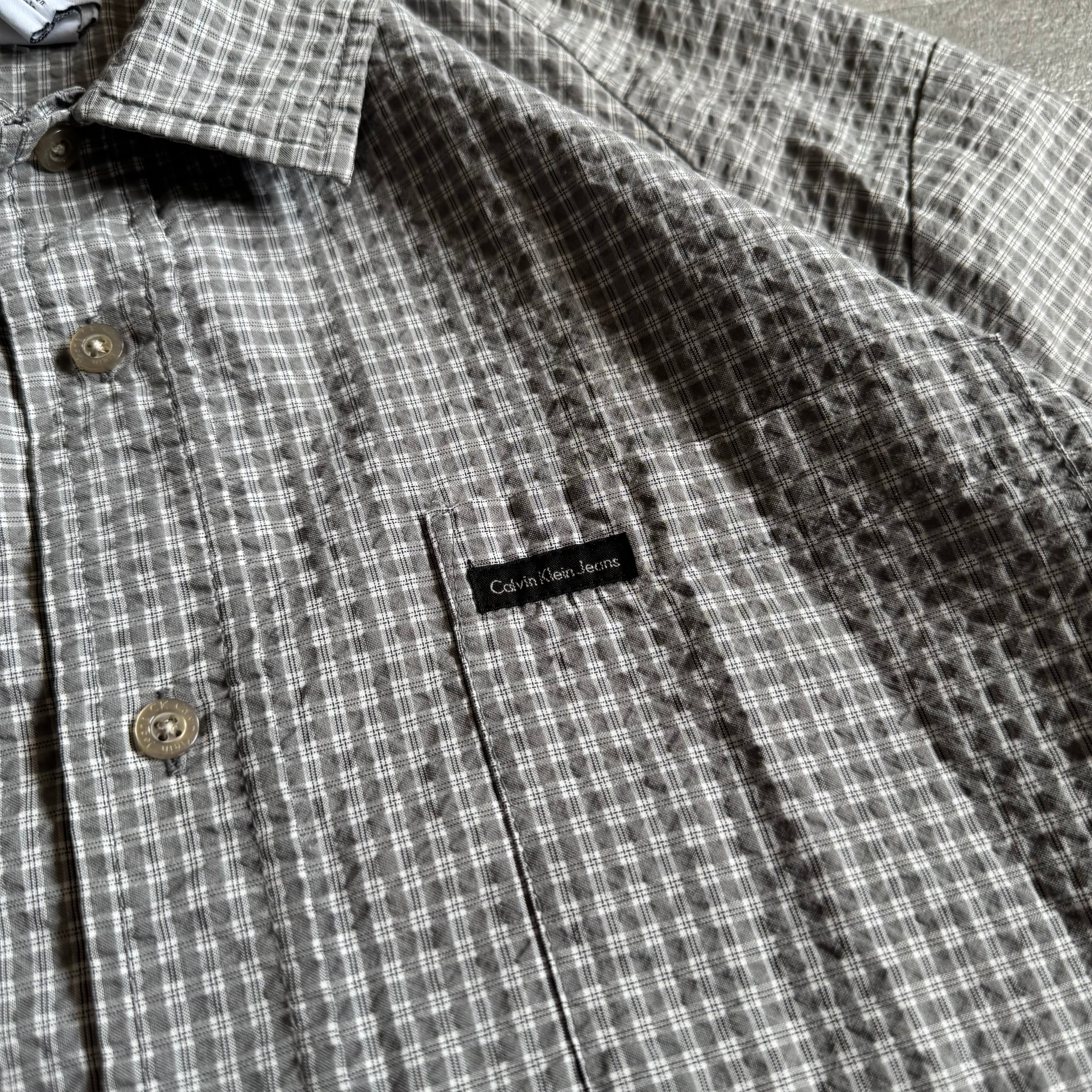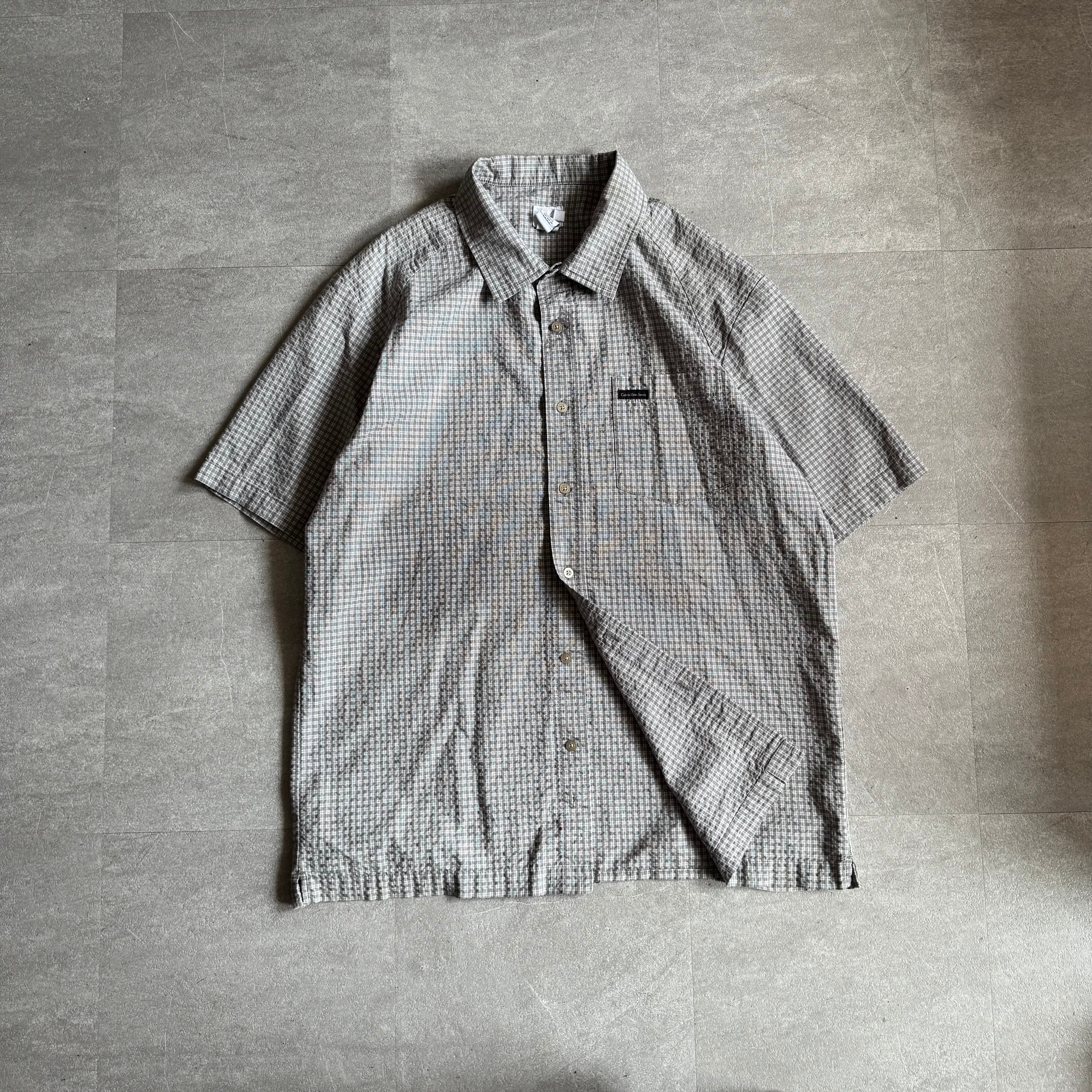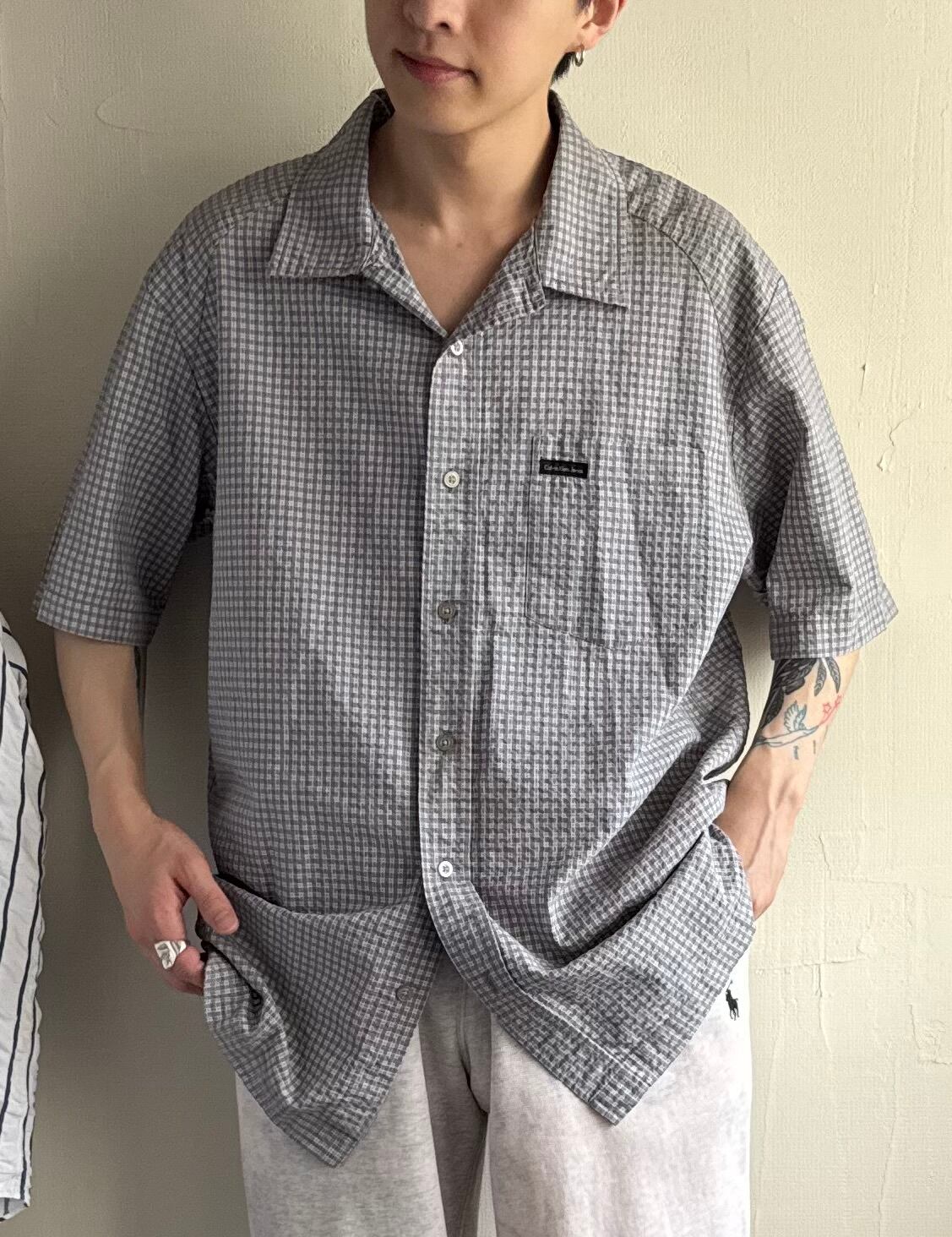 【USED】90s Calvin Klein jeans seersucker open-collar shirt
