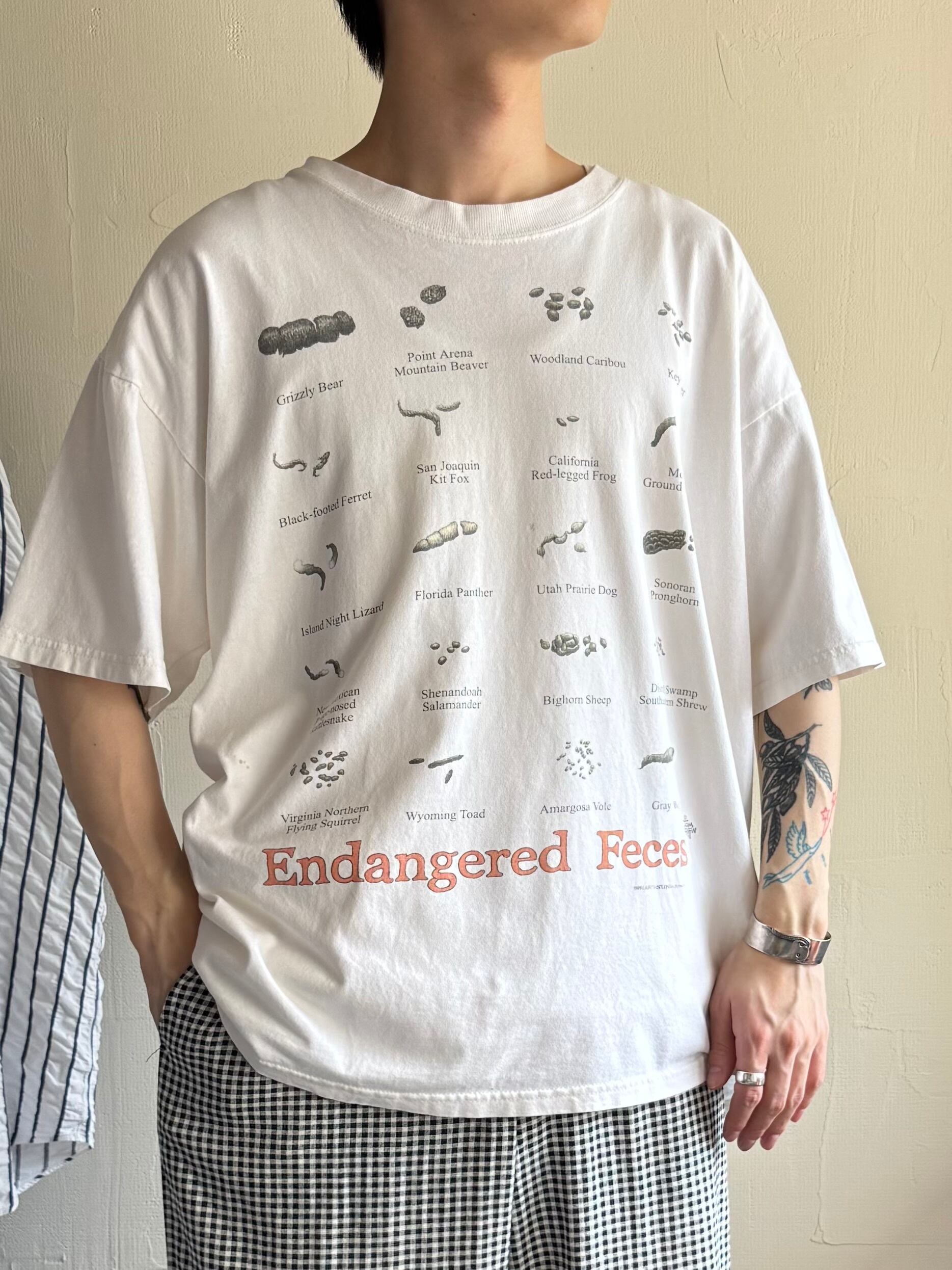 「Endangered Feces」 「絶滅危惧フン」 というジョークTEE
