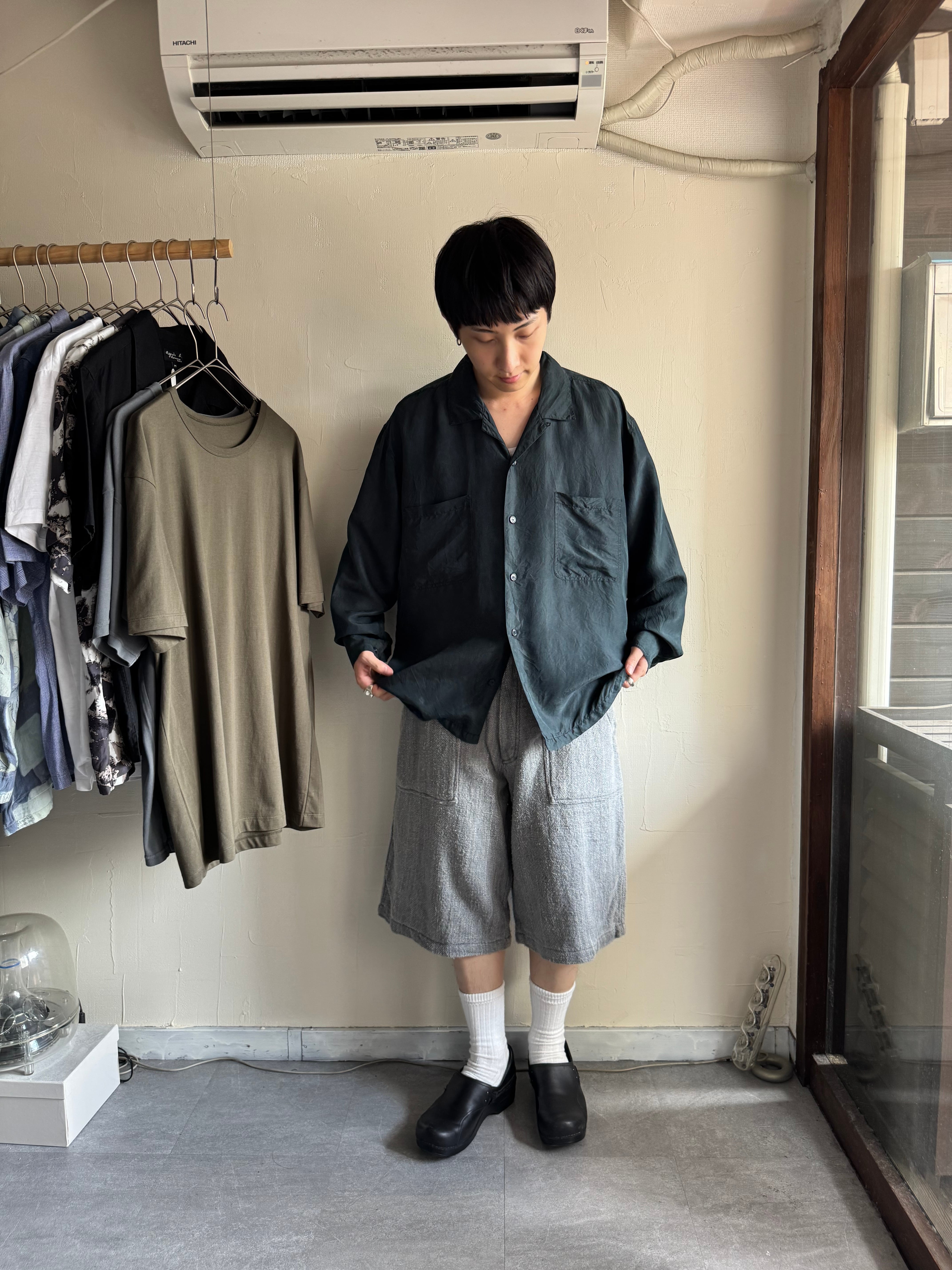 ブラックのシルク開襟シャツもなかなか見ないかと。