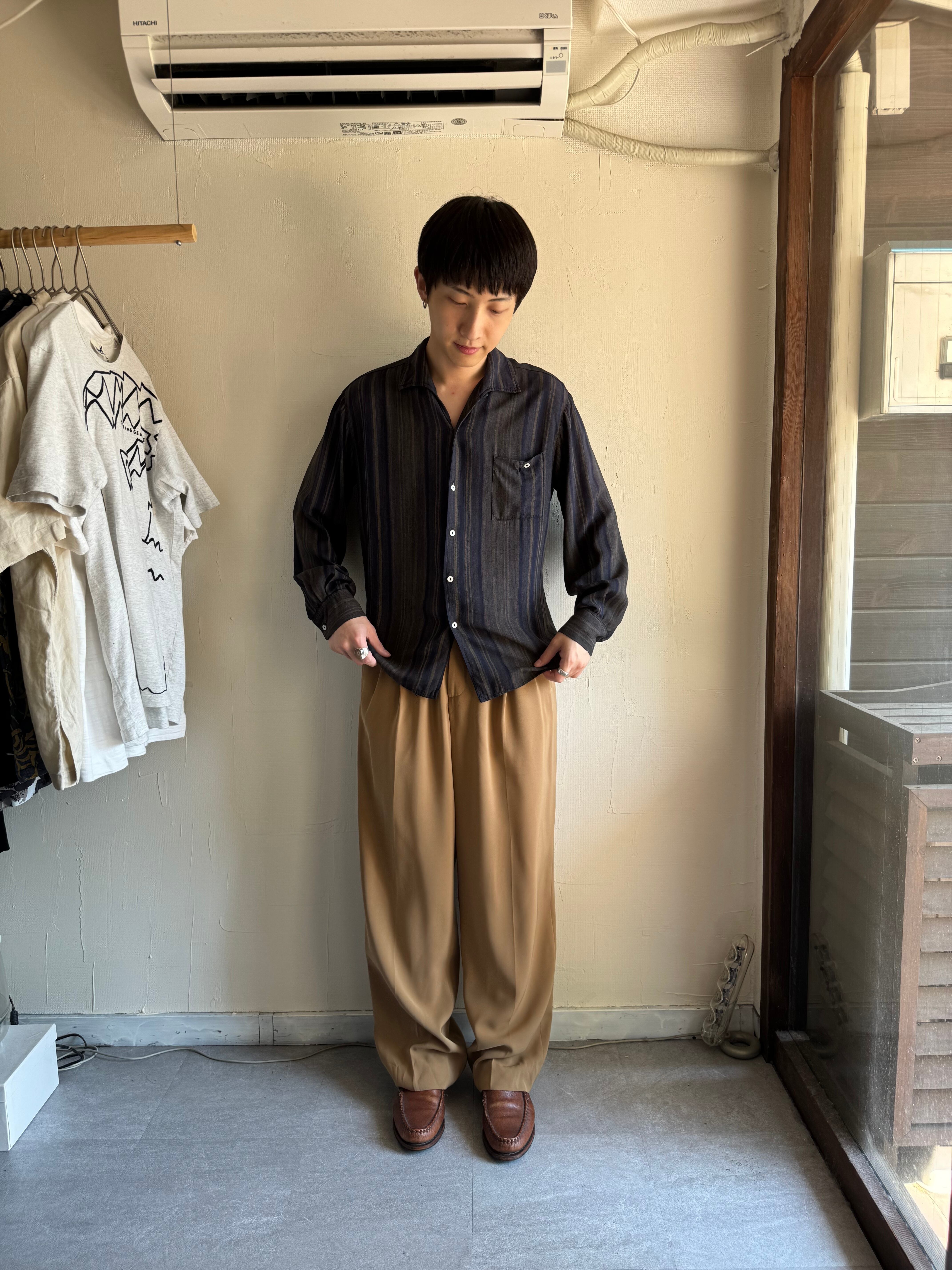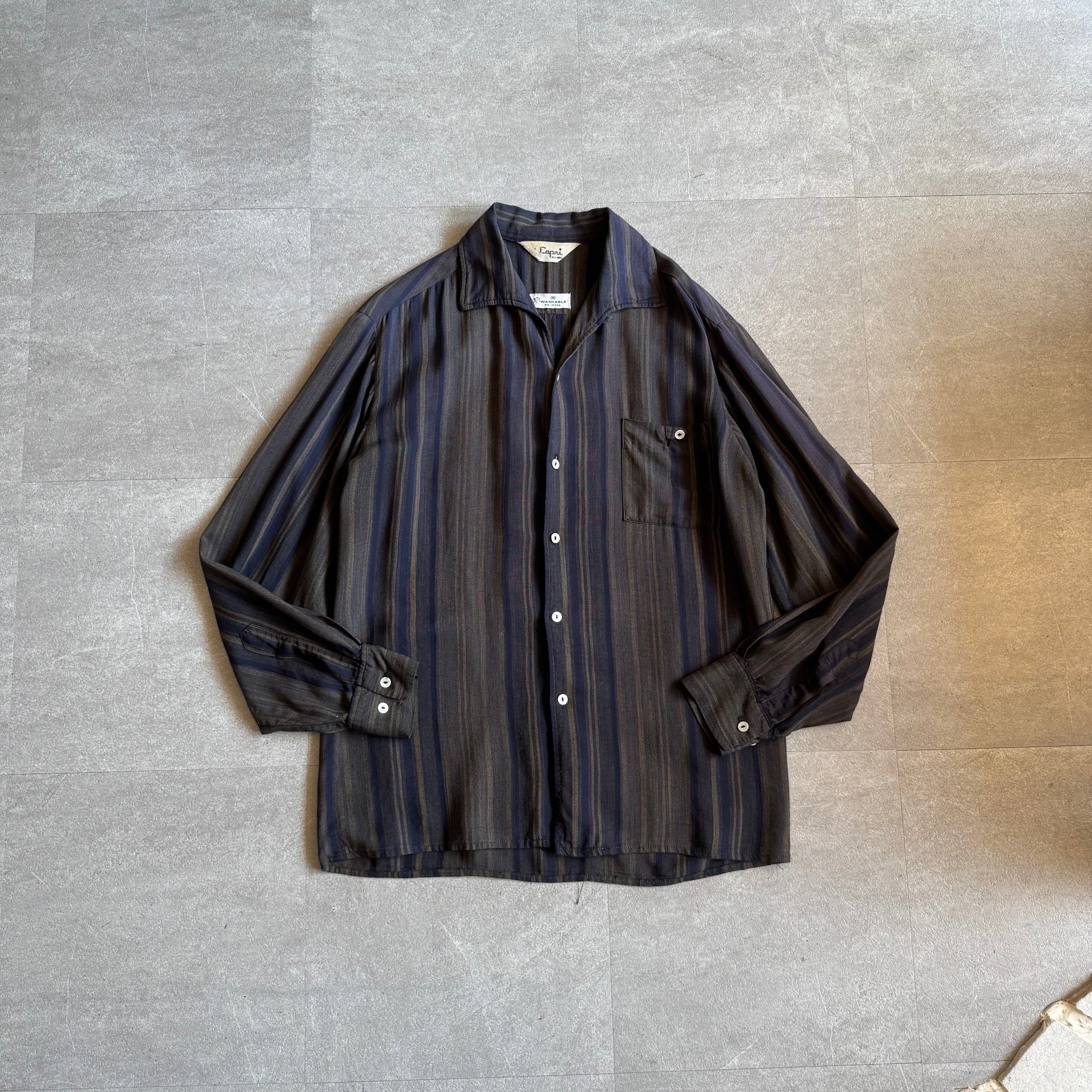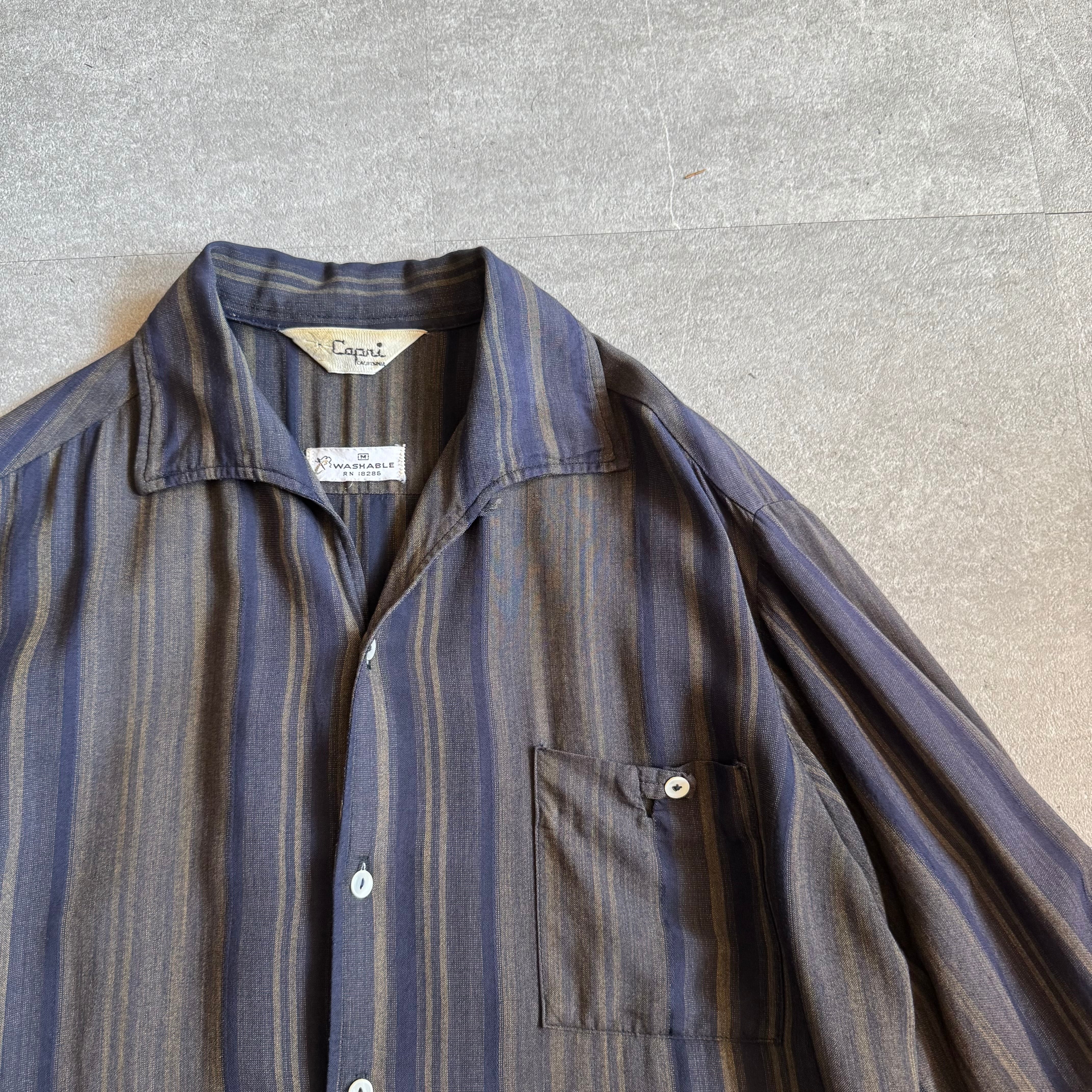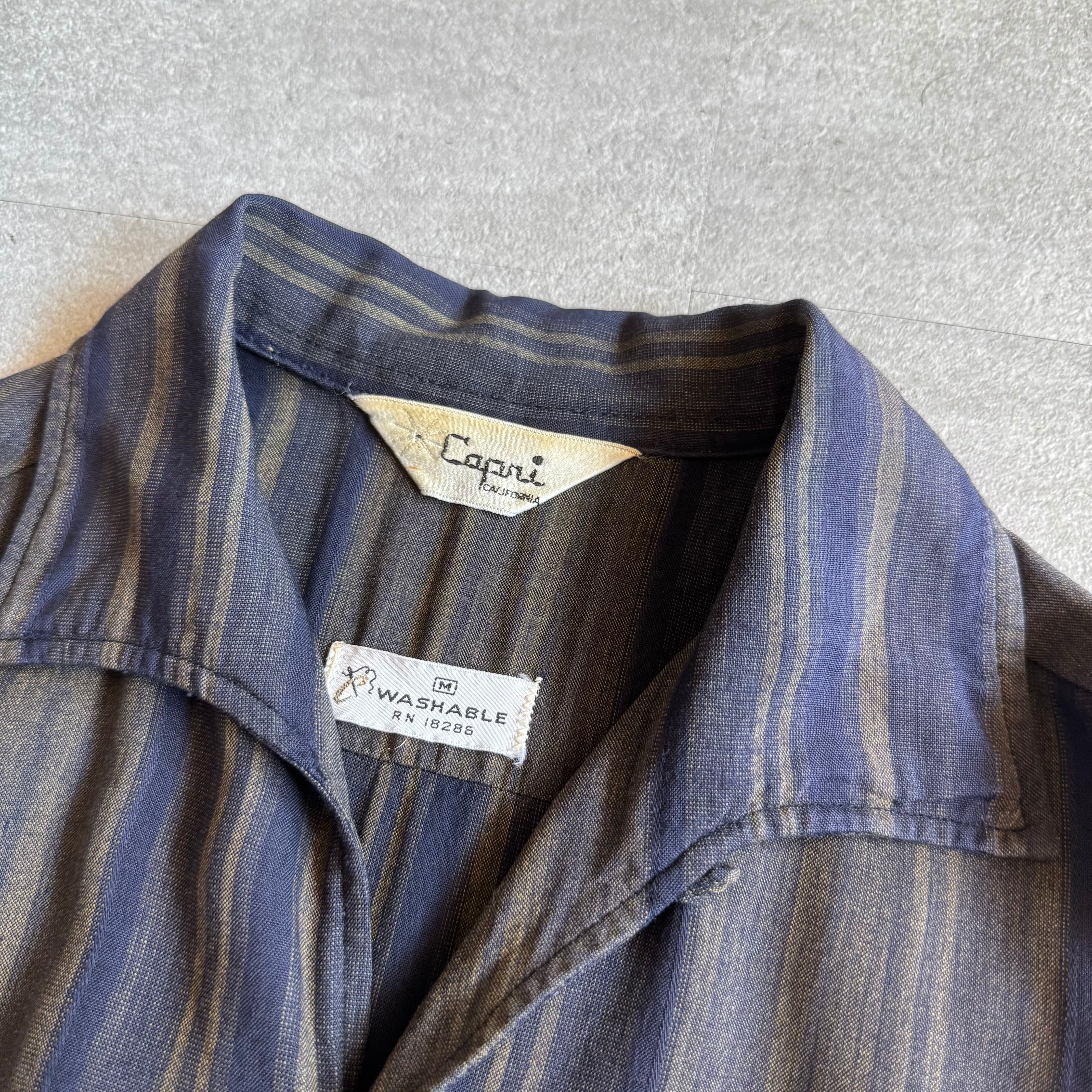 【vintage】1960s capri California "Italian collar" ombre stripe shirt