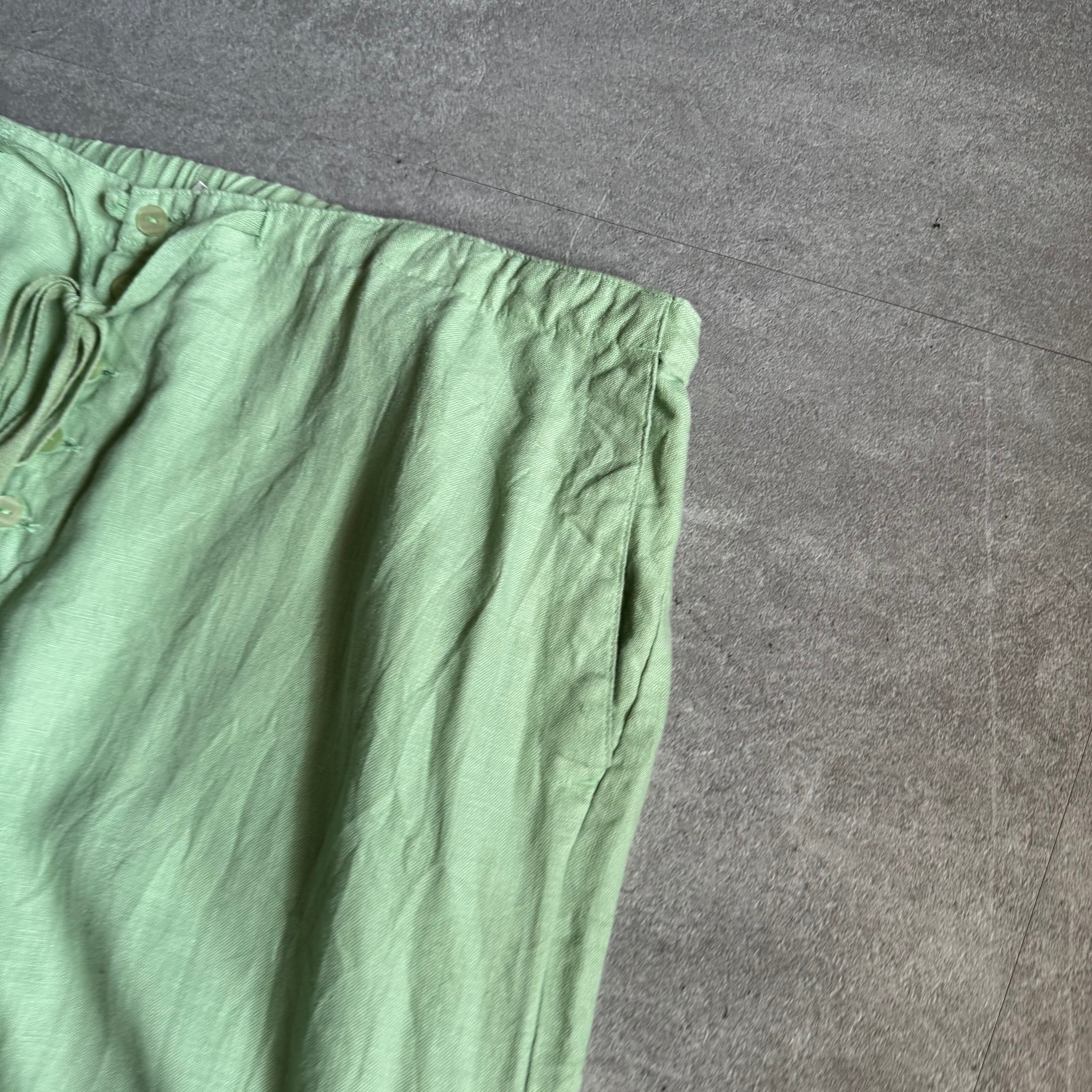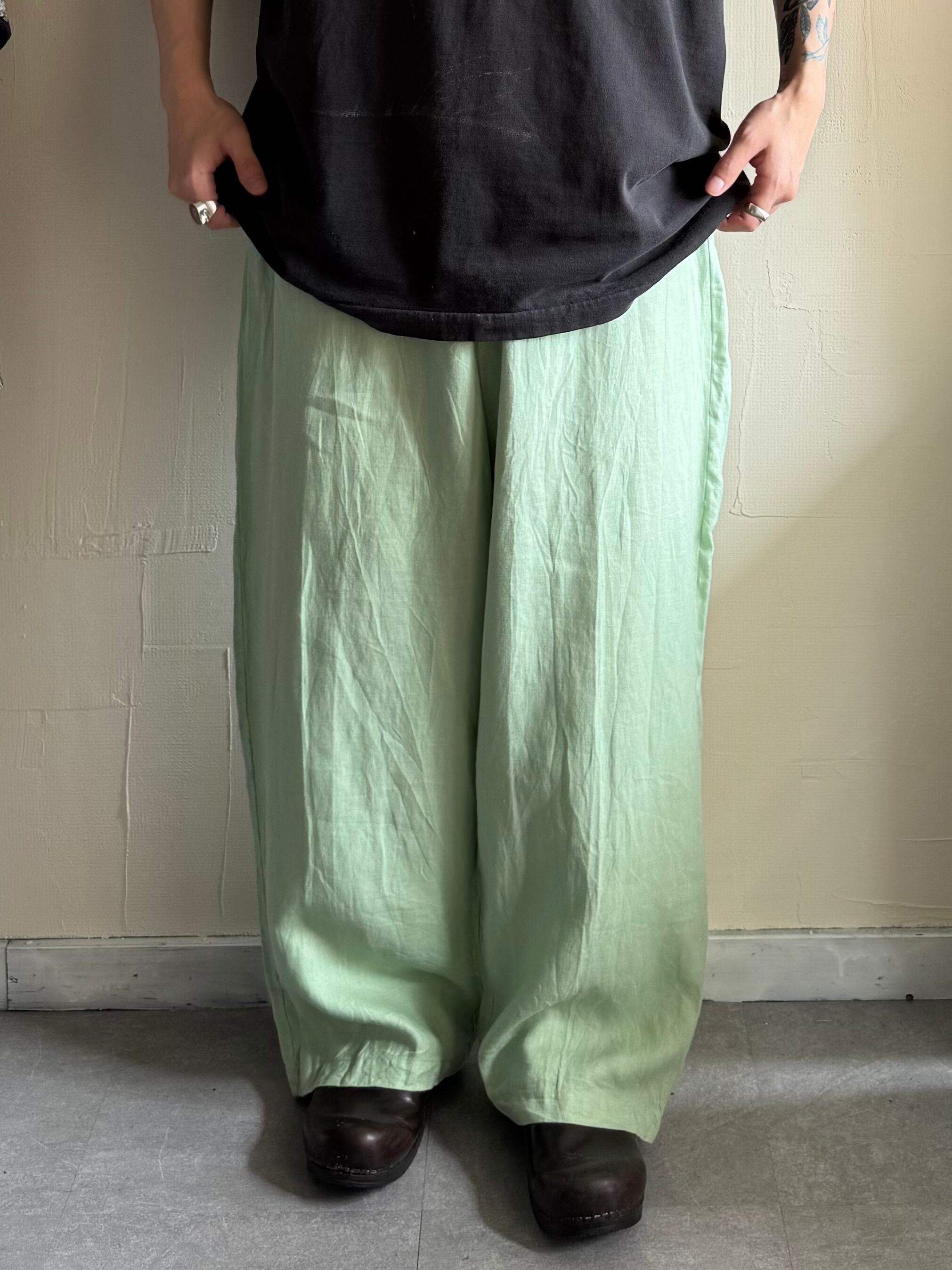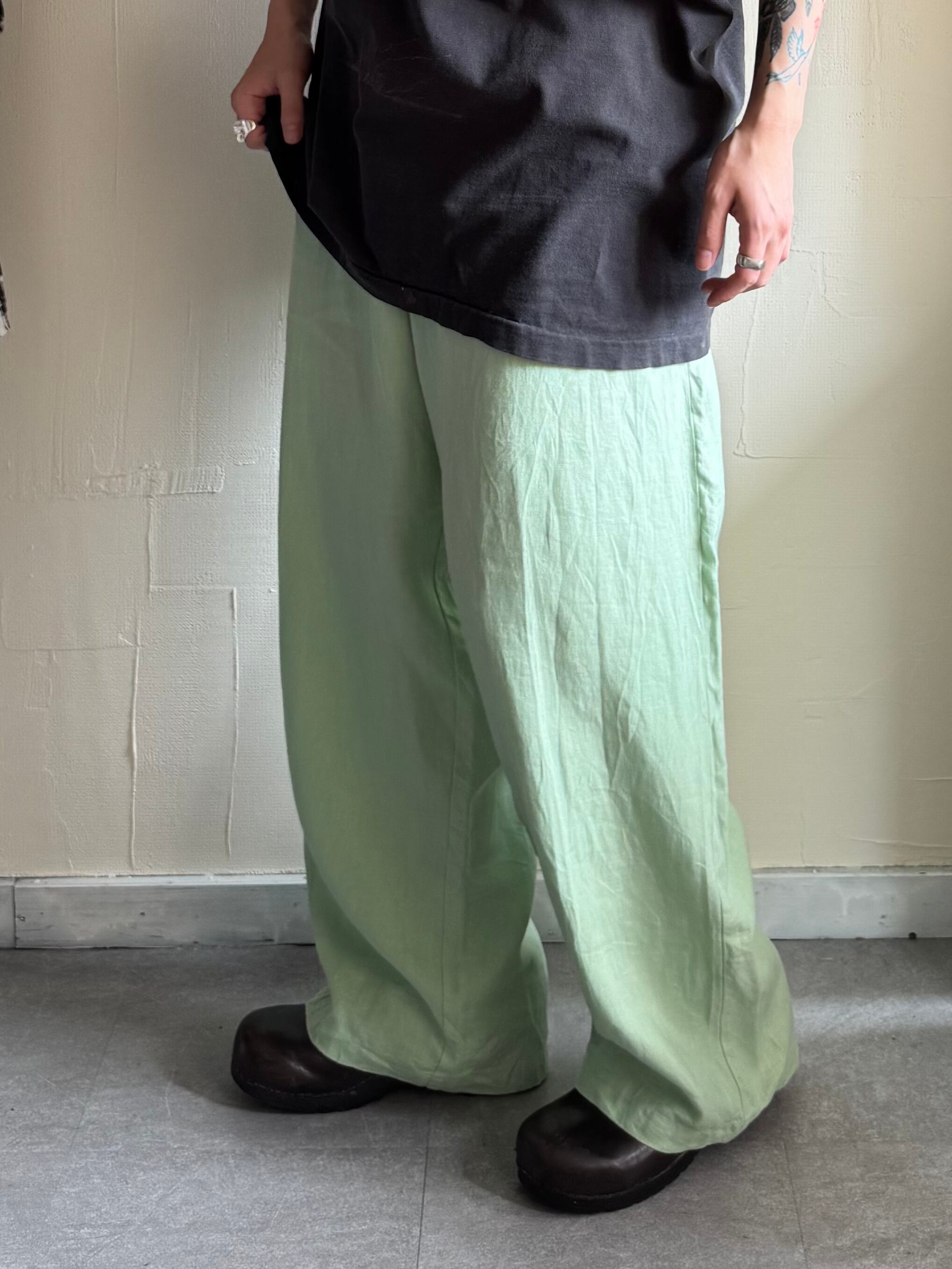 柔らかいグリーンが特徴的なイージーパンツ。
