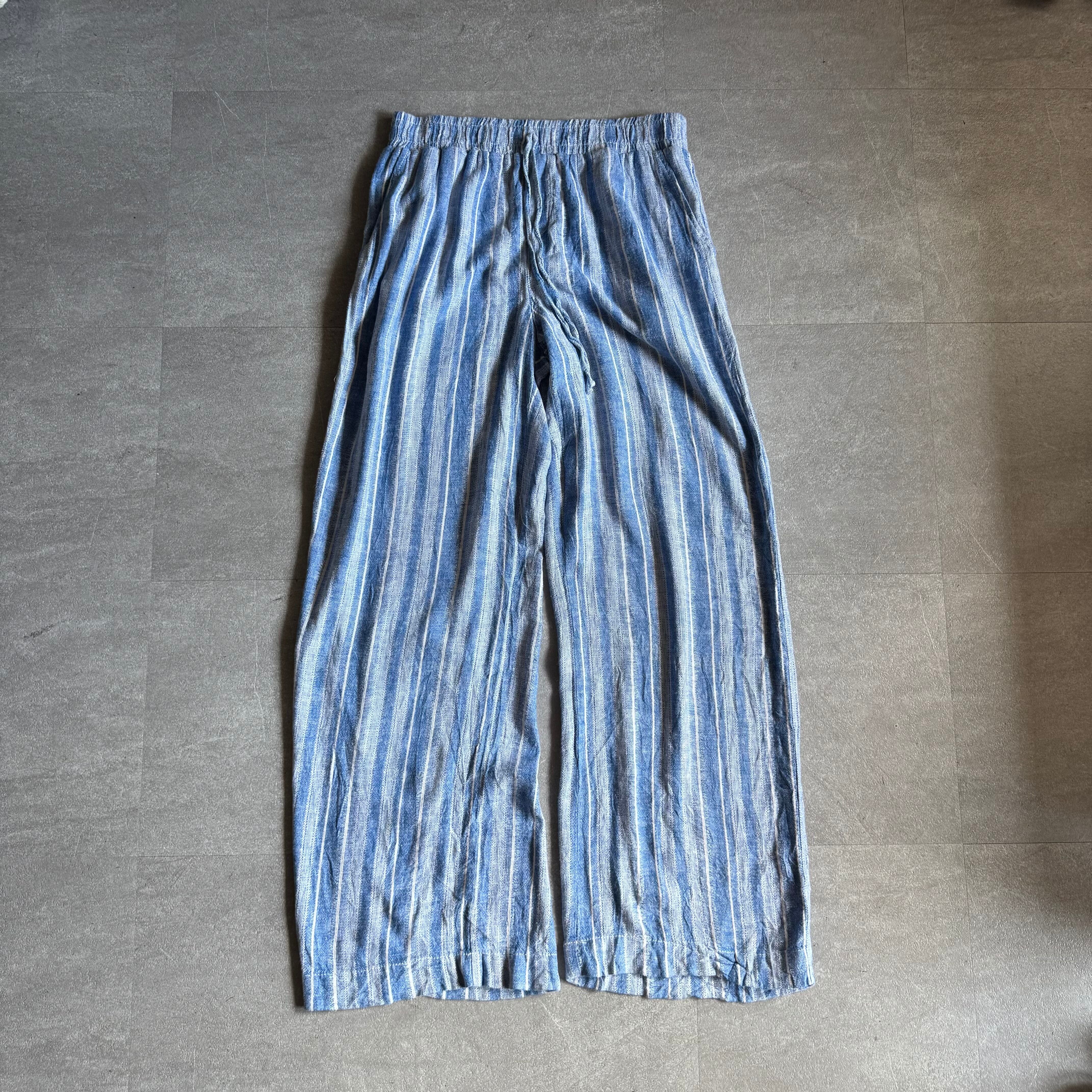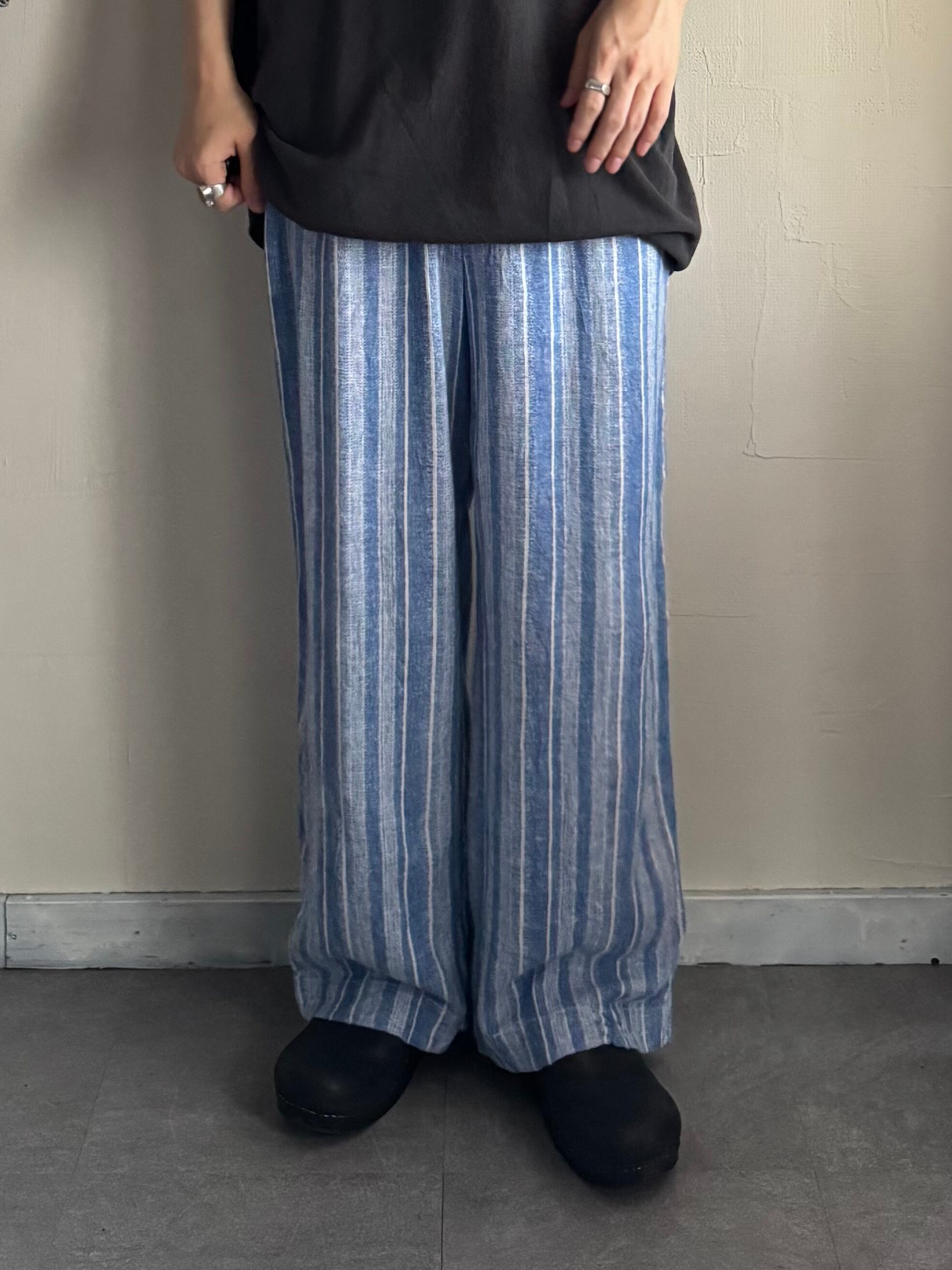 【USED】00s linen rayon stripe easy pants