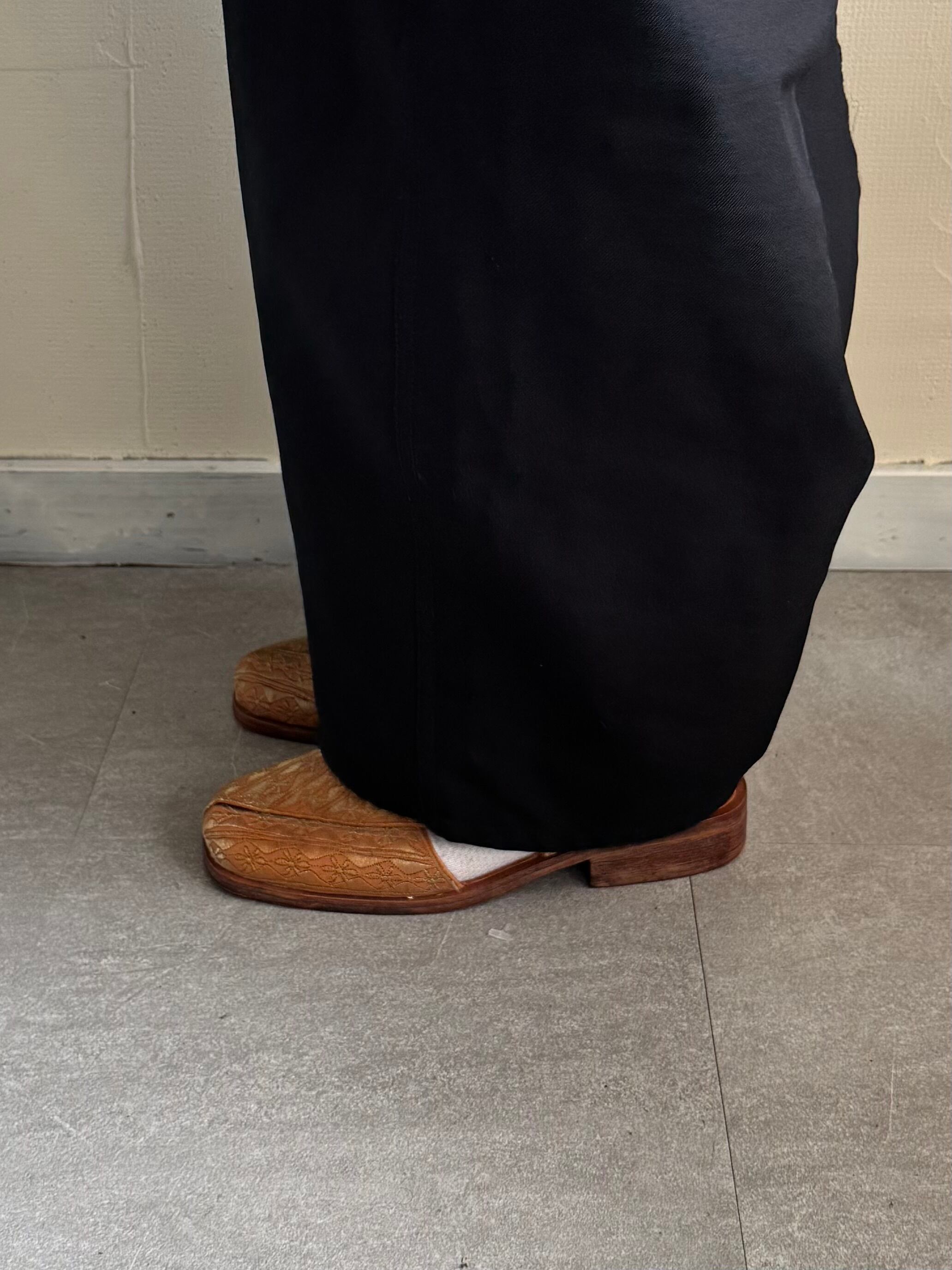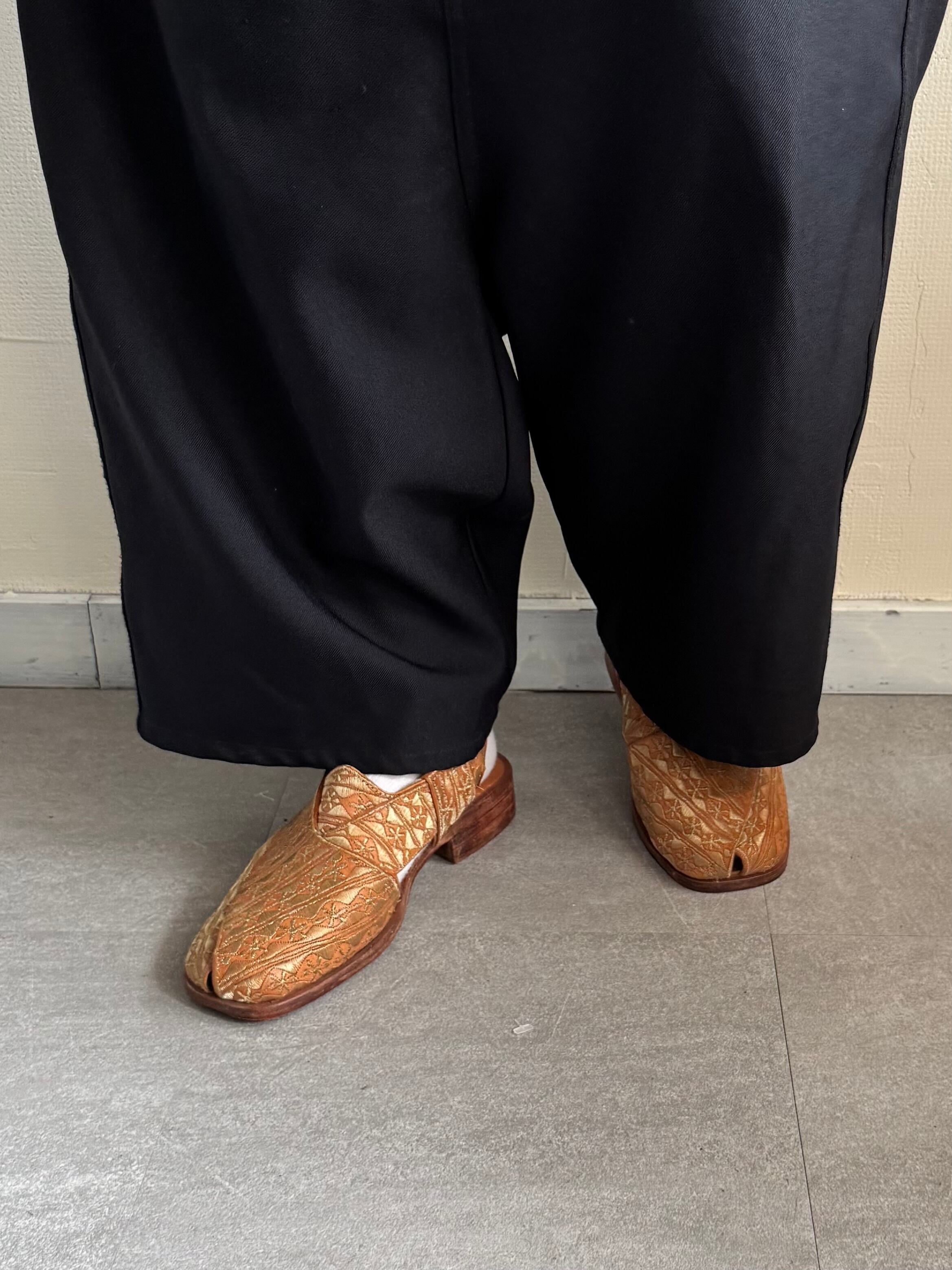 季節問わず秋冬は厚手の靴下のようなものを履いて着用してたそうです。