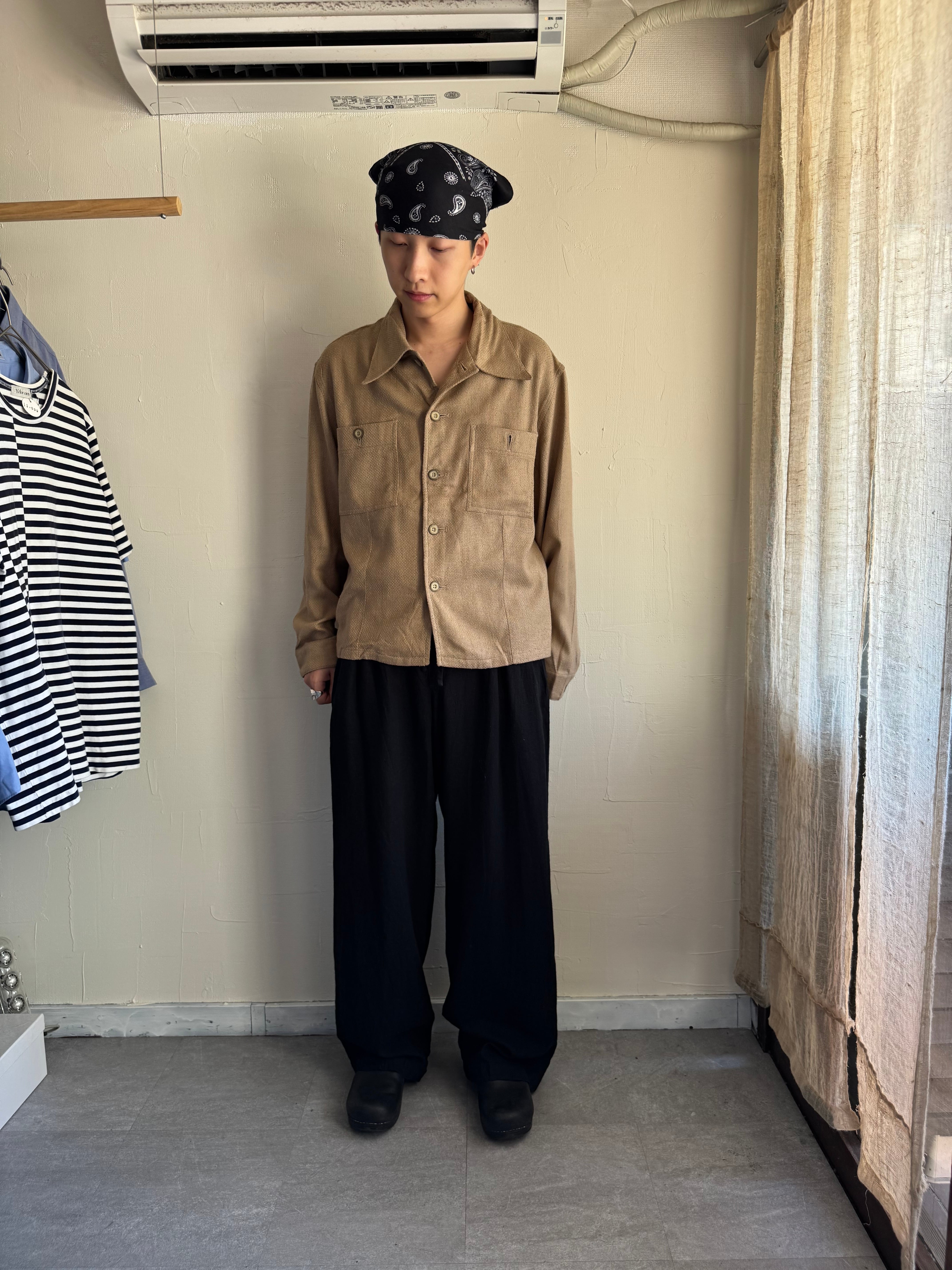ジャケットのような雰囲気なのに開襟シャツといえばそうも見える。
