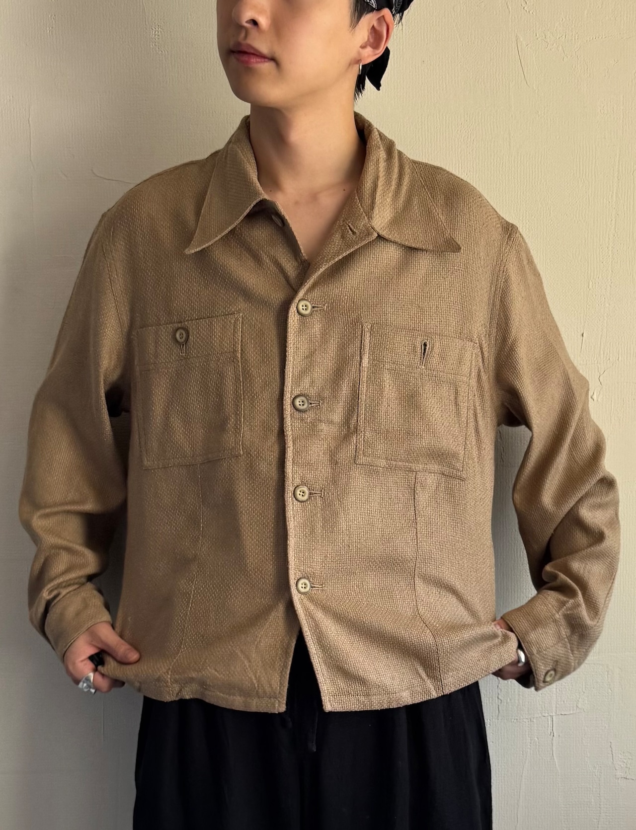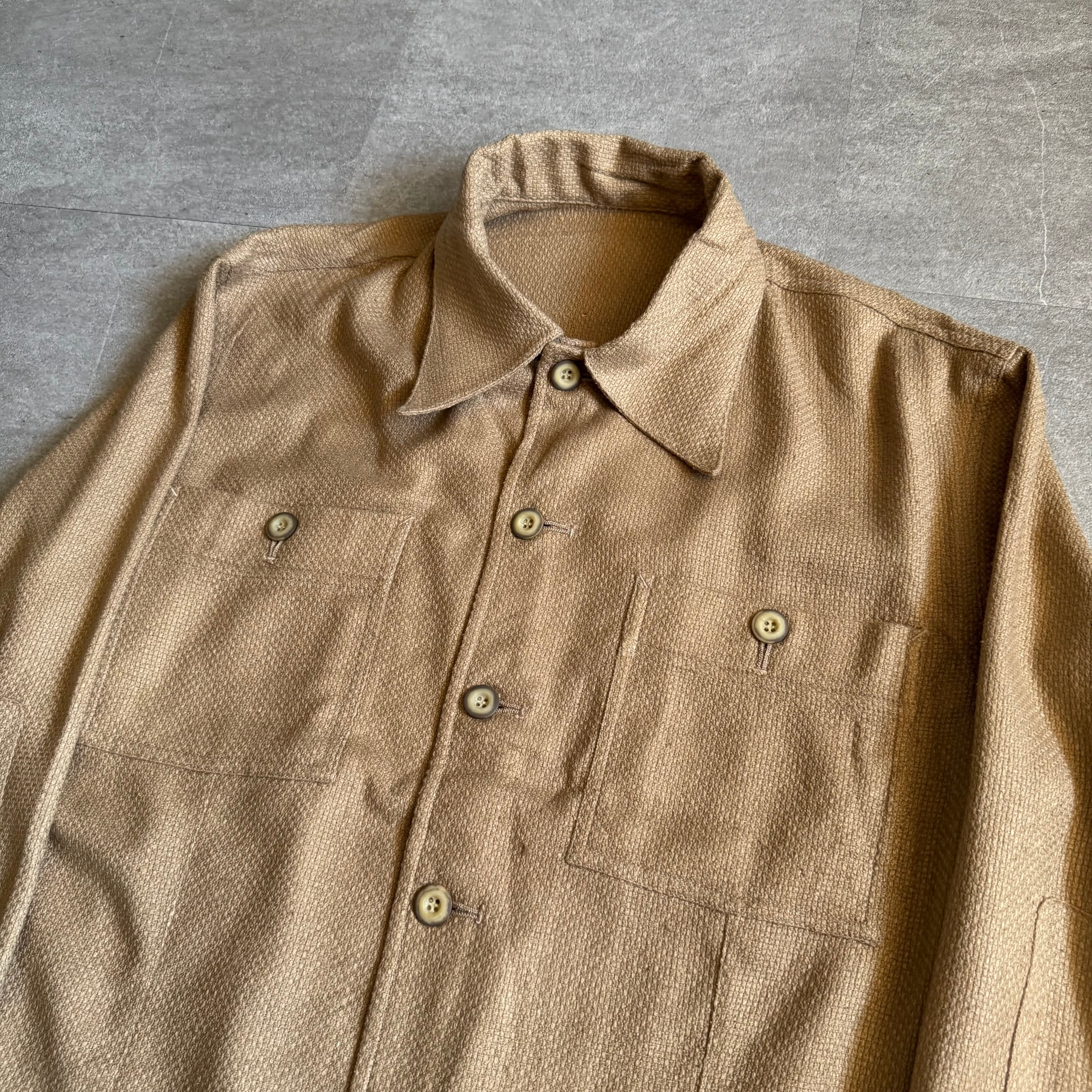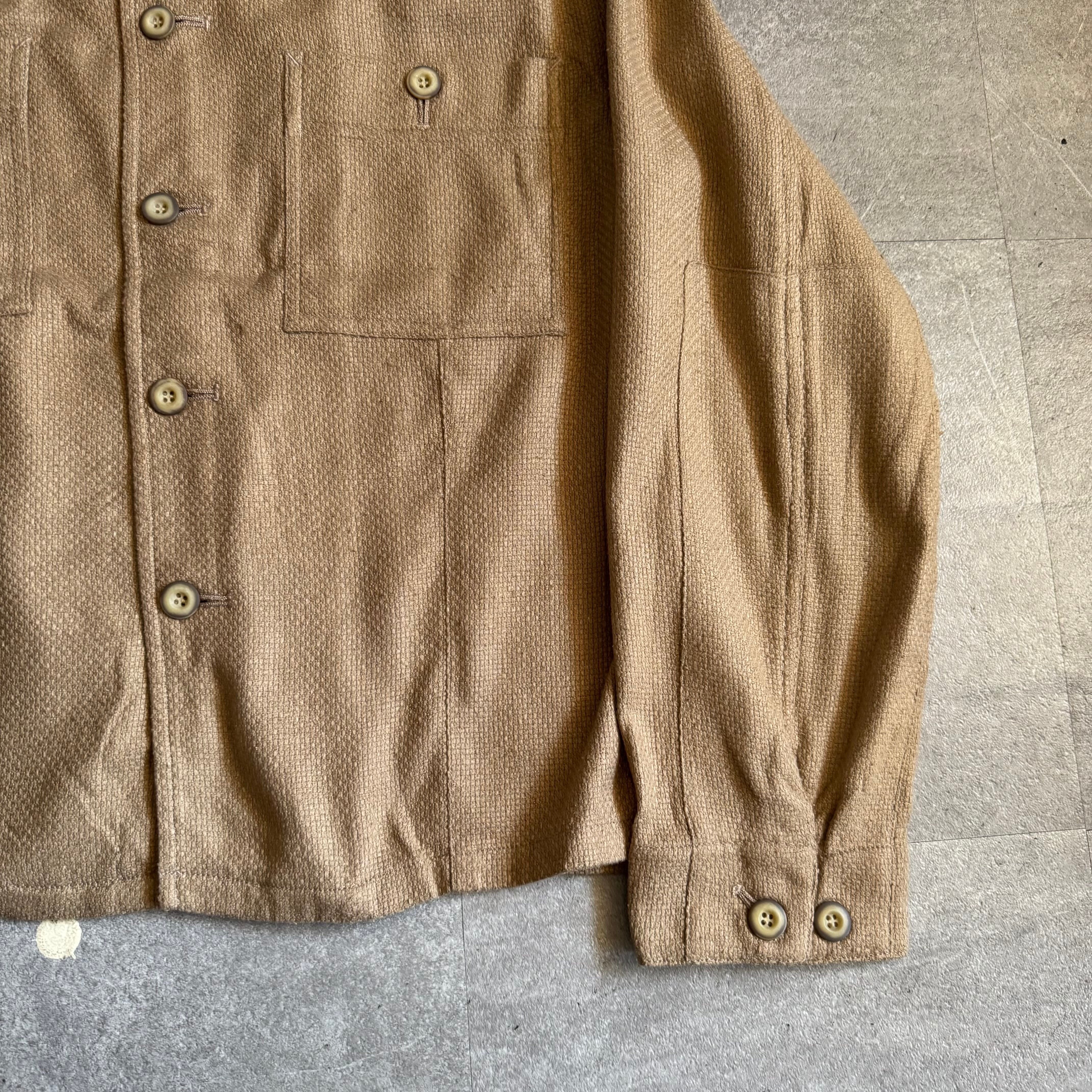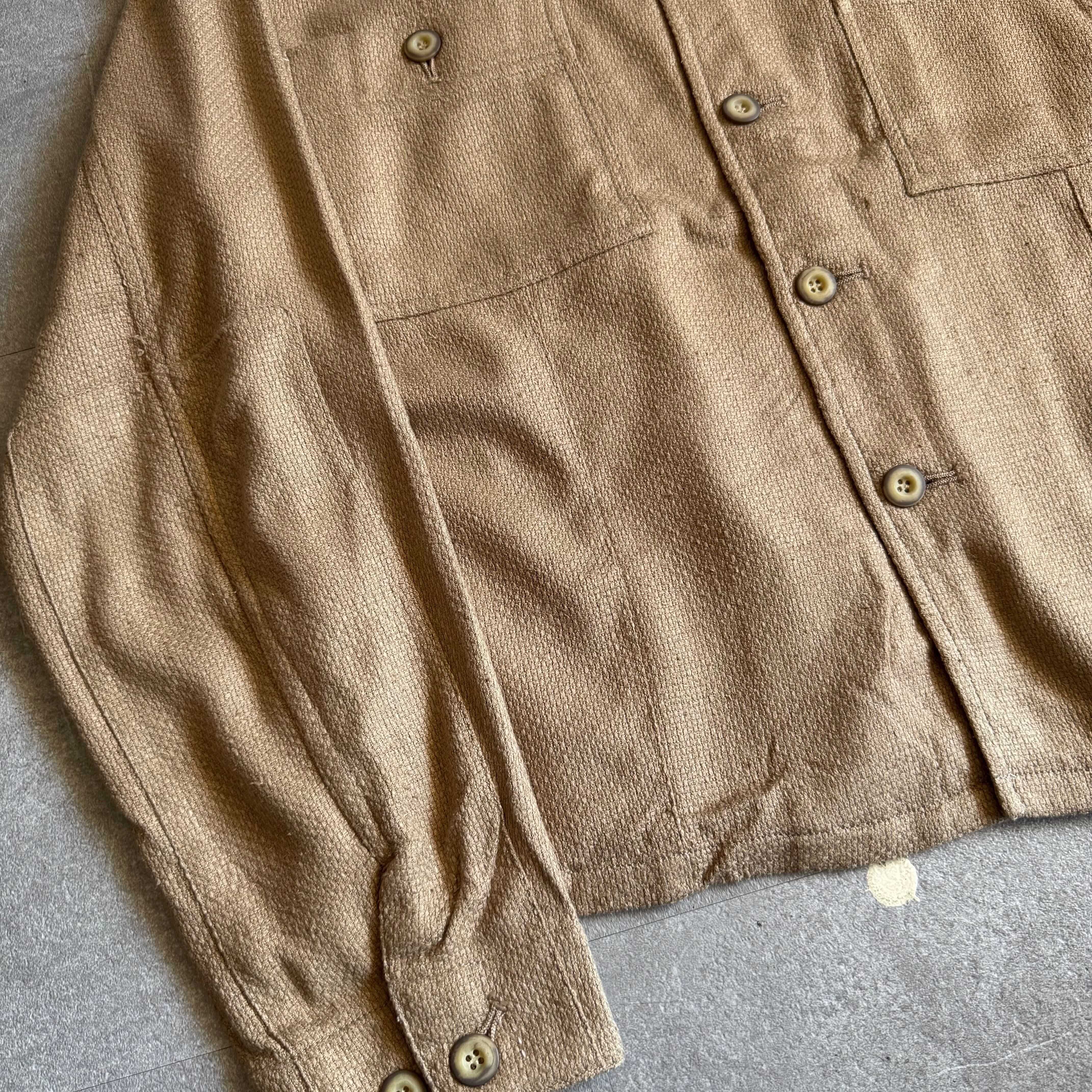 【dead stock】1970s cotton linen-like weave short shirt jacket
