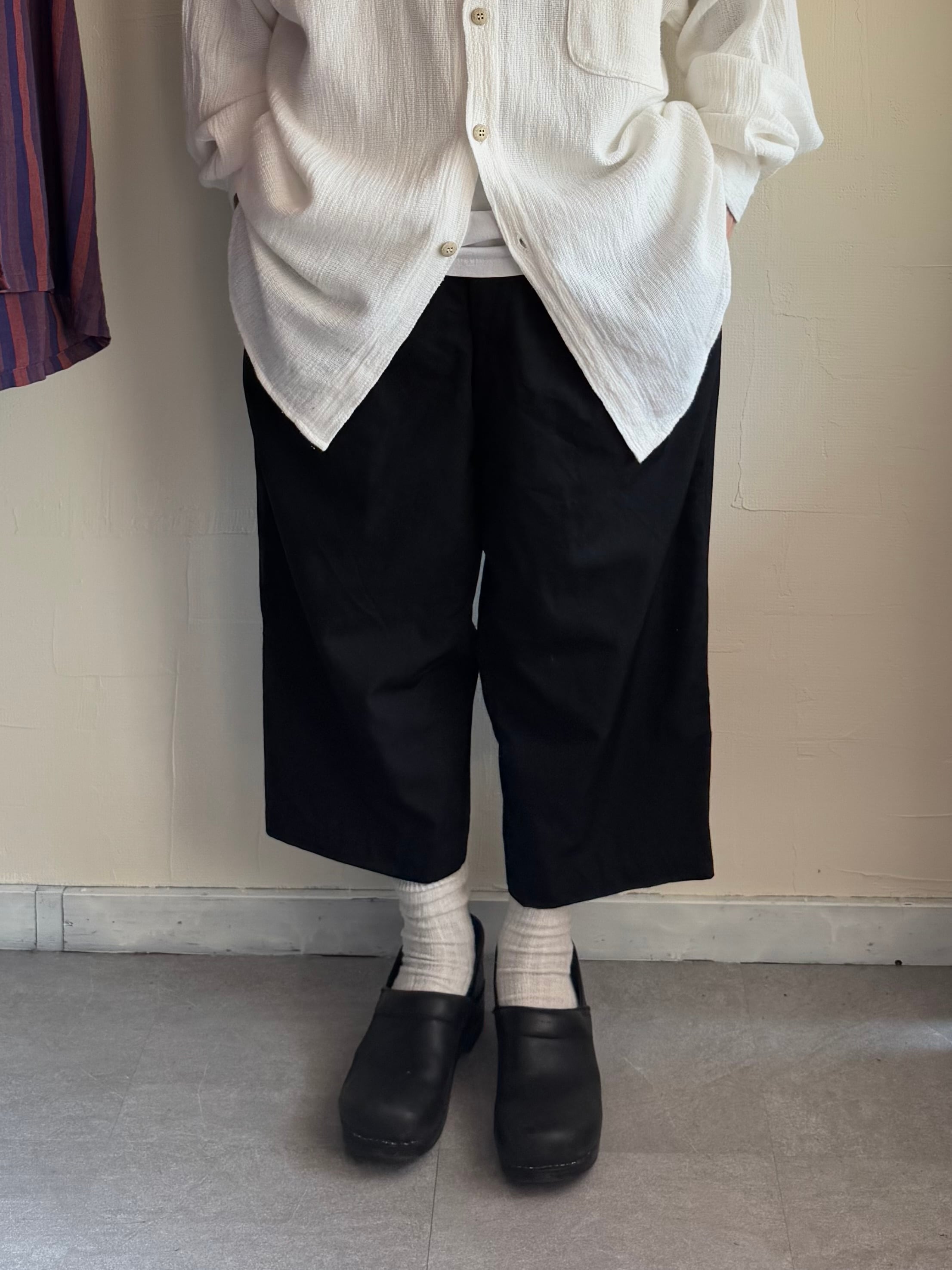 クロップド丈のワイドスラックス。