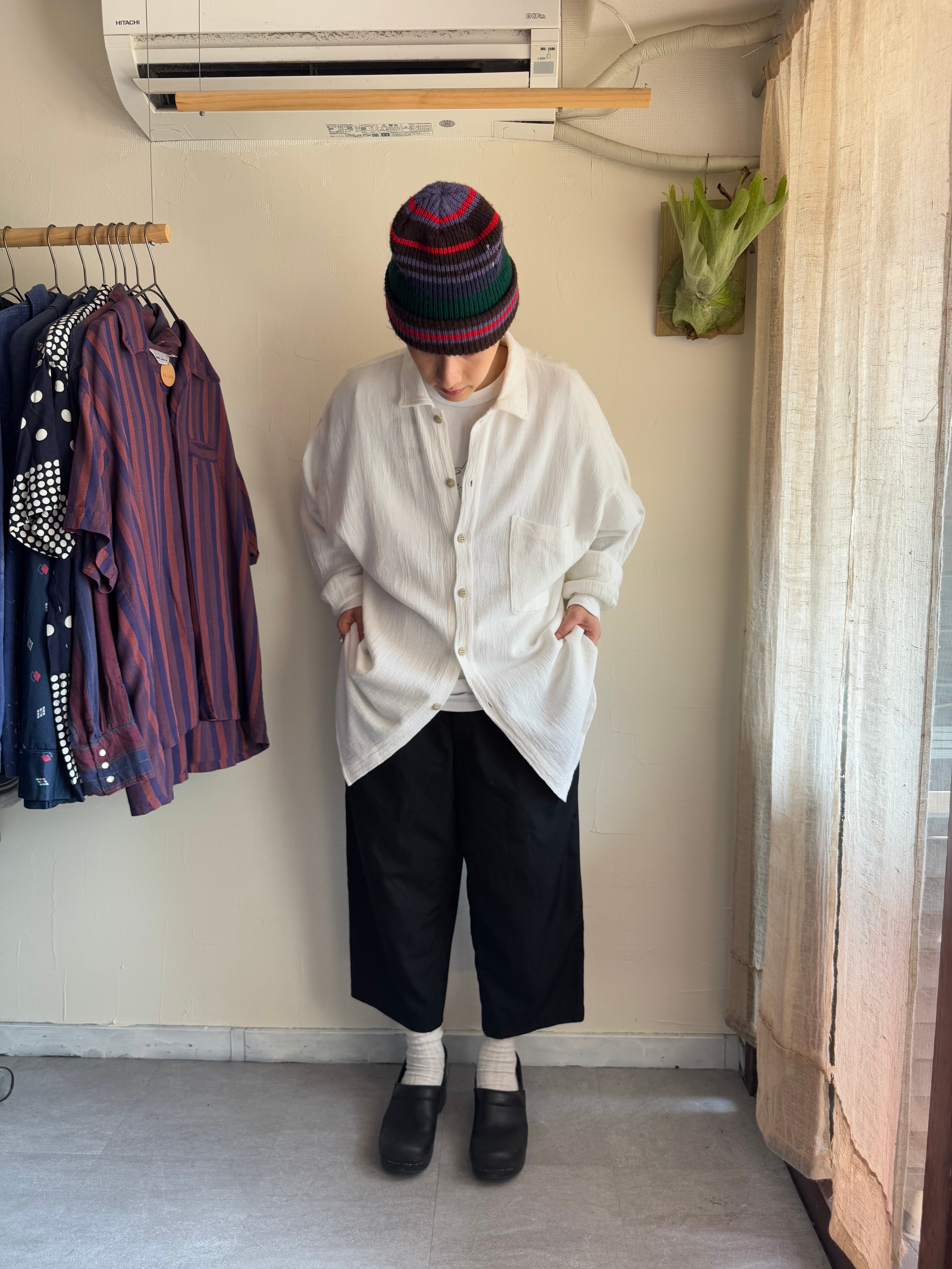 ソックスで差し色をしたりいつものスラックスと差し替えたり。