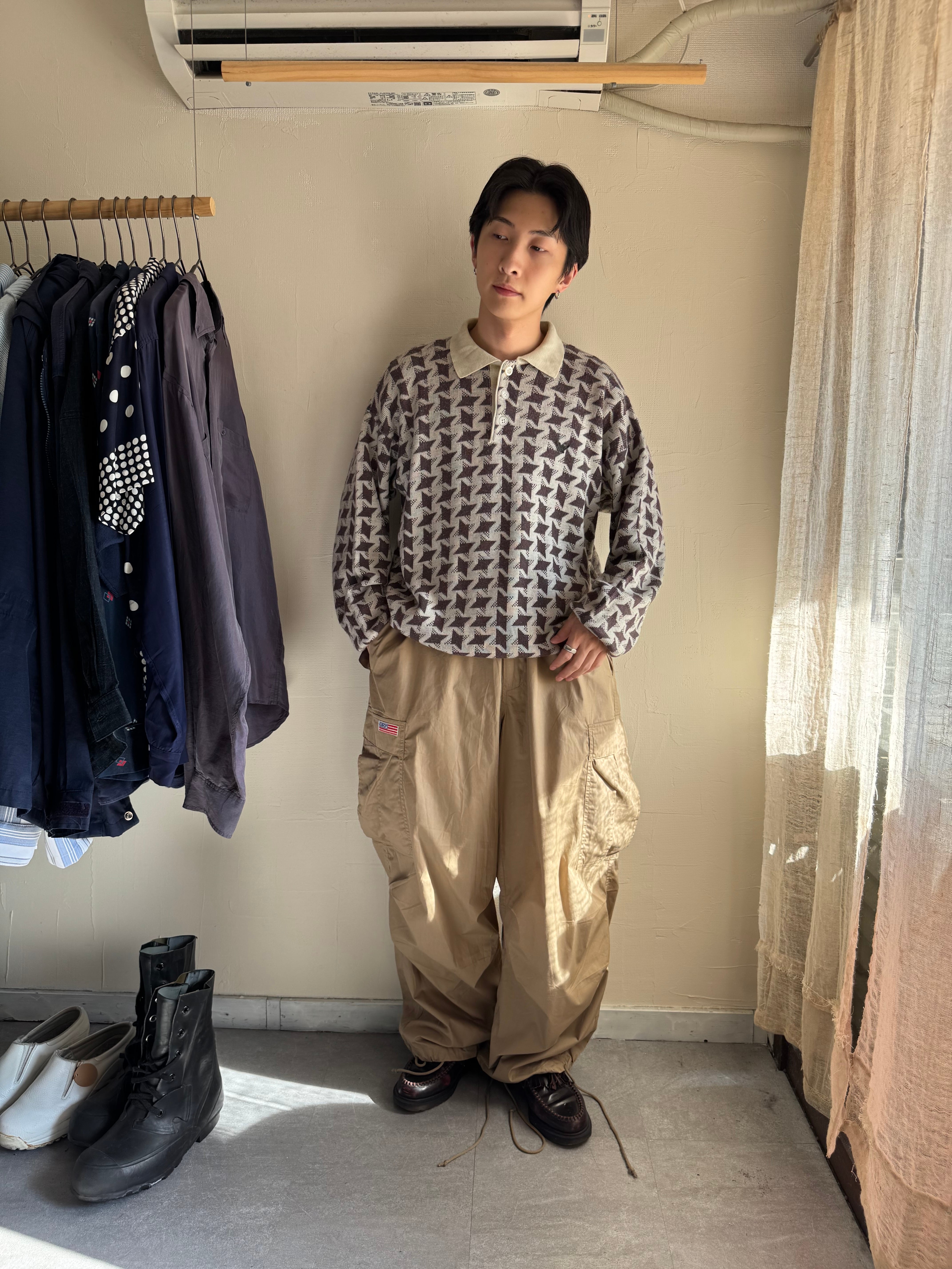 【USED】1990s EMPORIO ARMANI total pattern knit polo