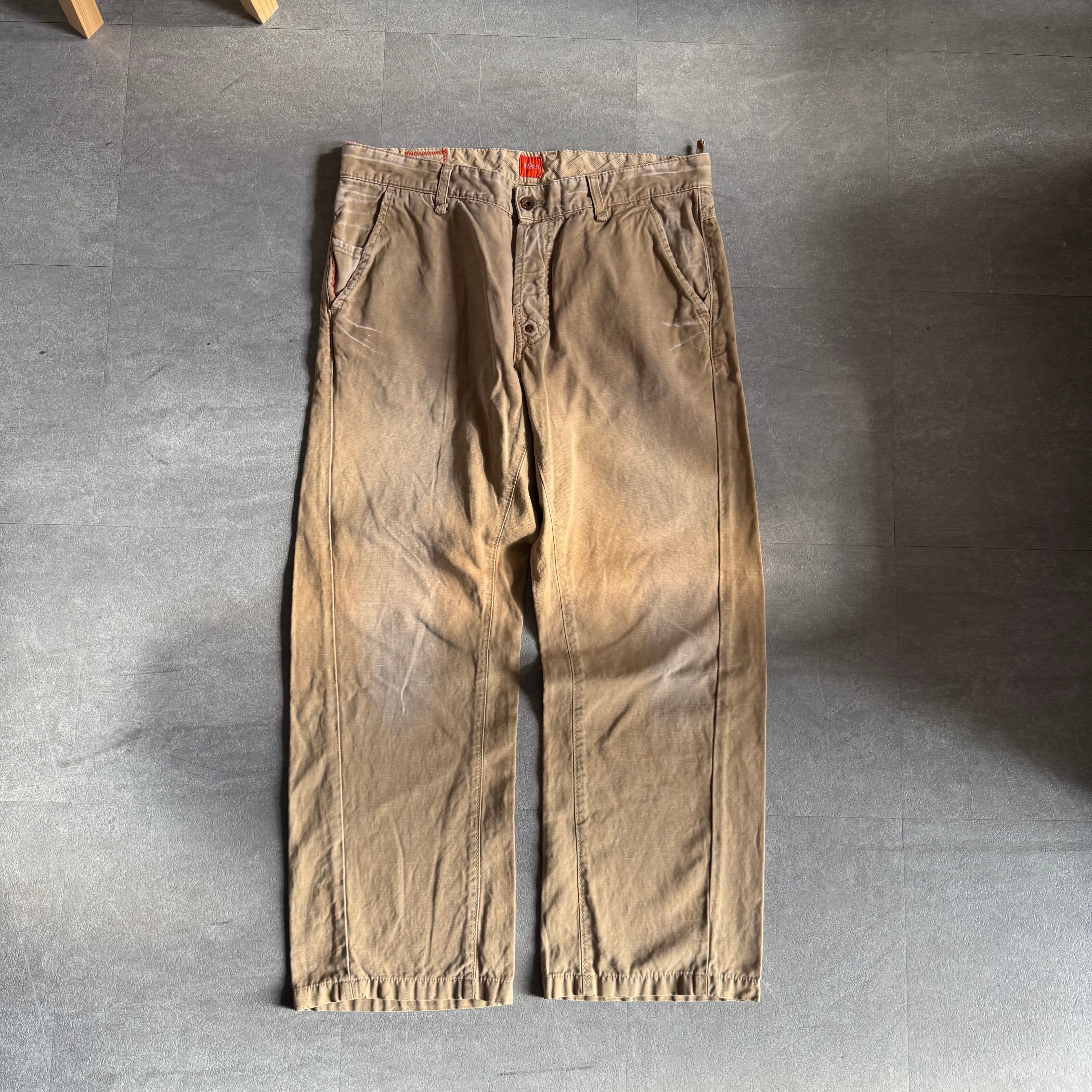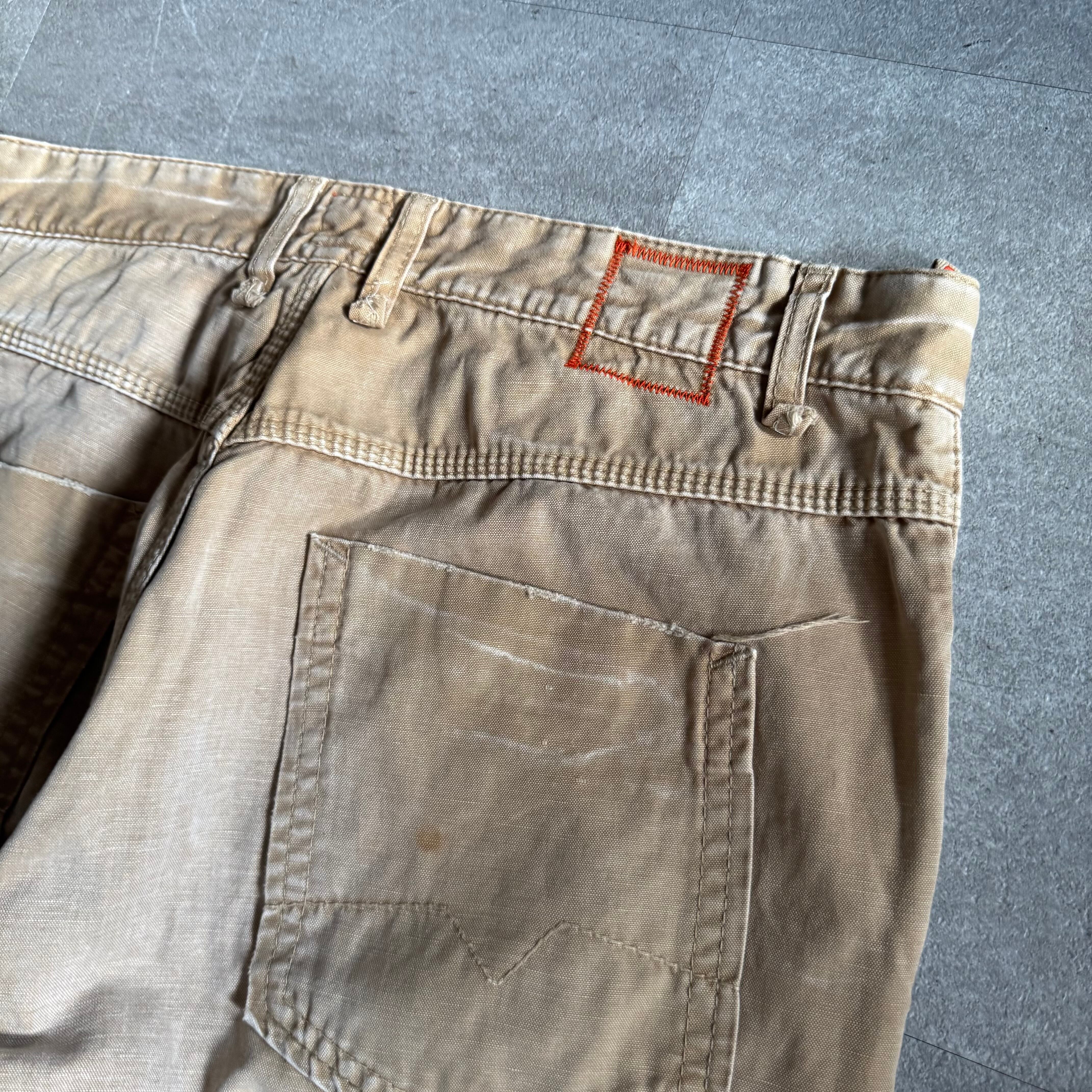 【USED】00s HUGO BOSS cotton damage design pants
