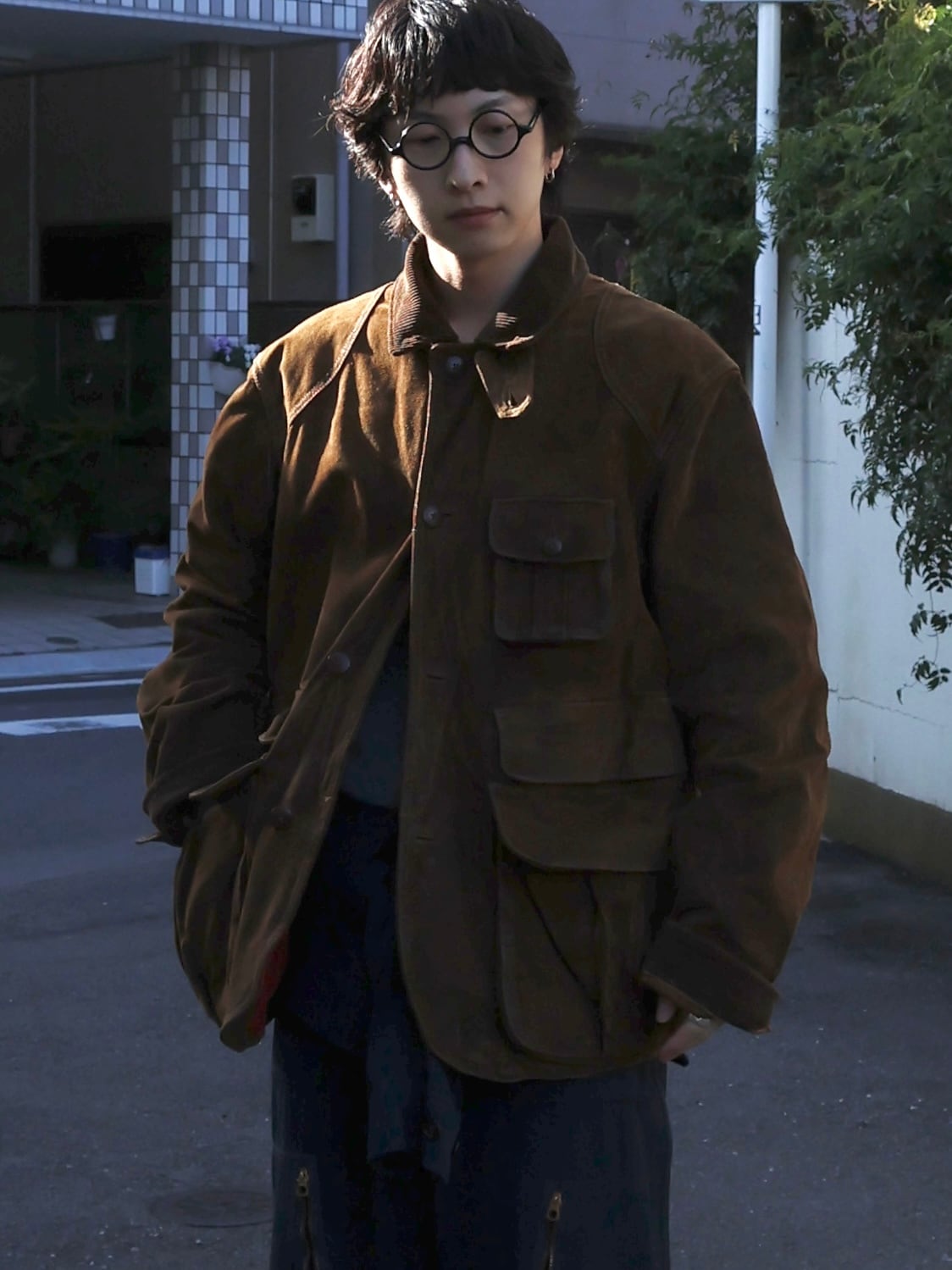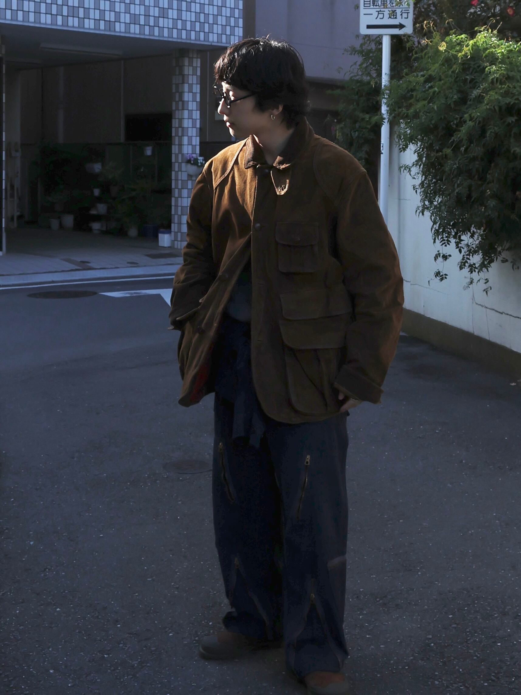 クラシックなハンティングジャケットディテール。