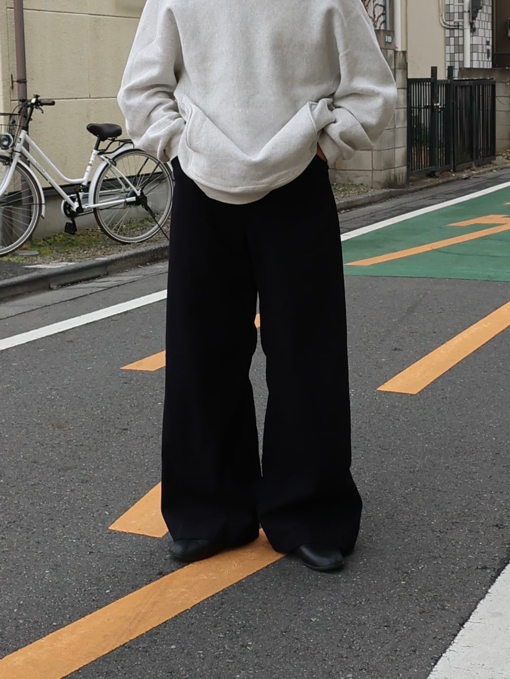 シルエットは極太のストレート。