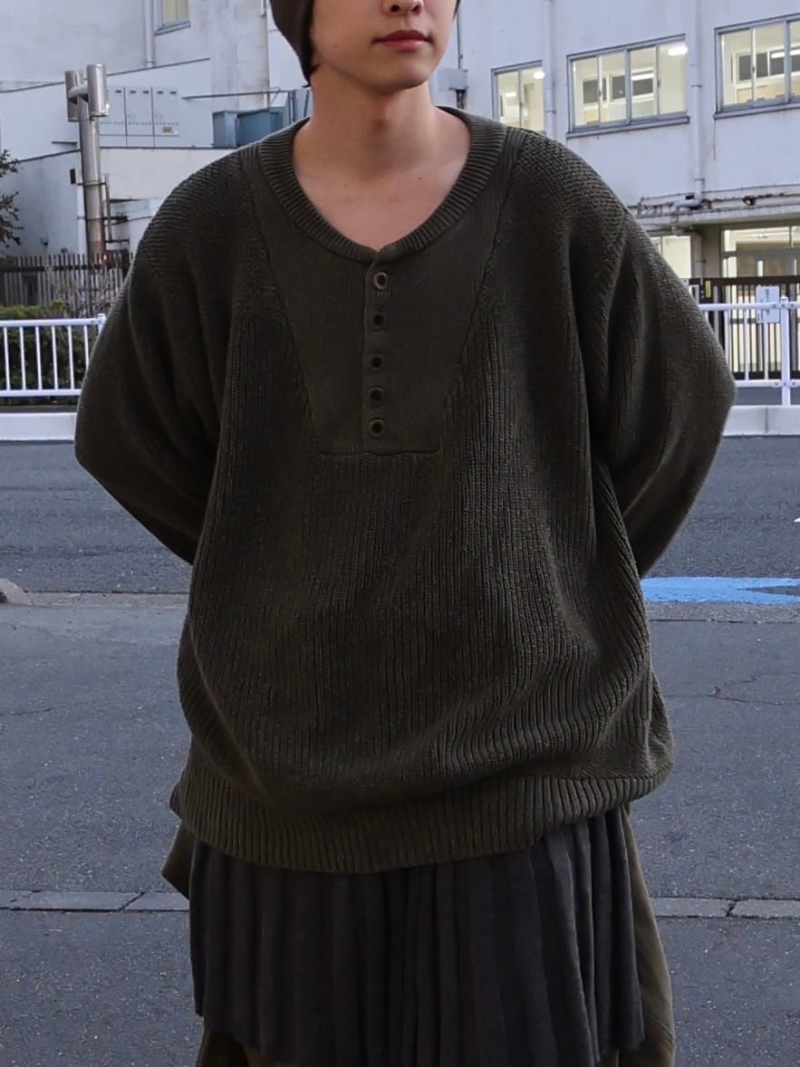 ゆったりサイズのヘンリーネックニット。