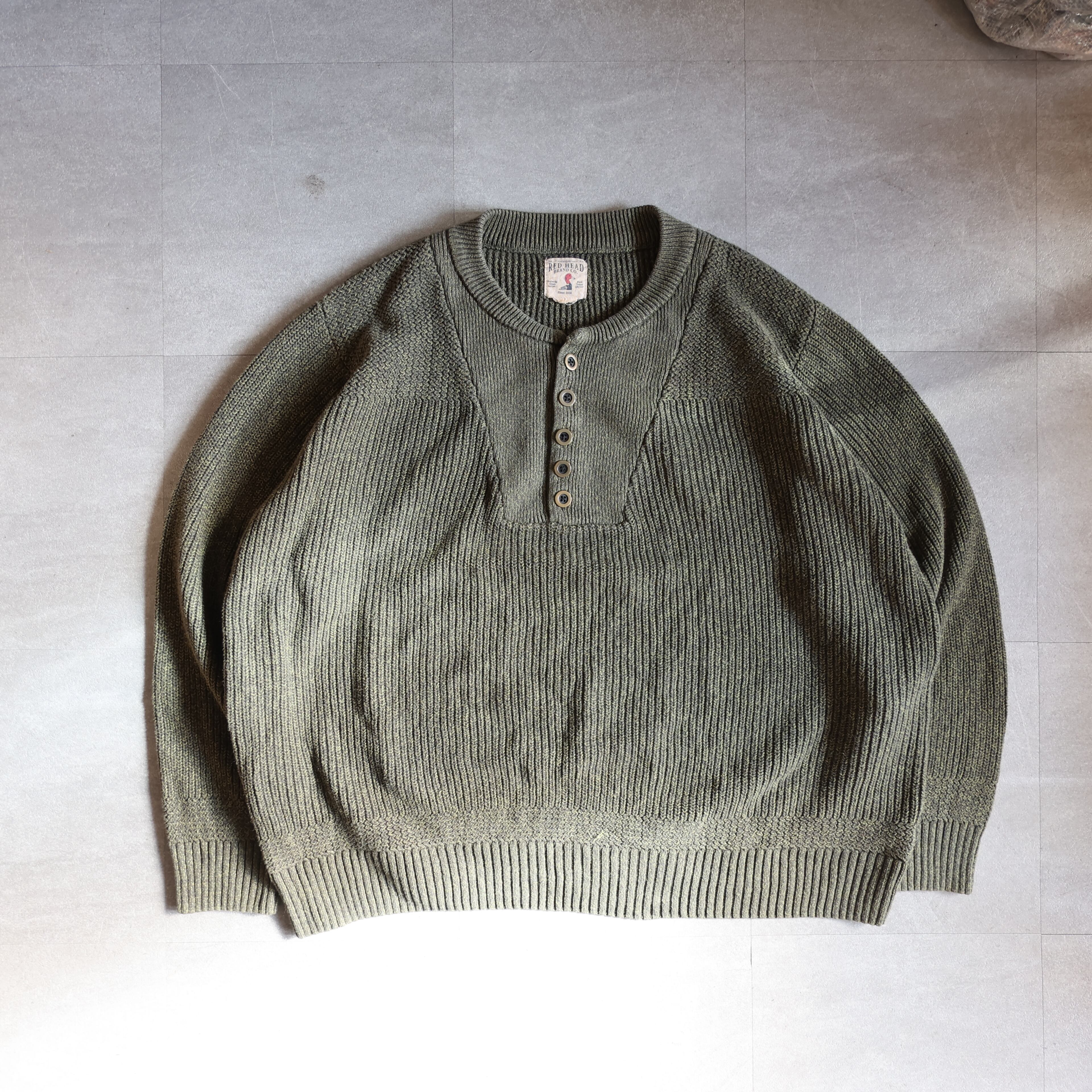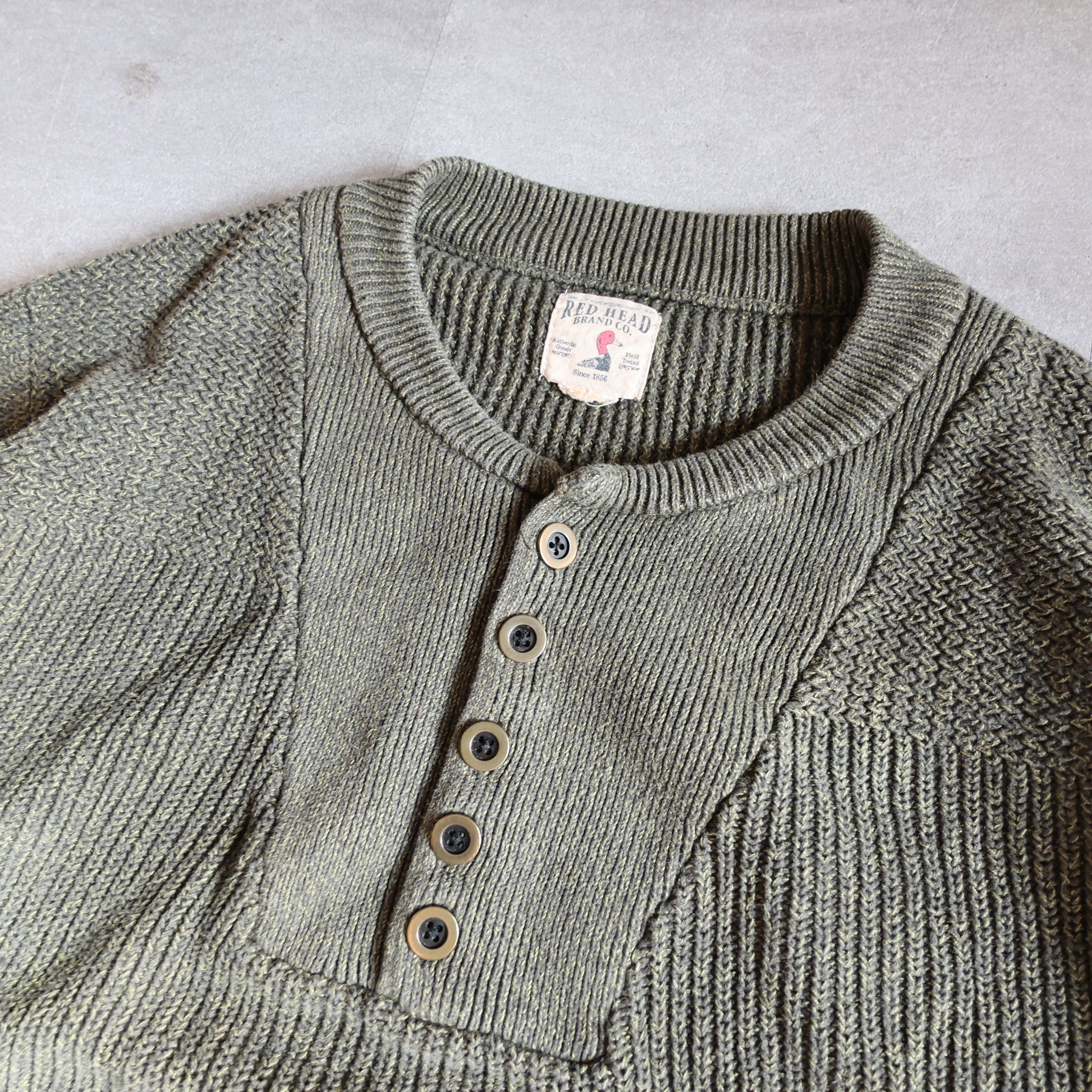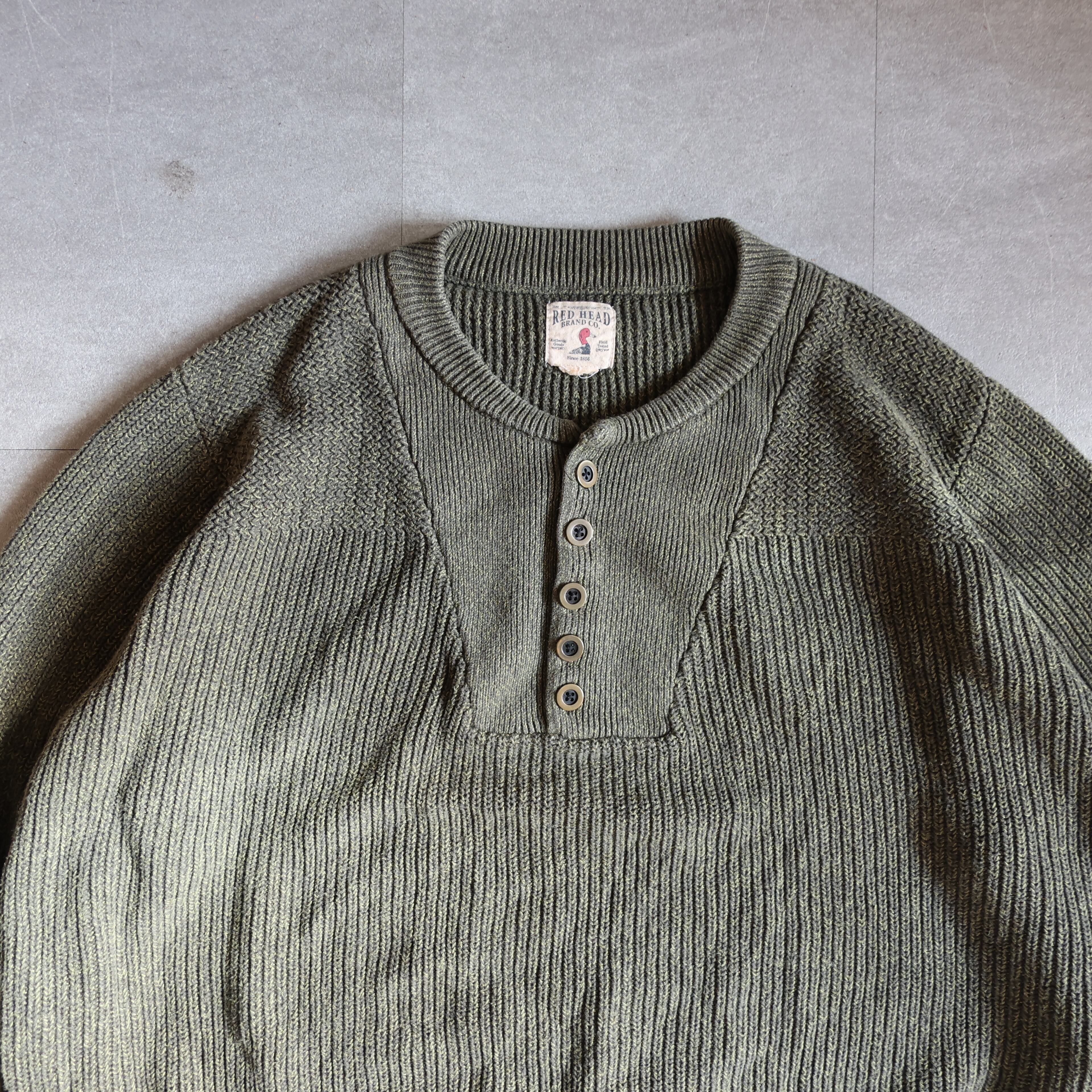 【USED】90-00s RED HEAD henley neck cotton knit