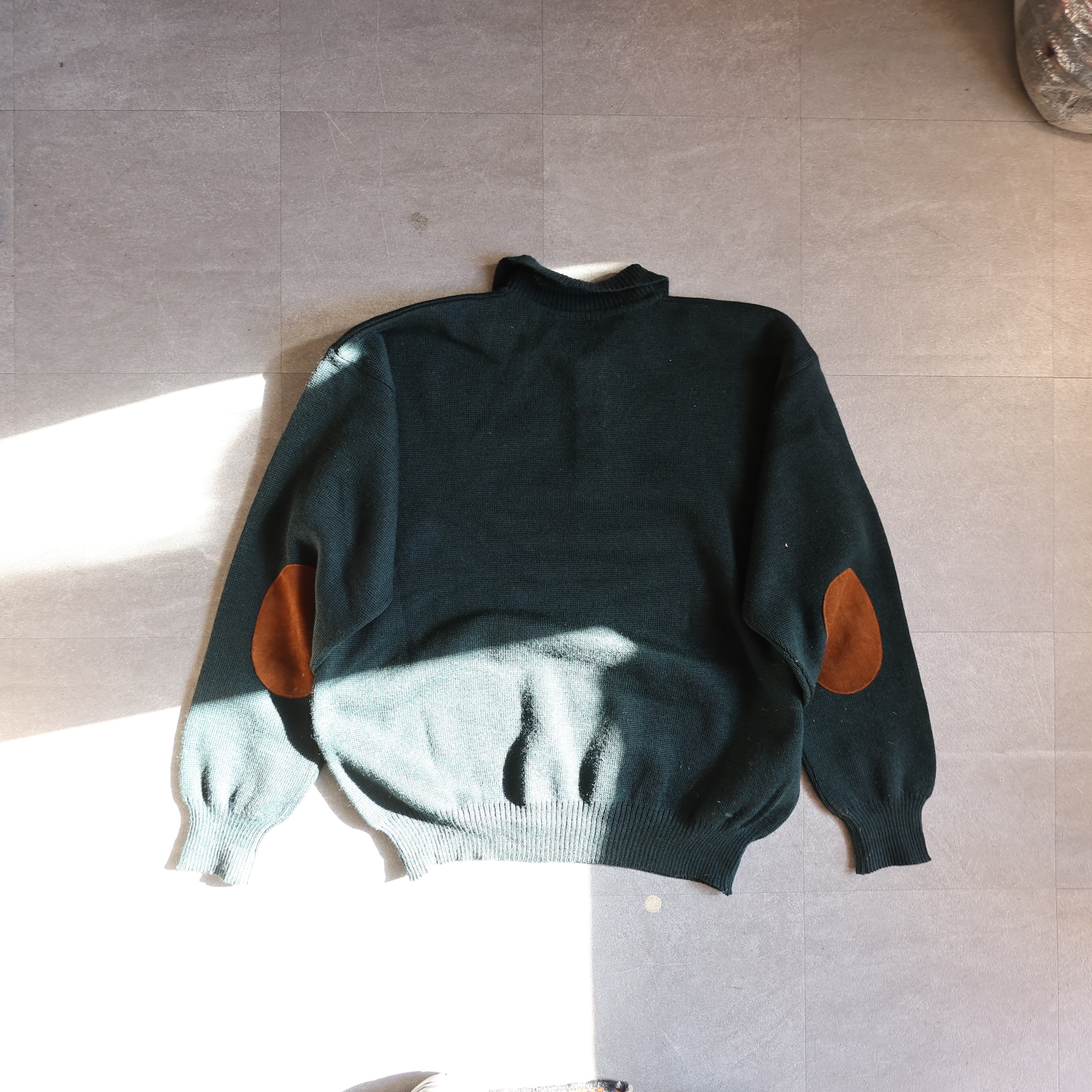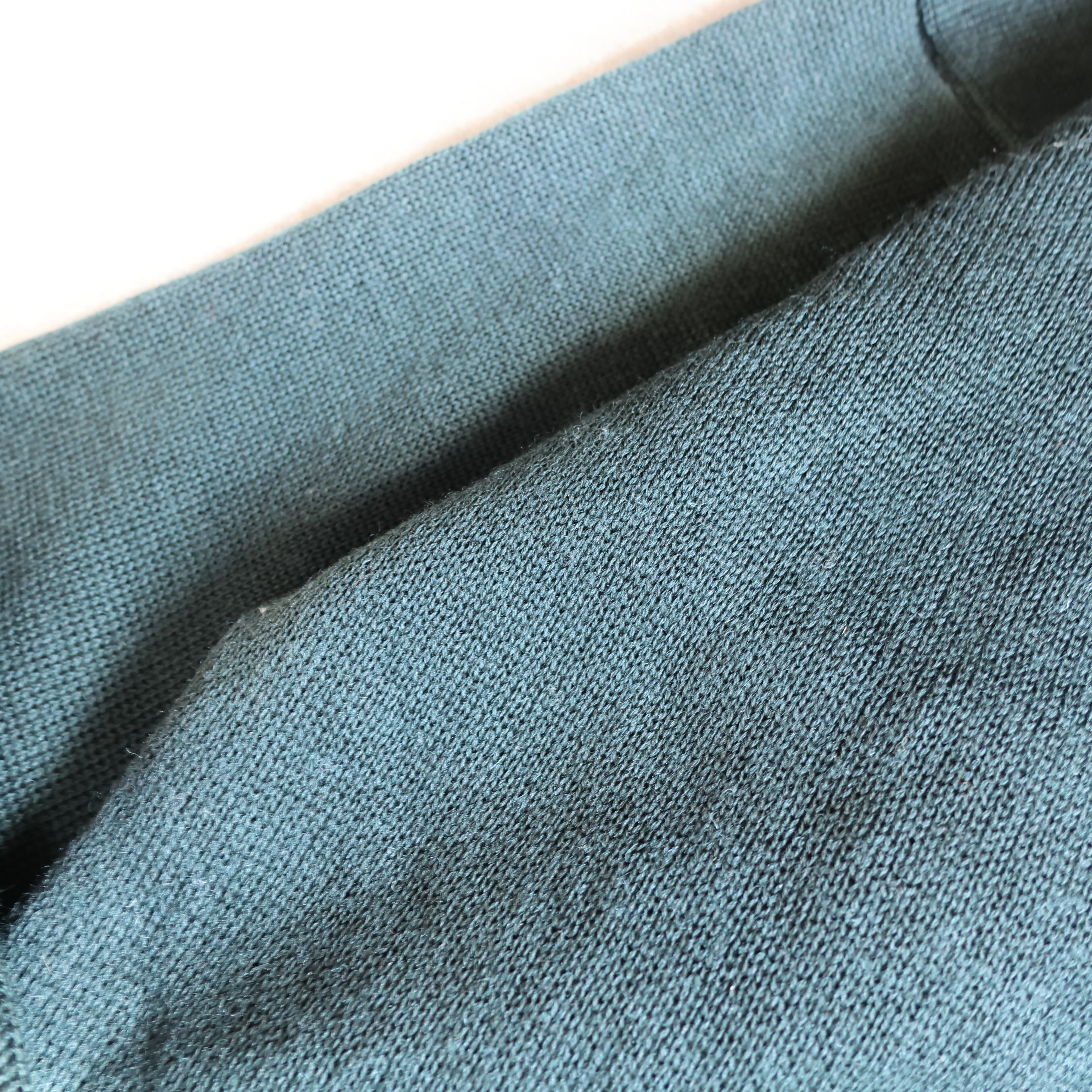 分厚すぎないのにしっかりしたウール生地感でチクチク感は待ったくありません。エルボーパッチも全体を崩さないブラウンの滑らかなスウェードが取り付けられた個体。