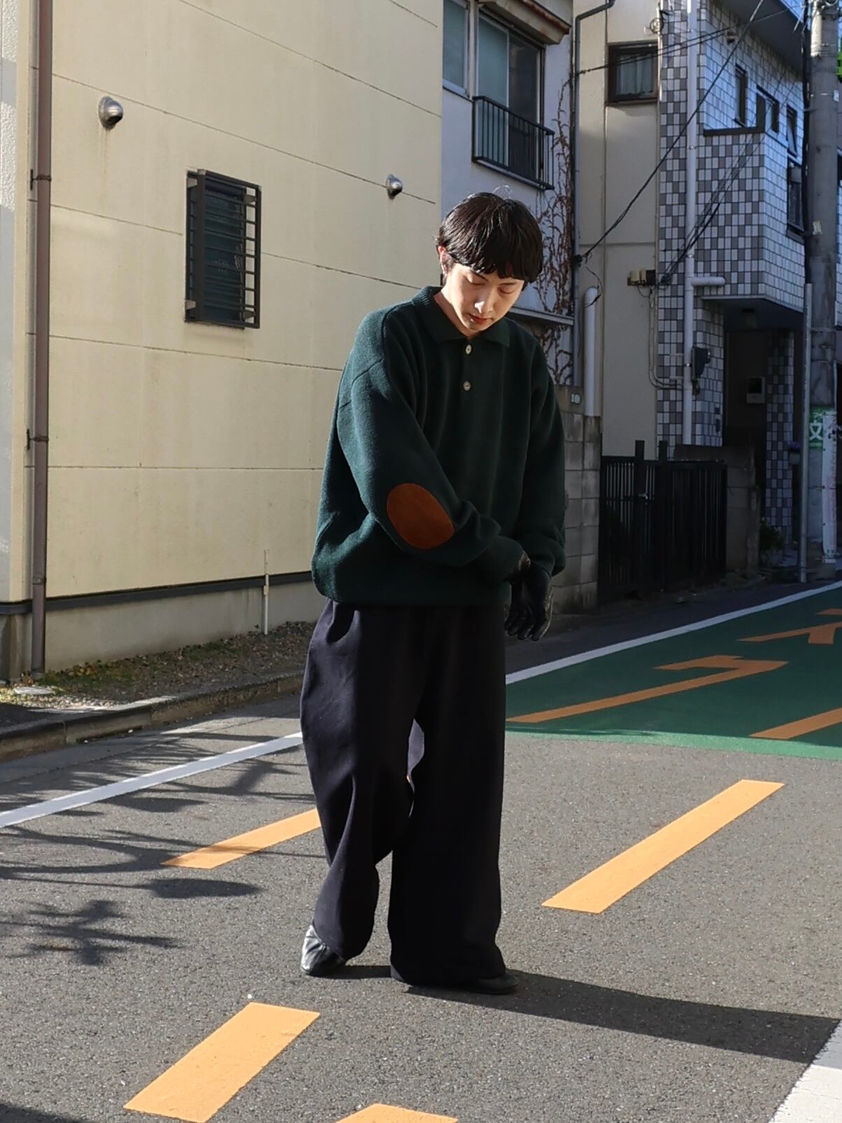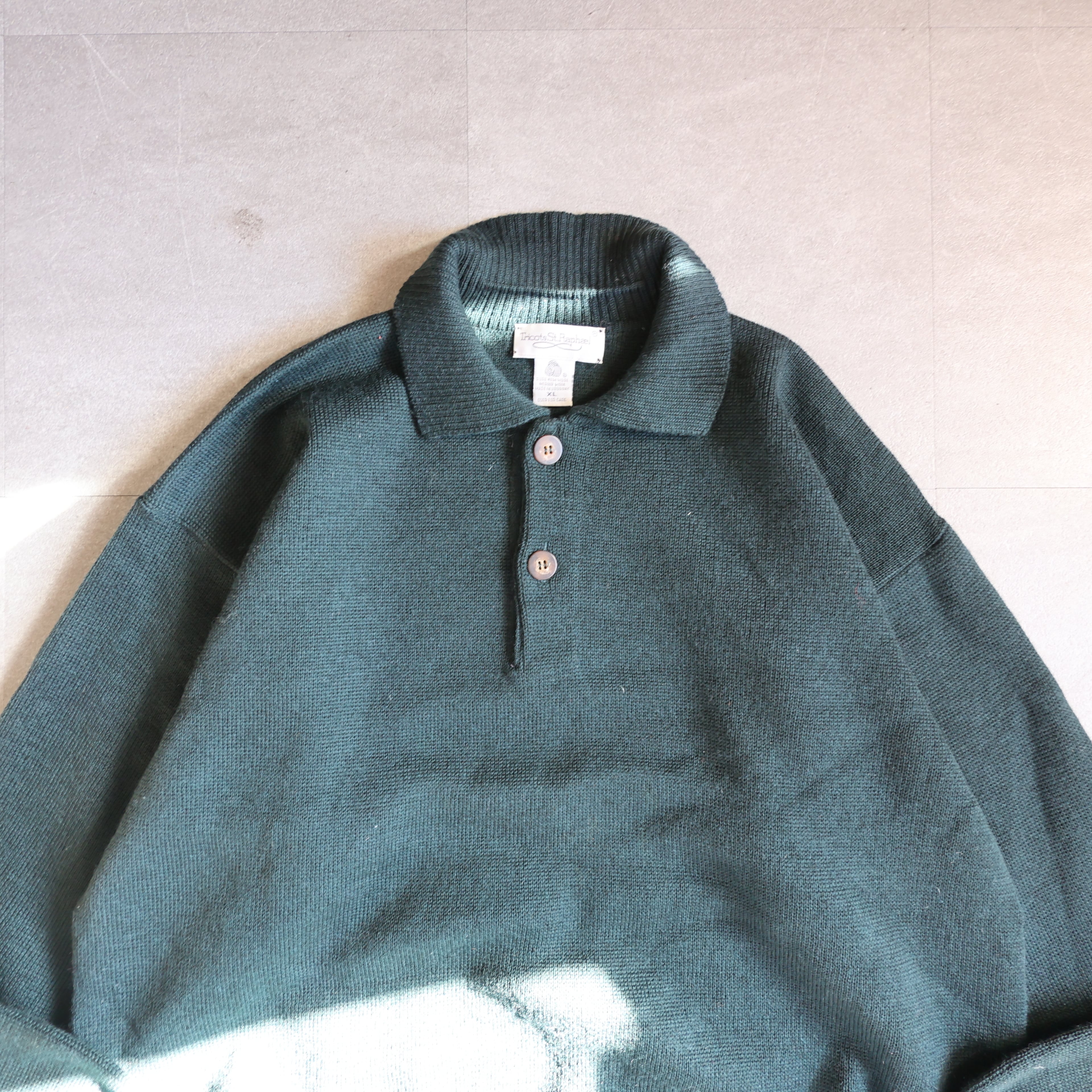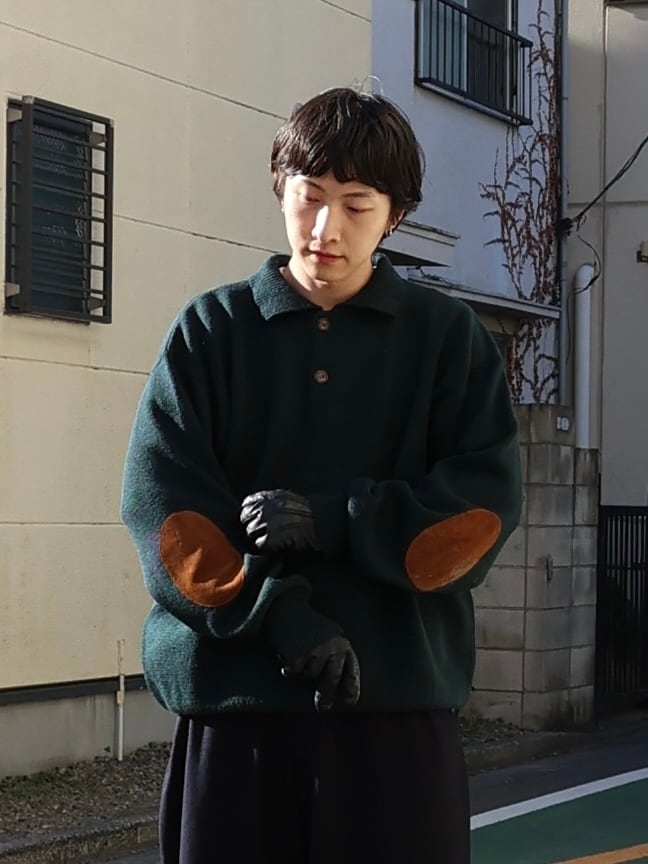 【USED】1980s uruguay製 Tricots ST.Raphael elbow patch merino wool knit polo