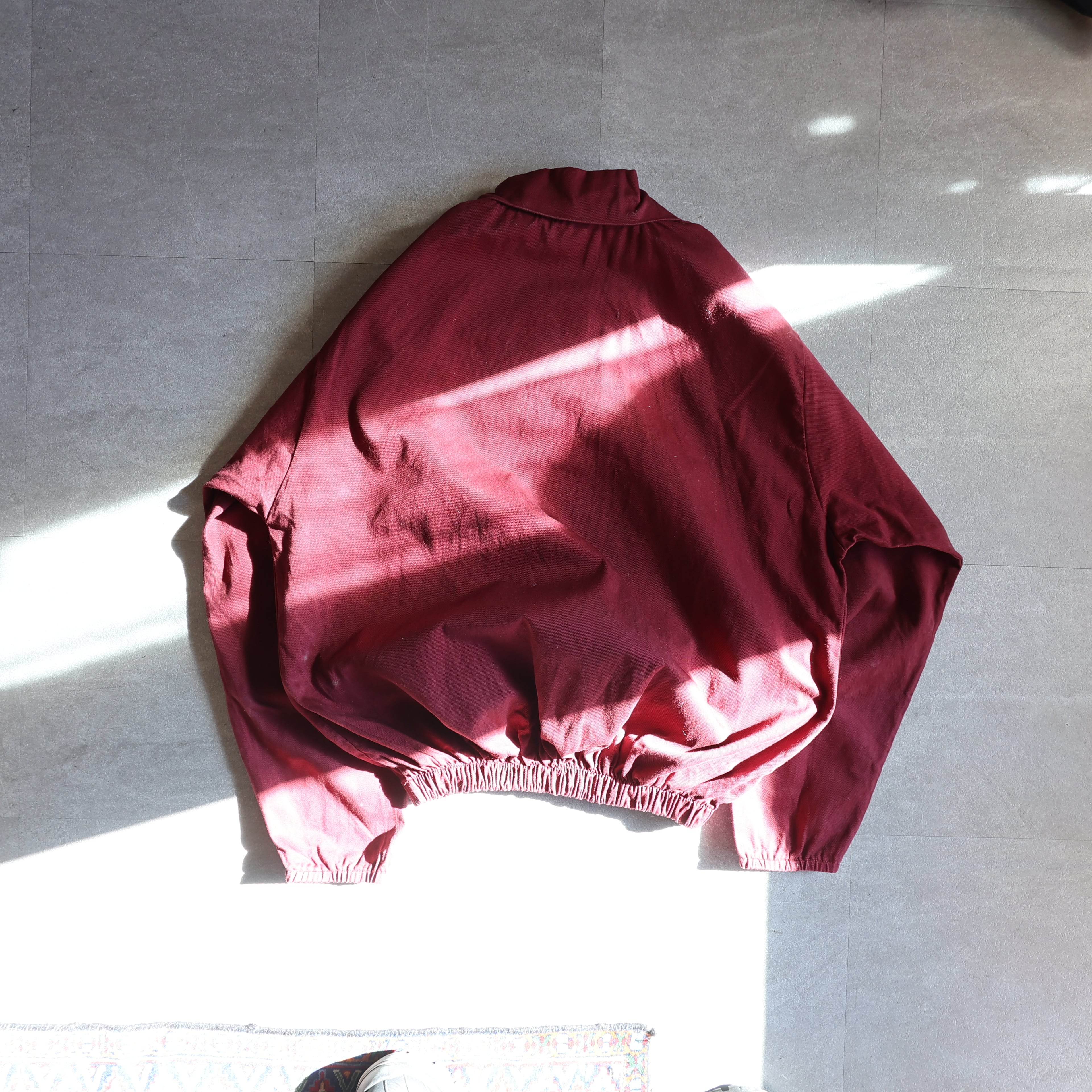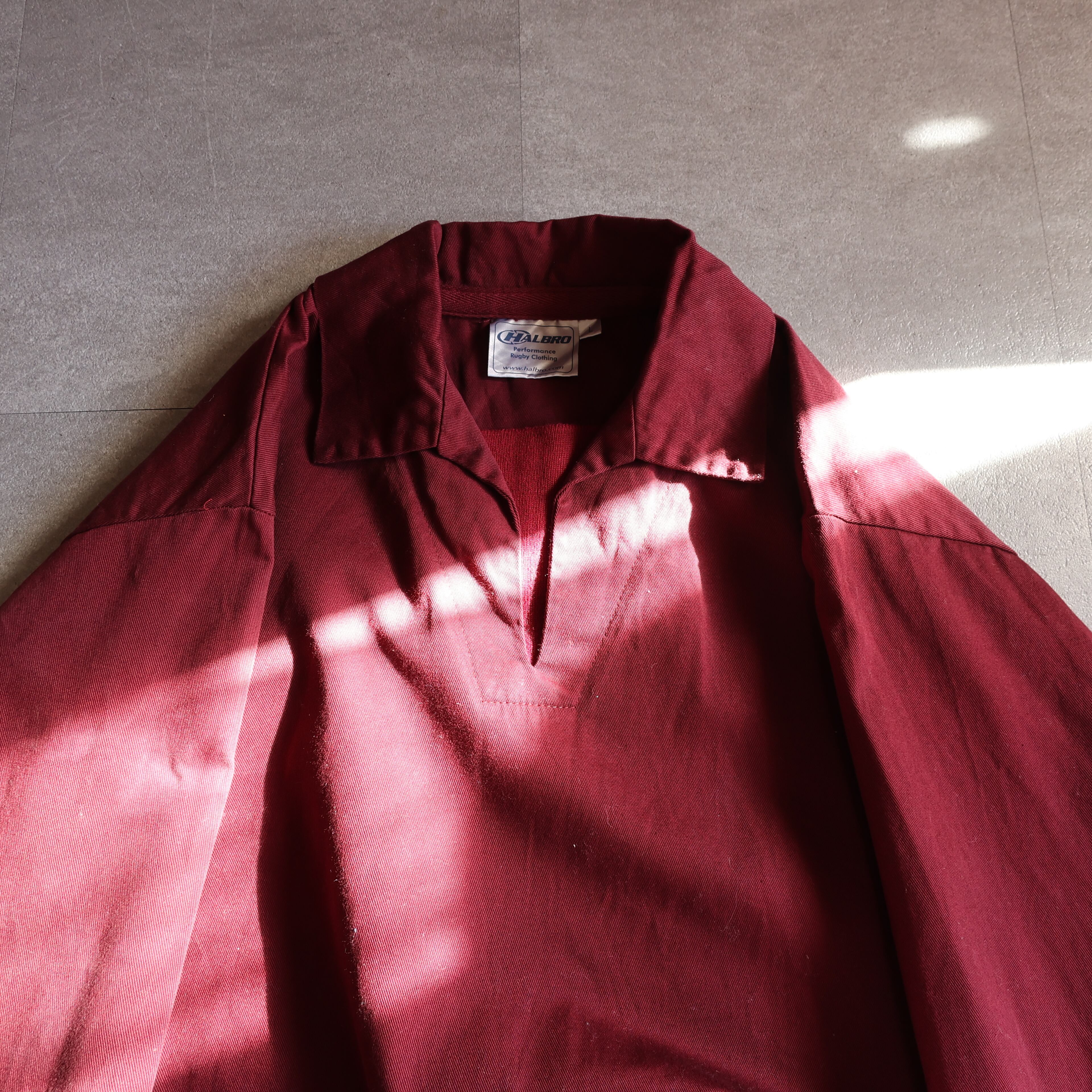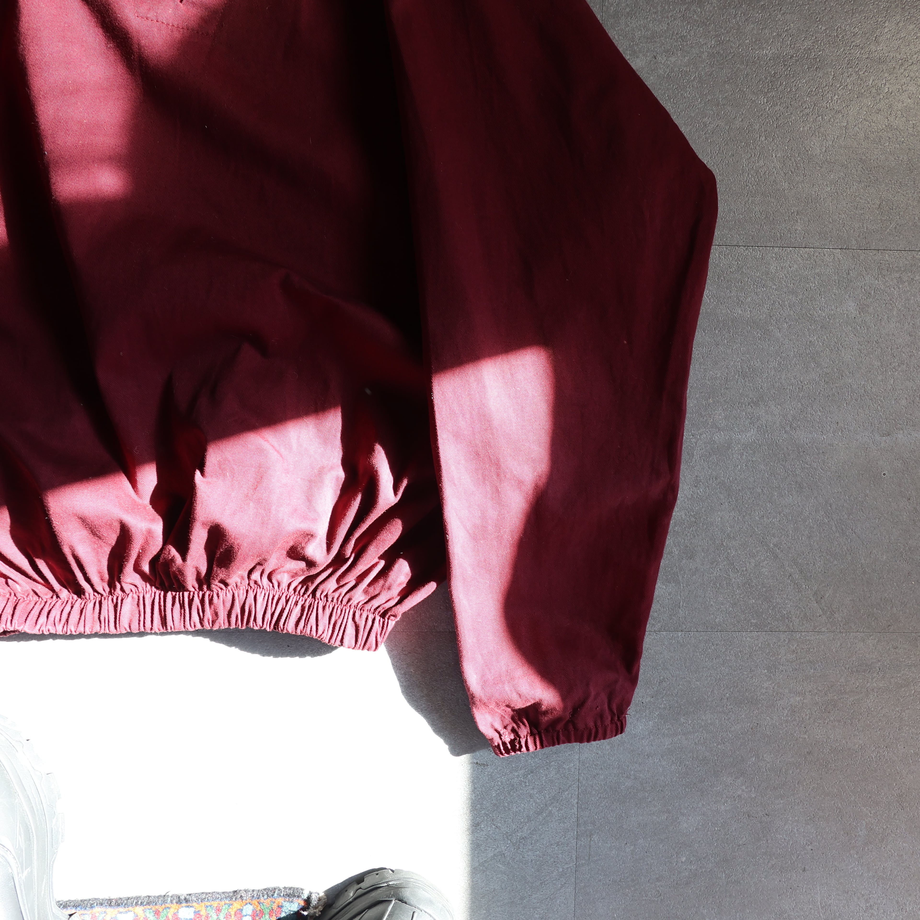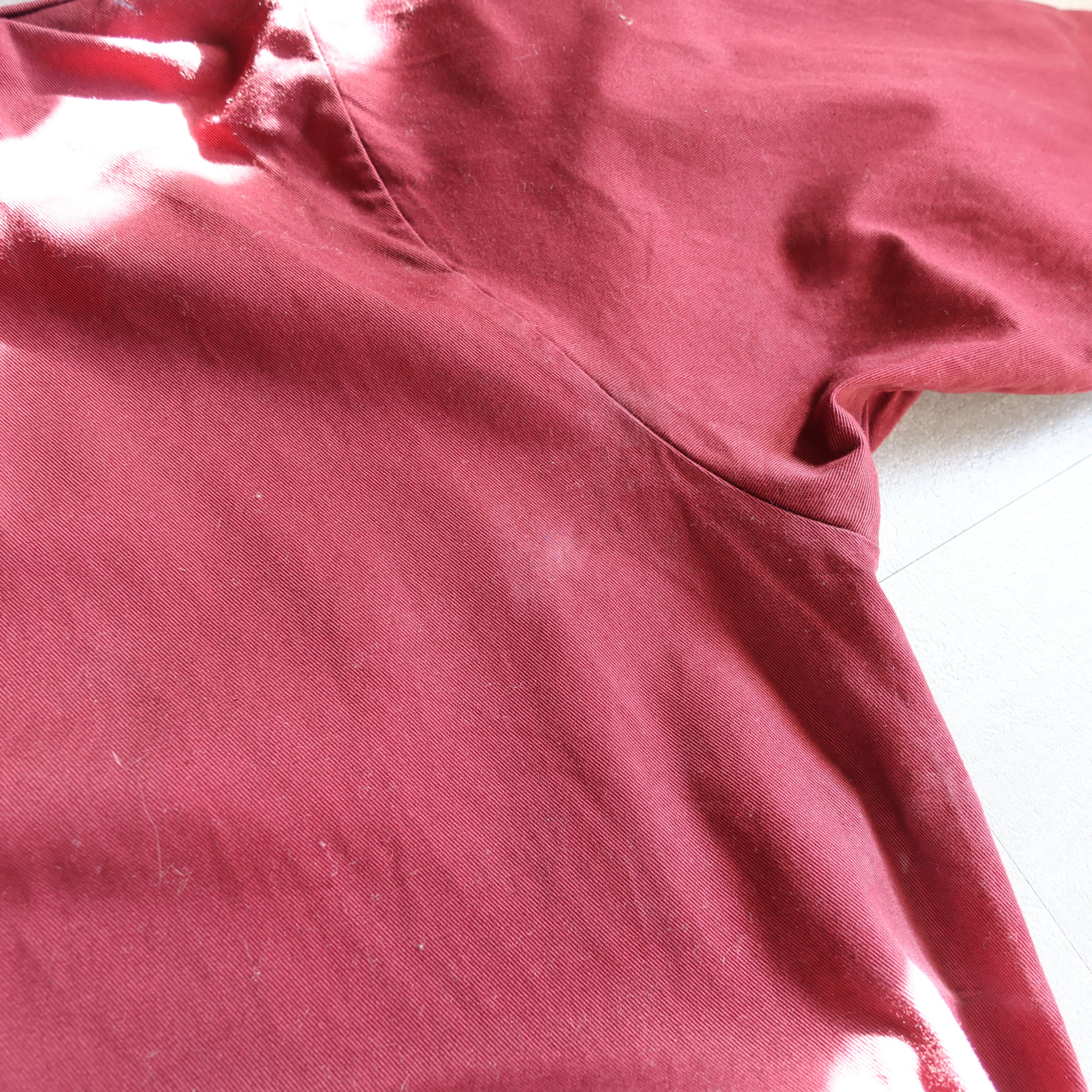 しっかりとしたコットン生地に上品さのあるワインレッド。