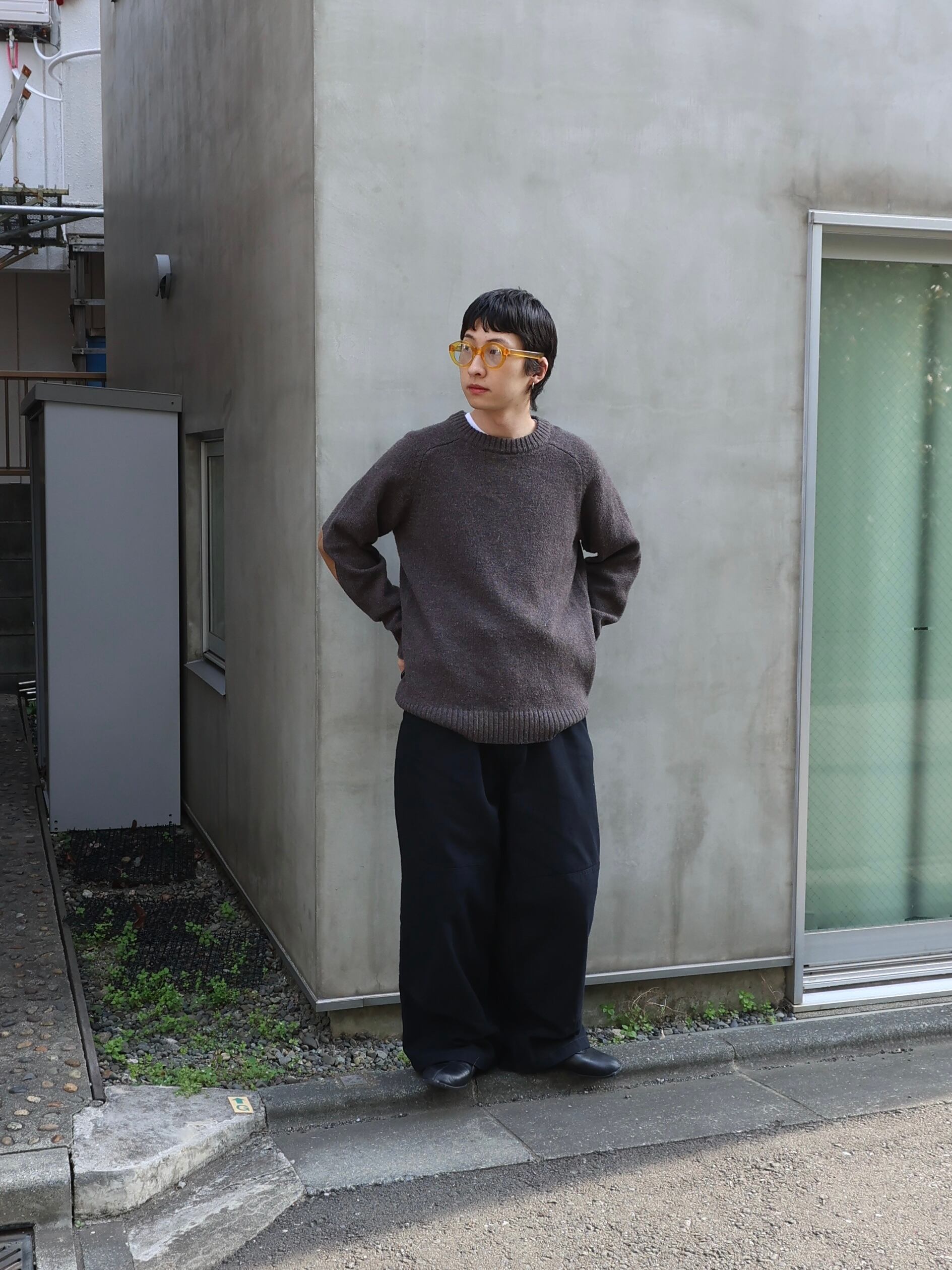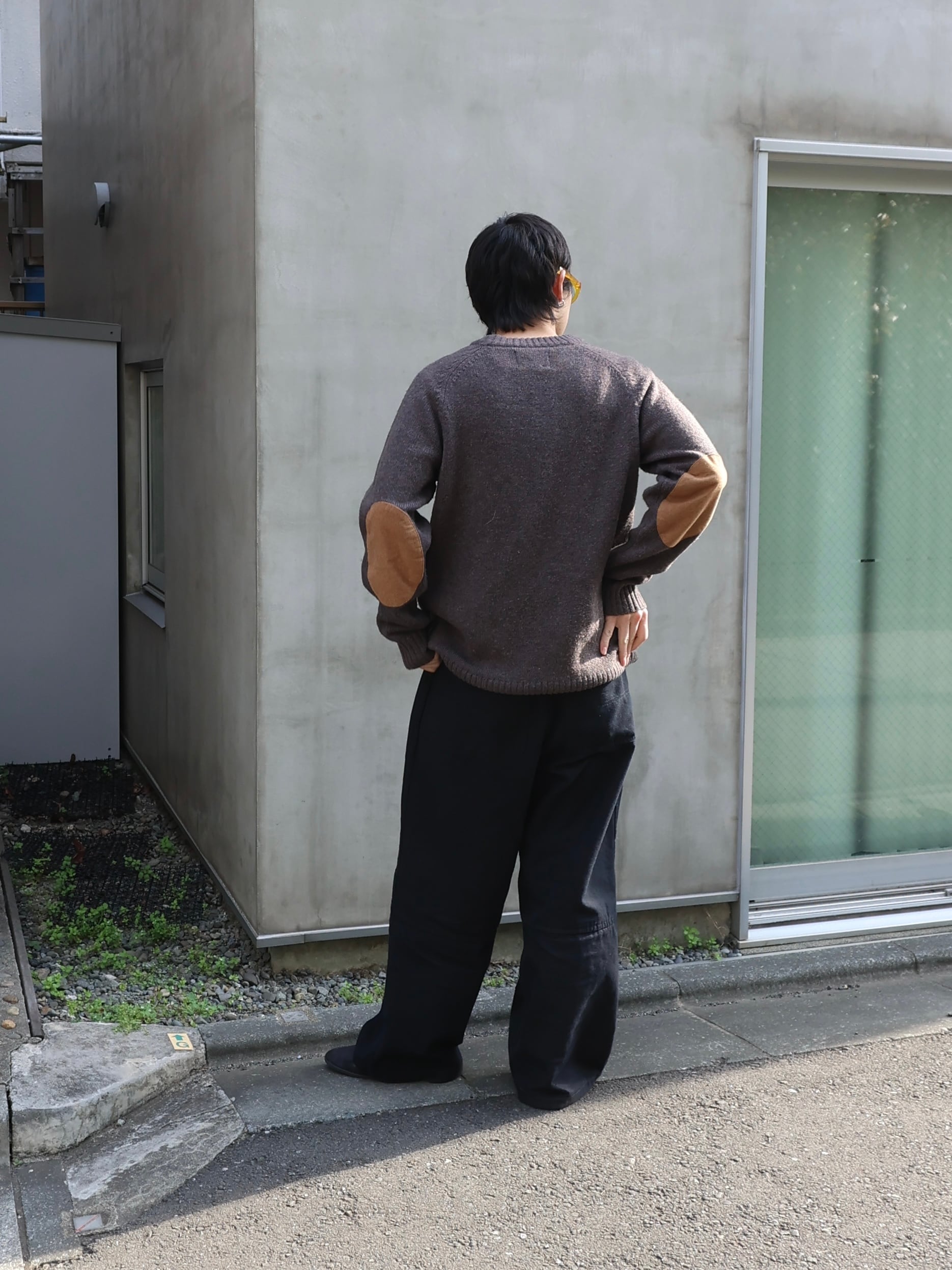 使いやすいチャコールカラーにエルボーパッチ。