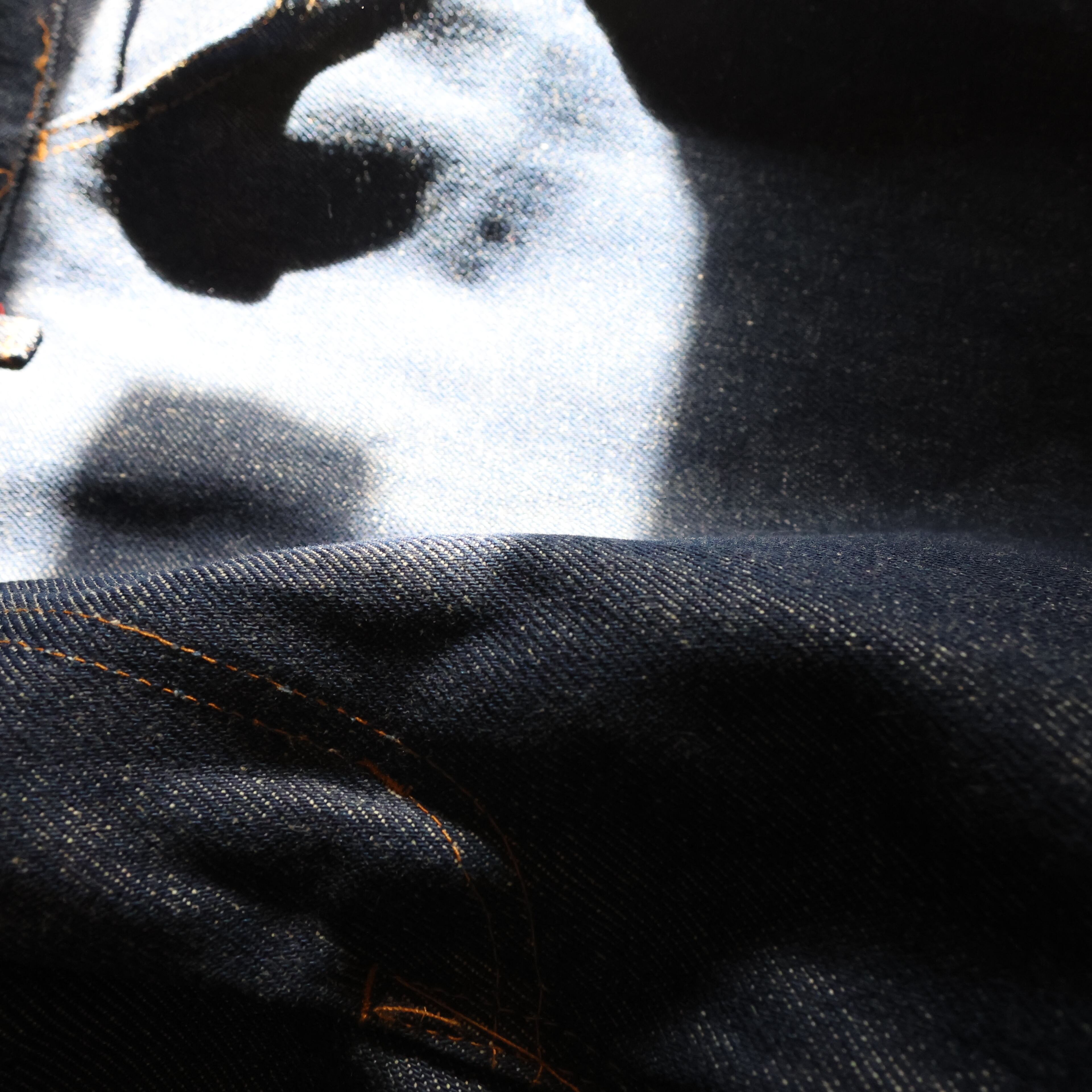 デッドストックのバキバキデニム生地。