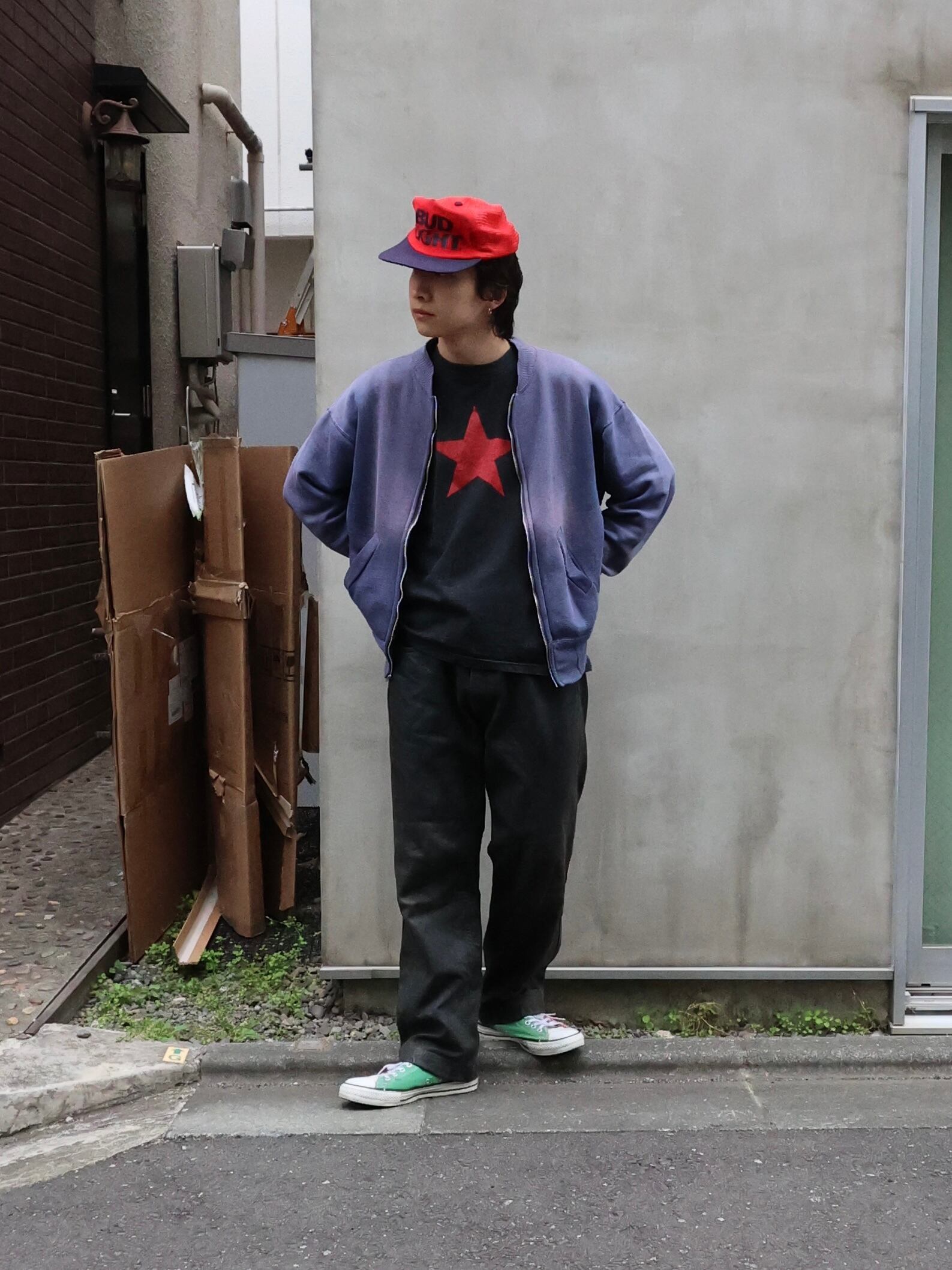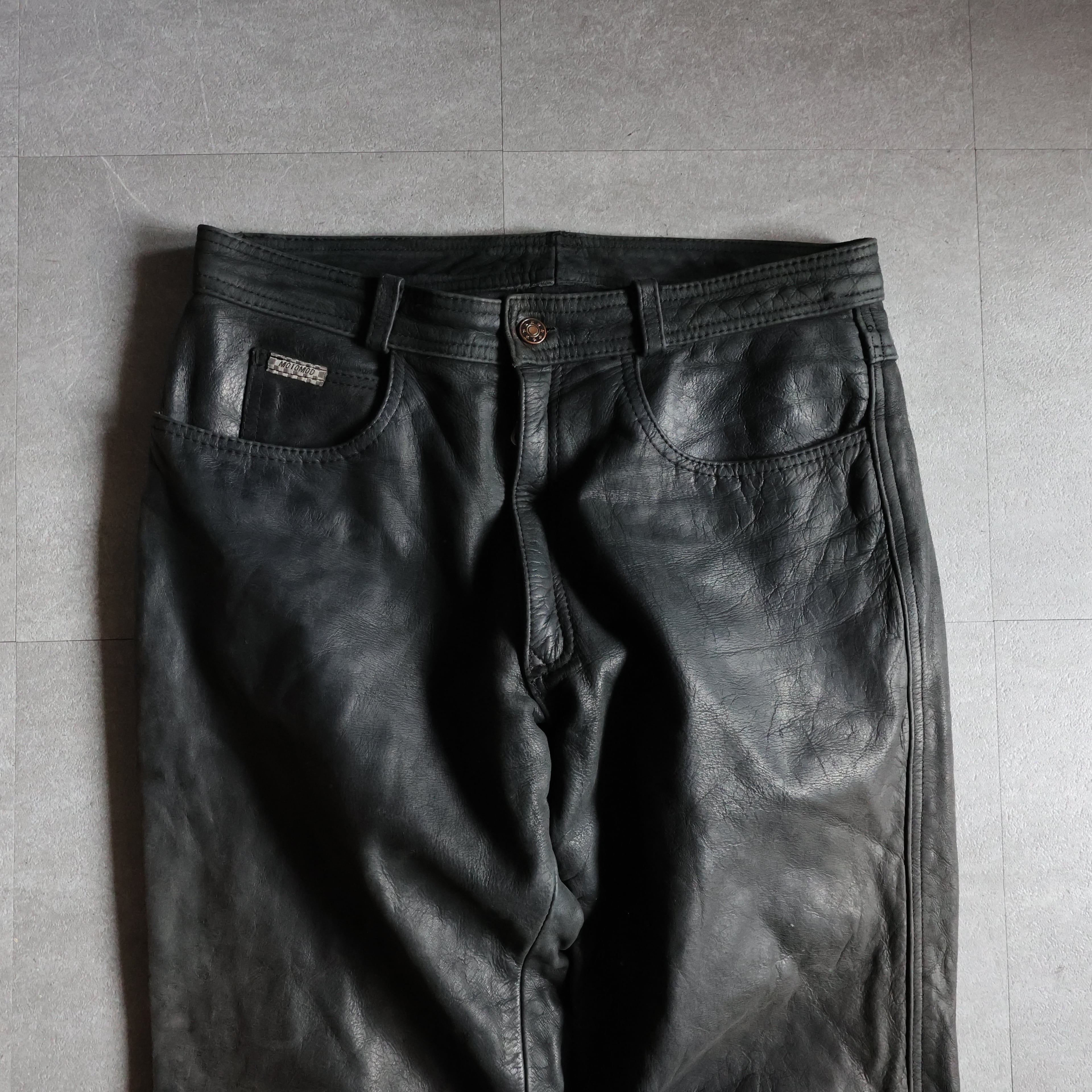 【USED】1990s moto mod leather straight pants