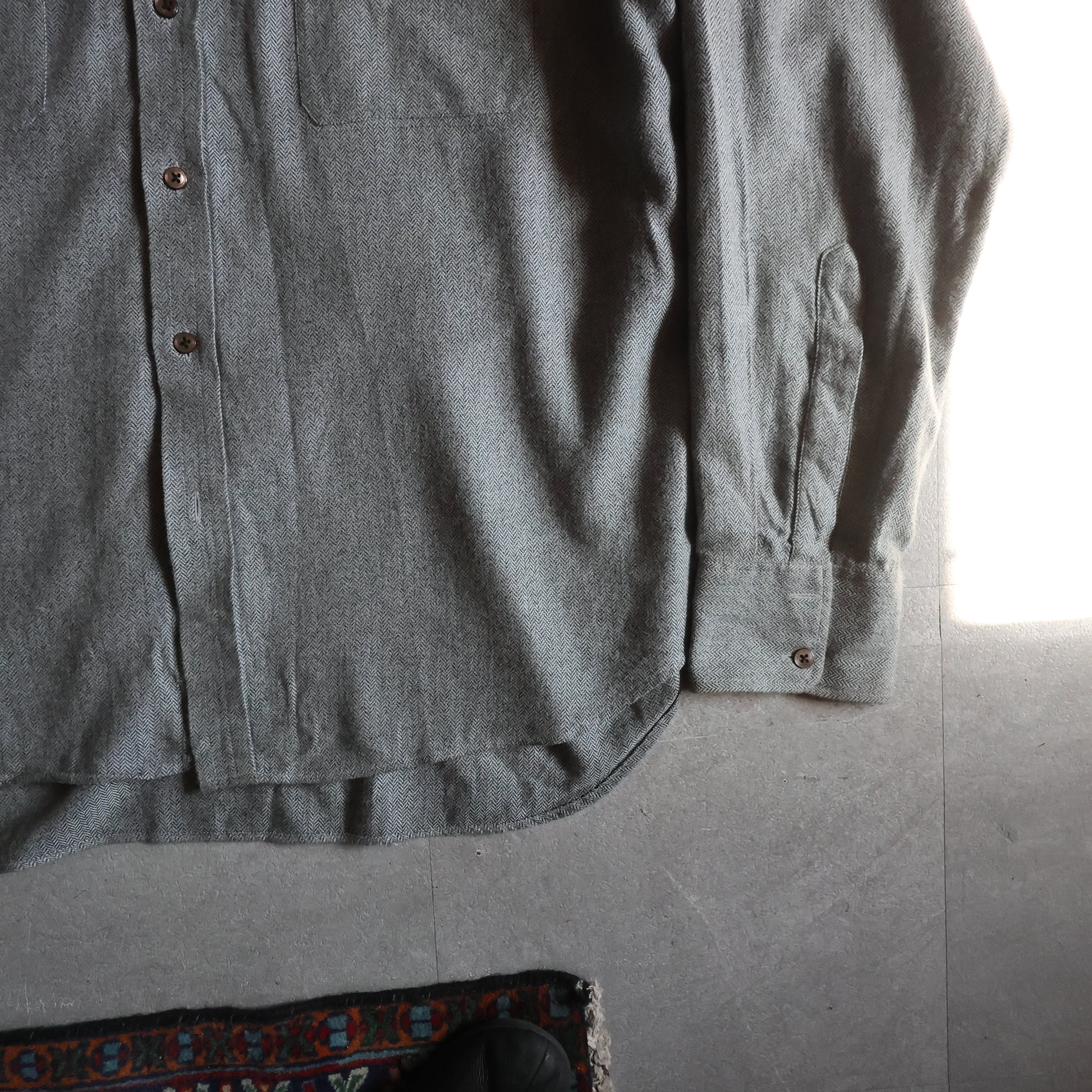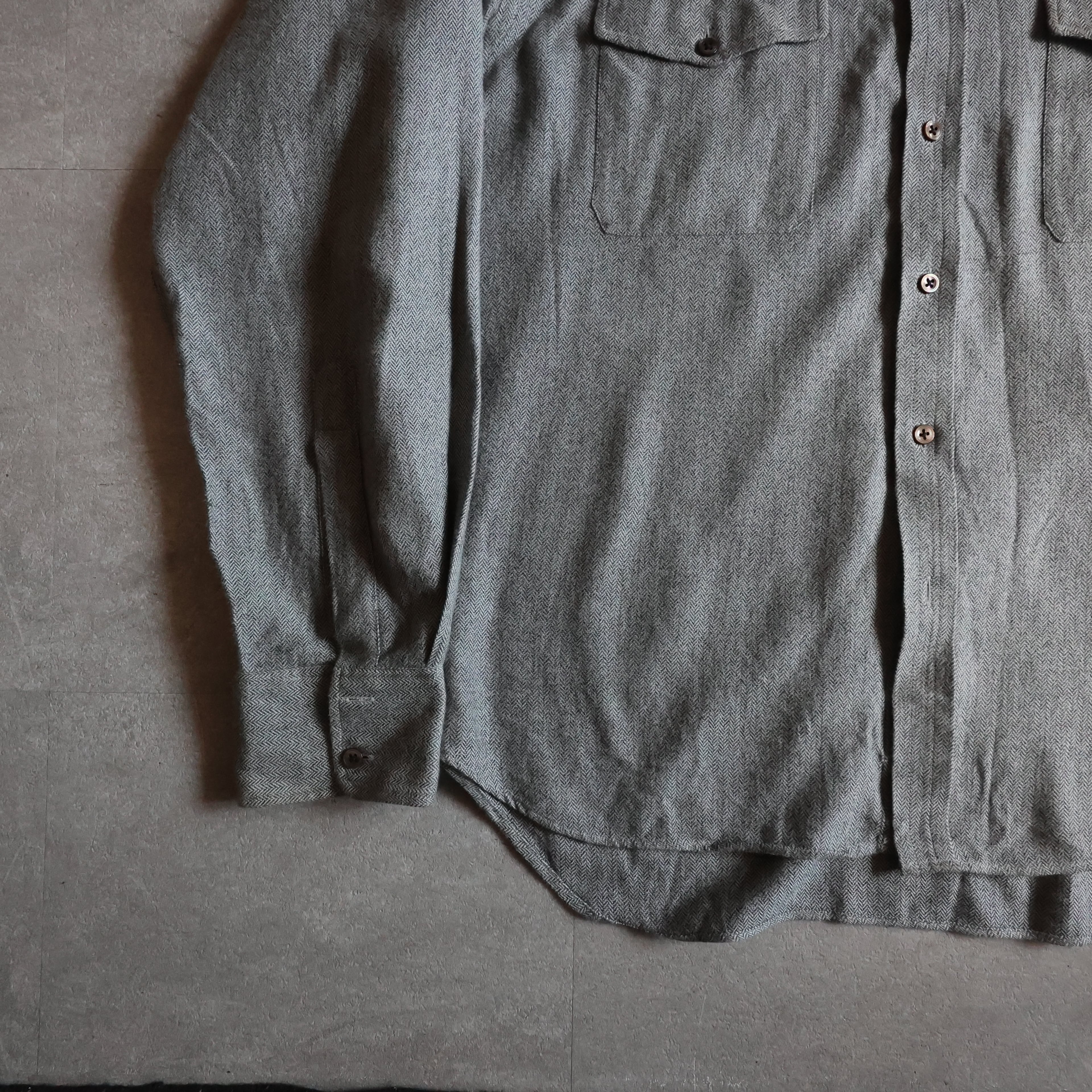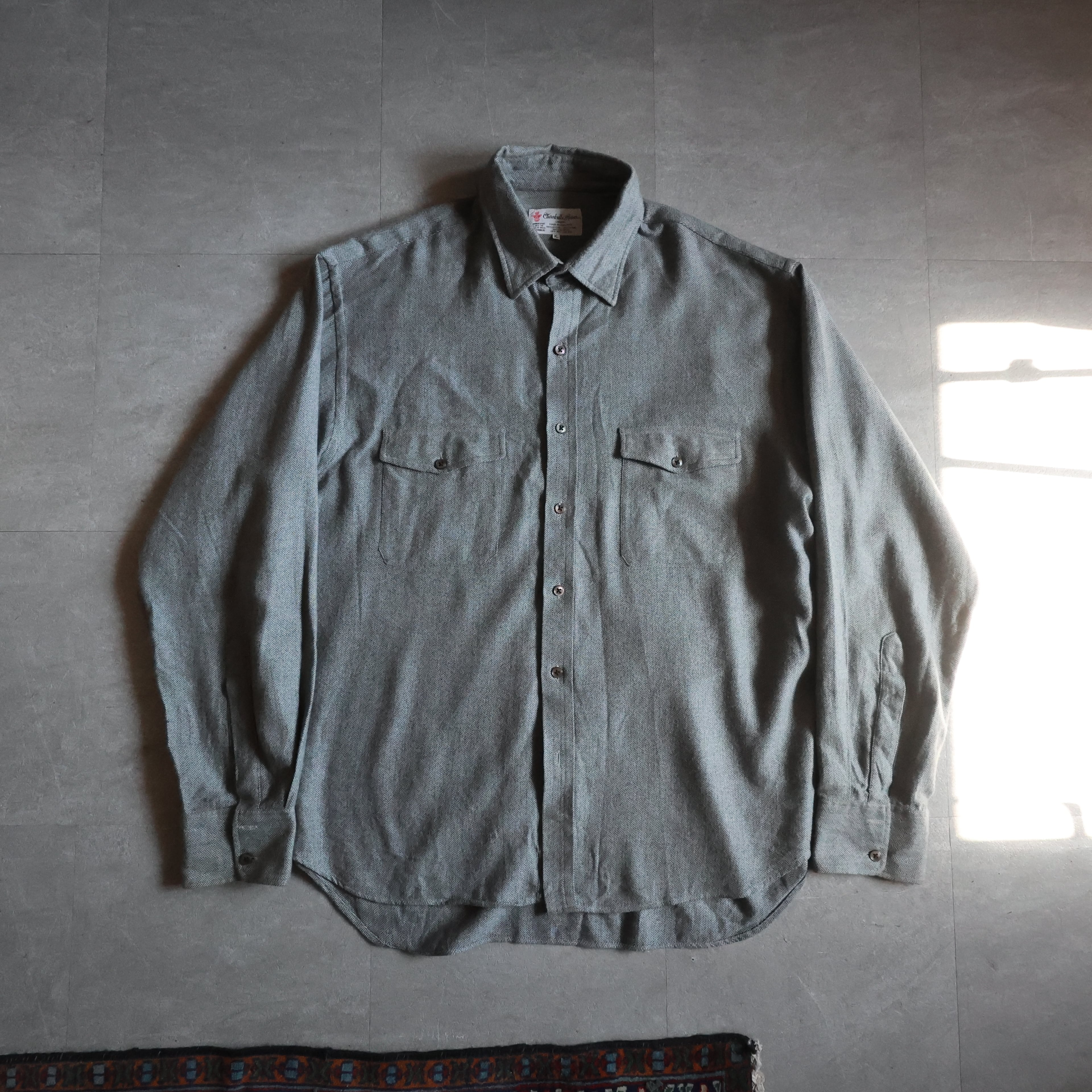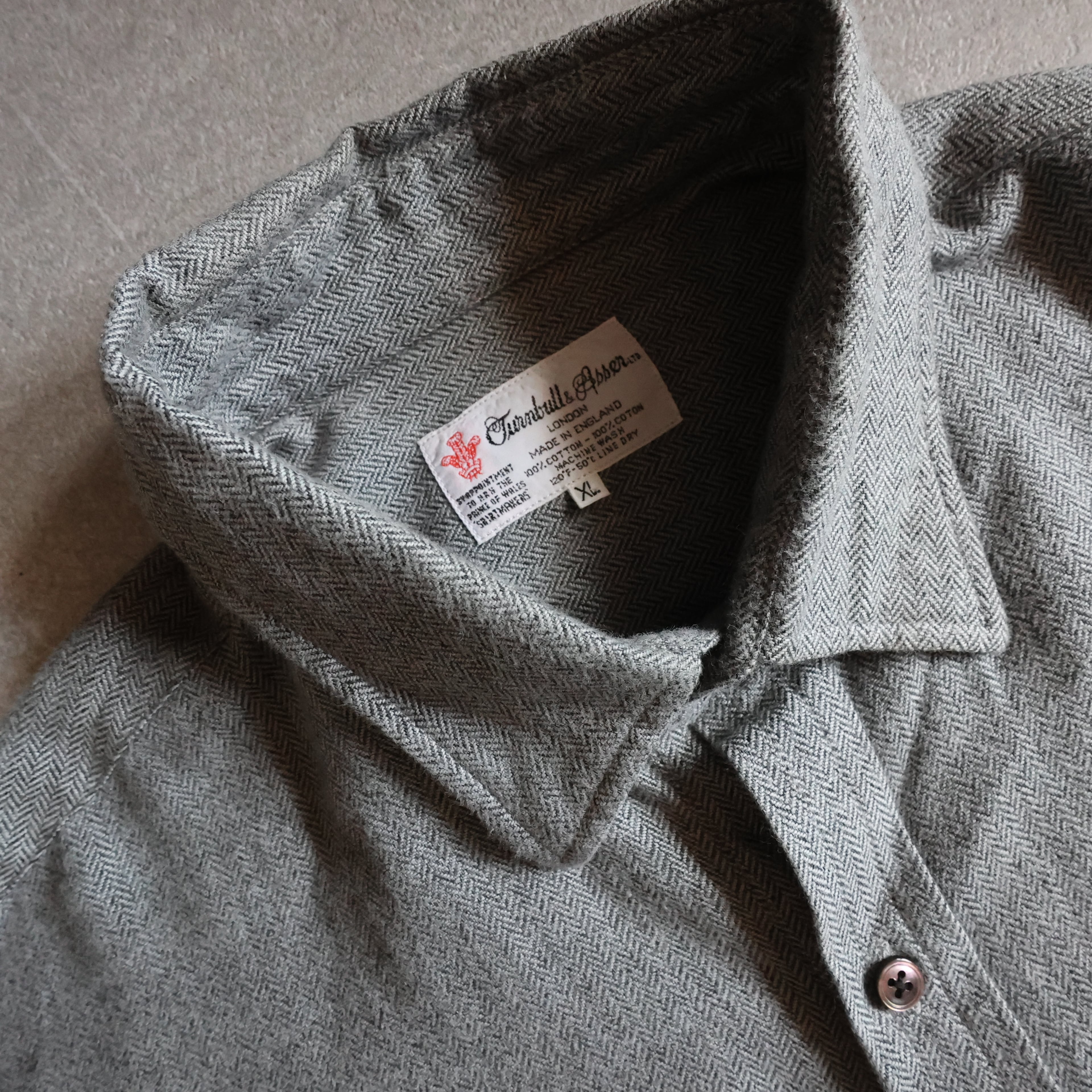 【USED】1980~90s England製 Turnbull & Asser royal Warrant cotton herringbone shirt