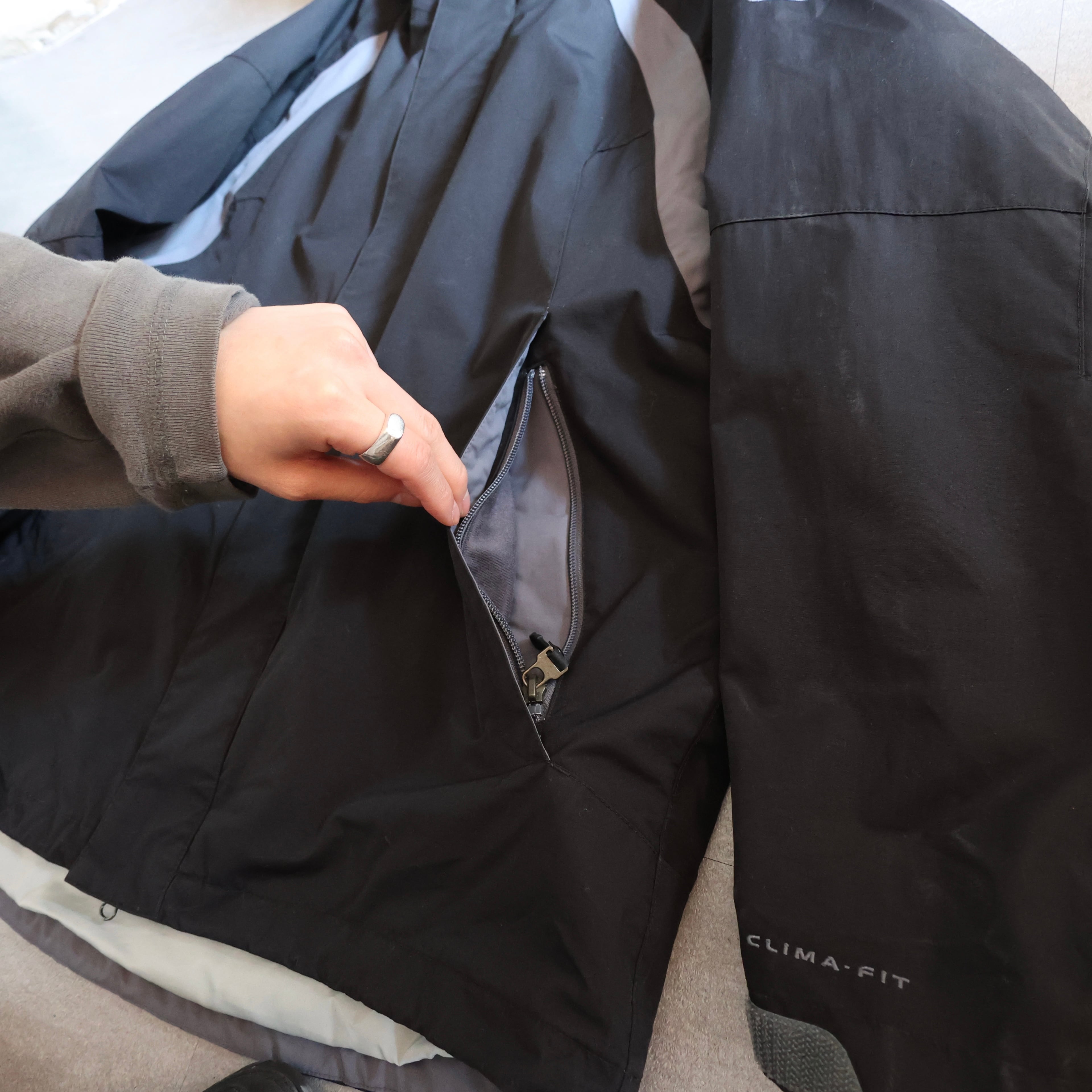 ダブルジップに裾にはドローコード。