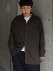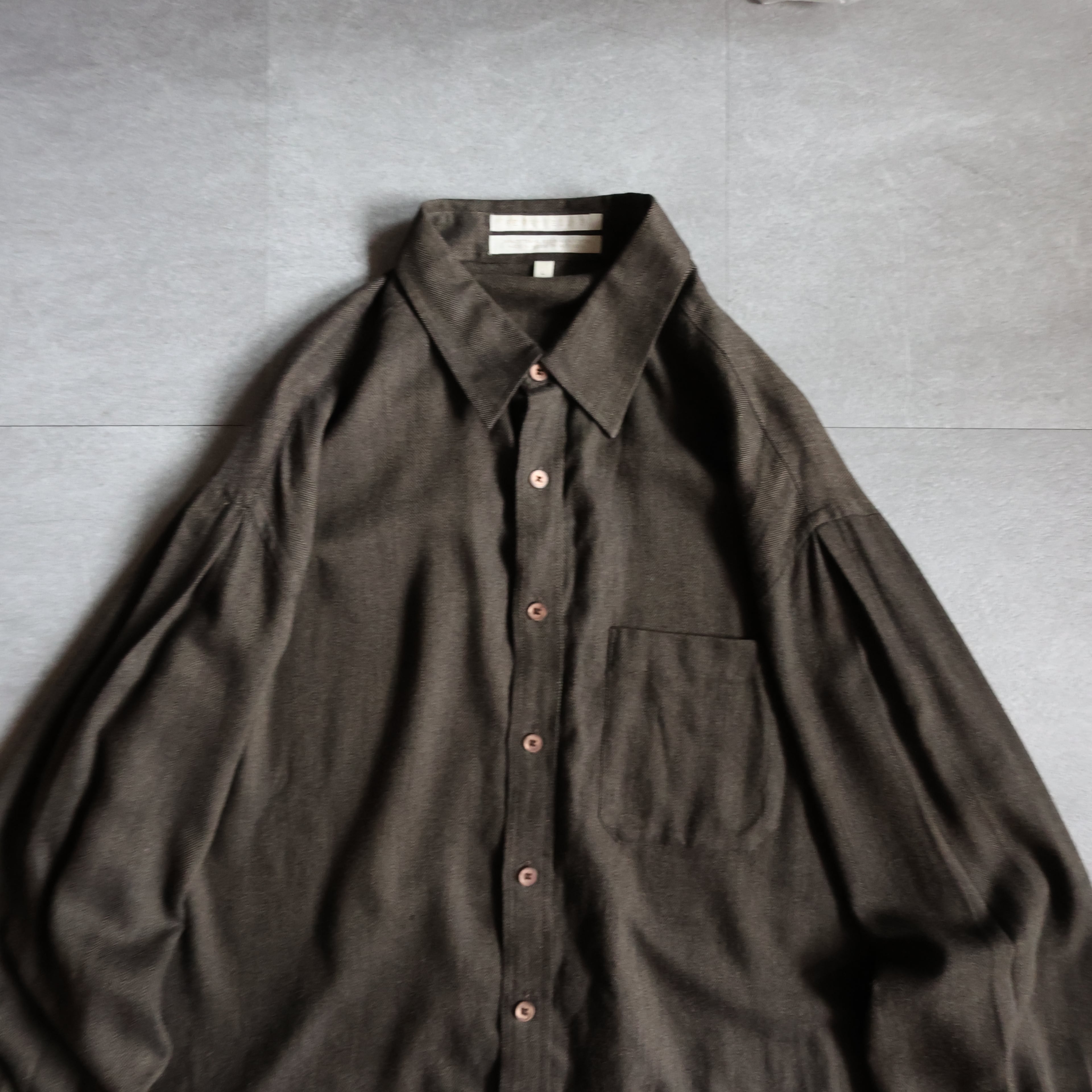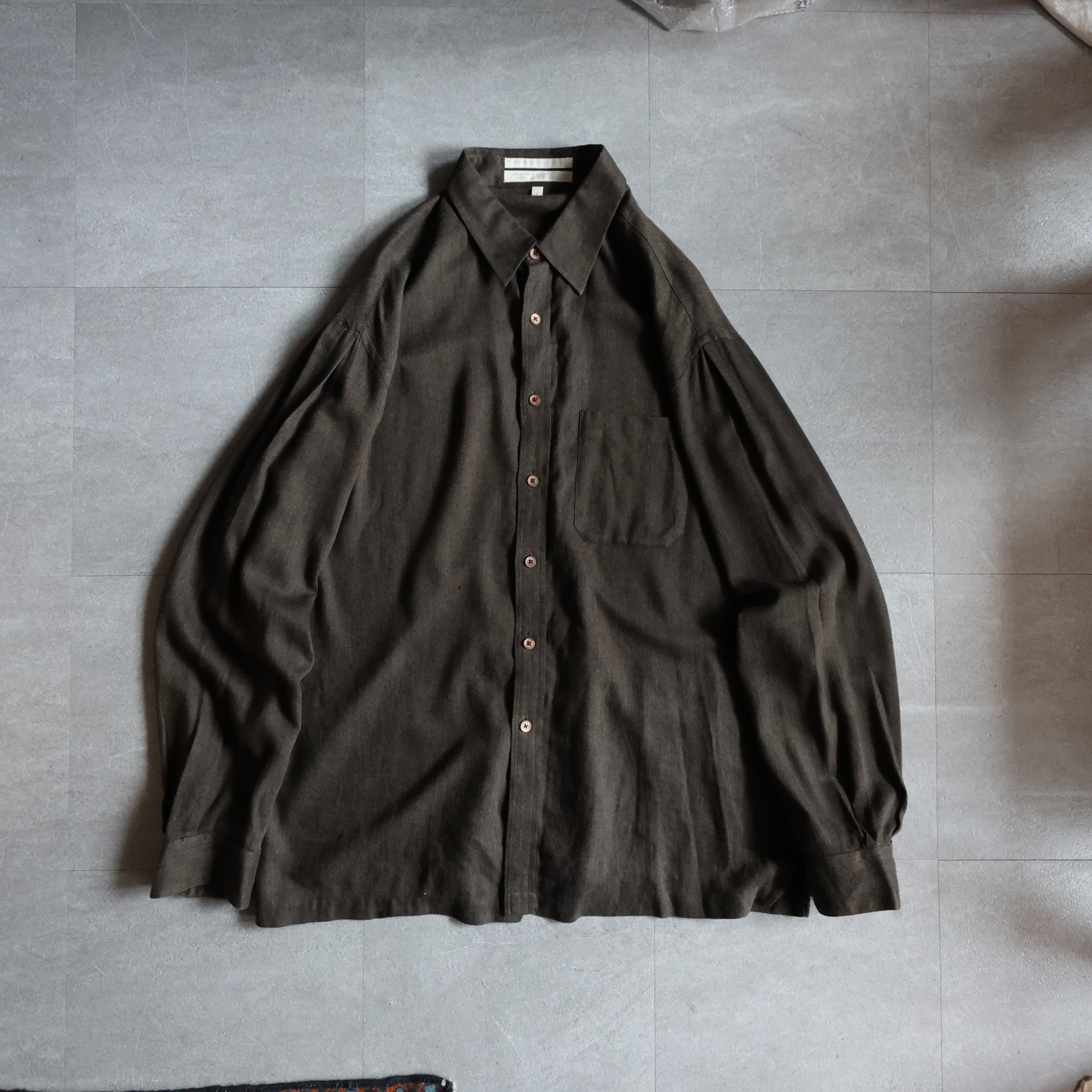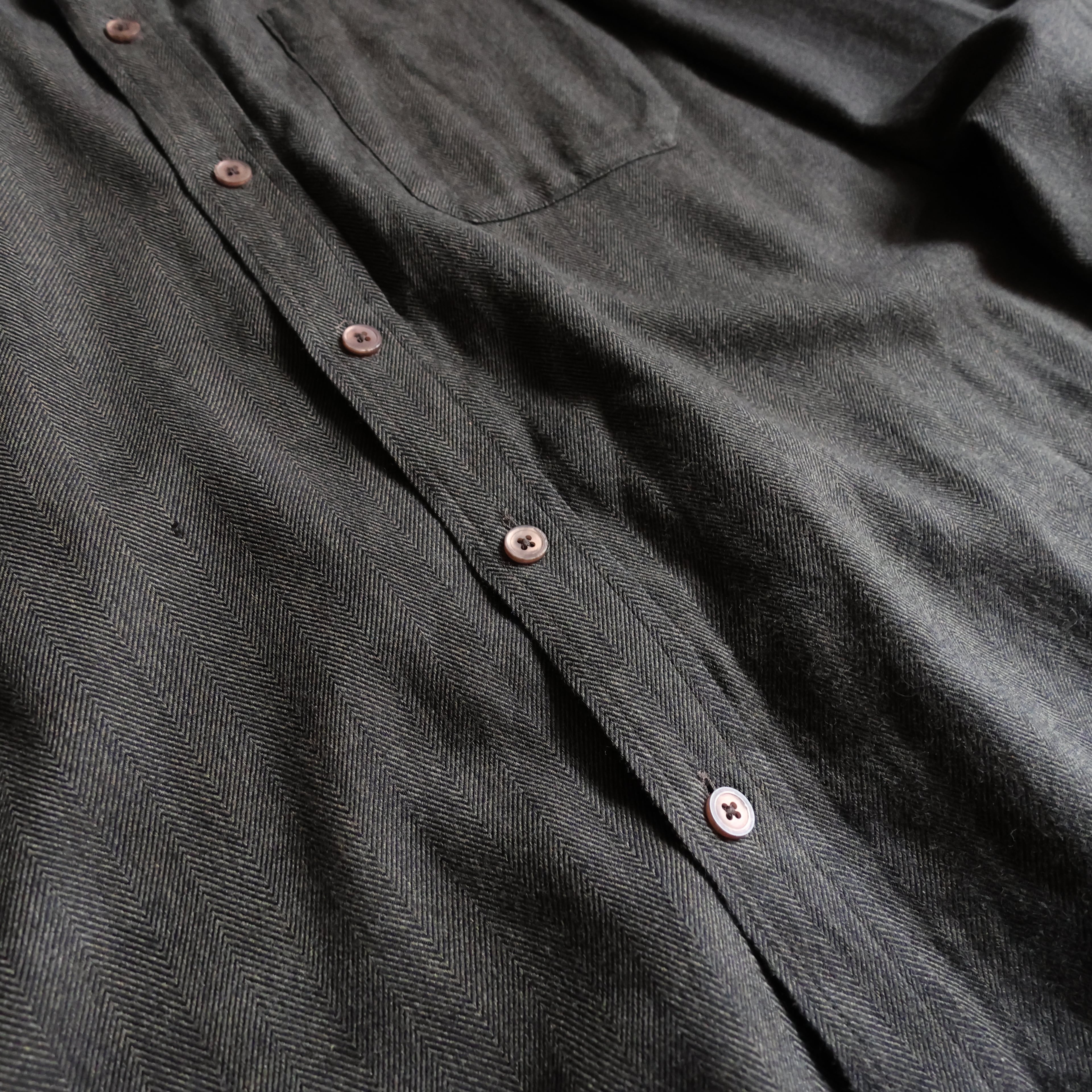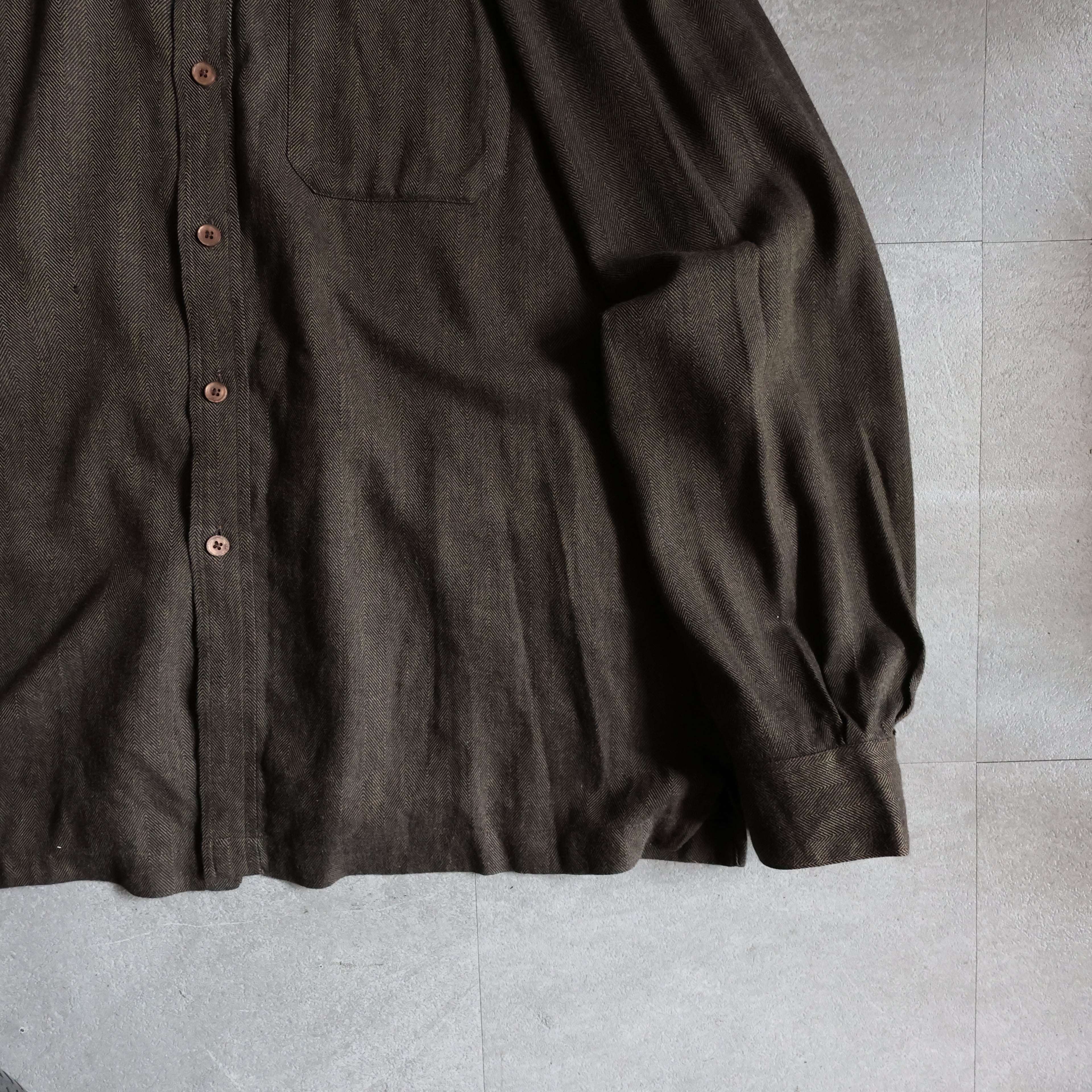【USED】1990s PERRY ELLIS cotton rayon herringbone shirt