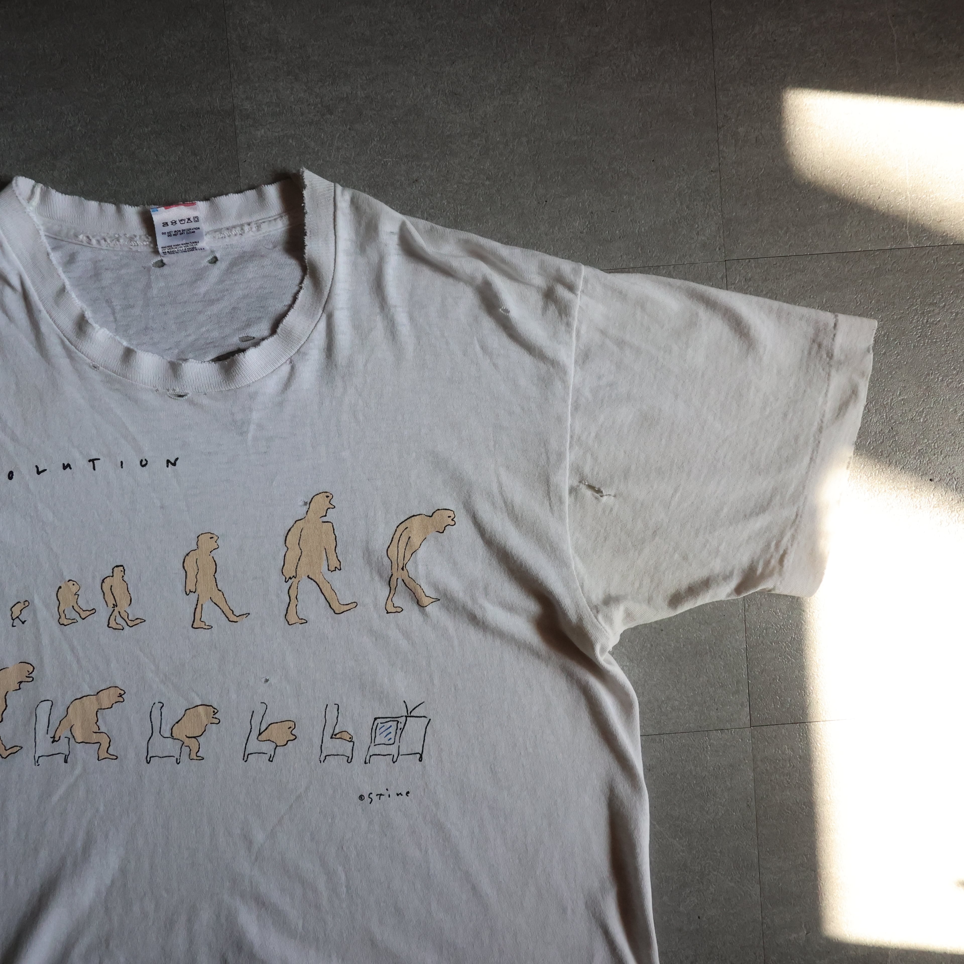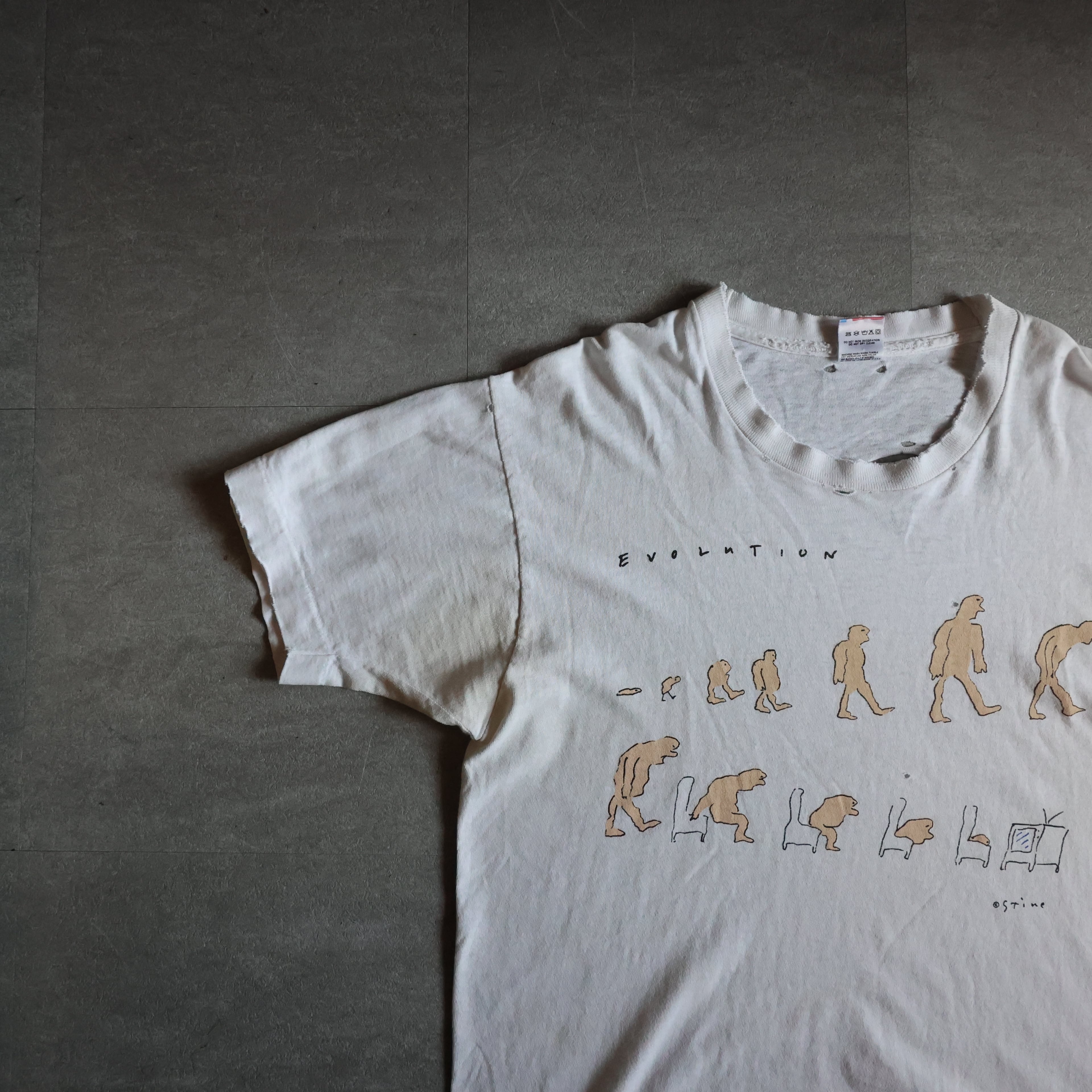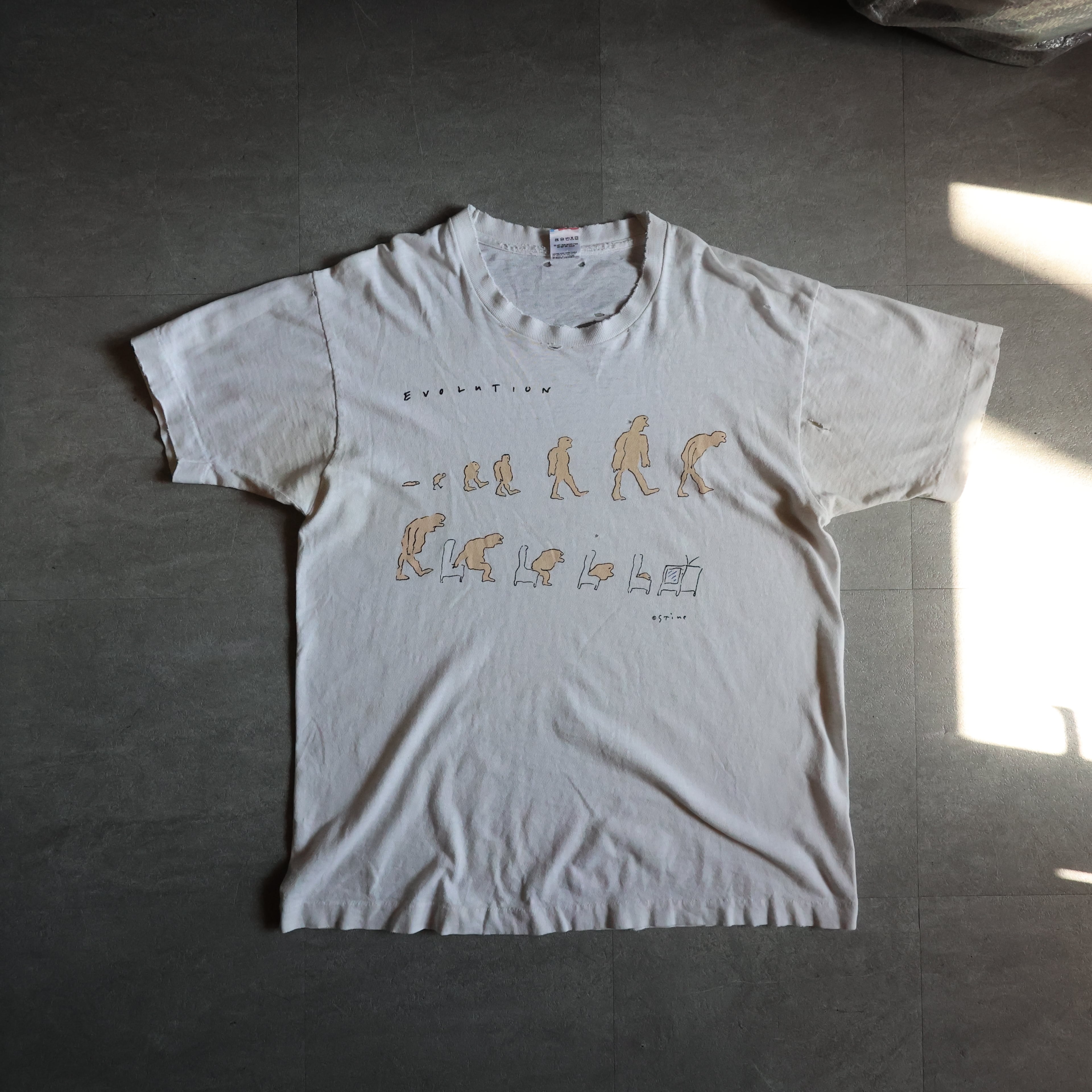 【USED】1990s USA製 Richard Stine ''EVOLUTION'' 襤褸 art TEE