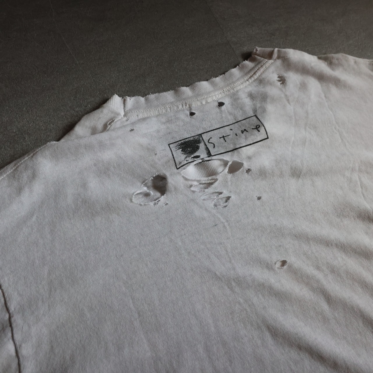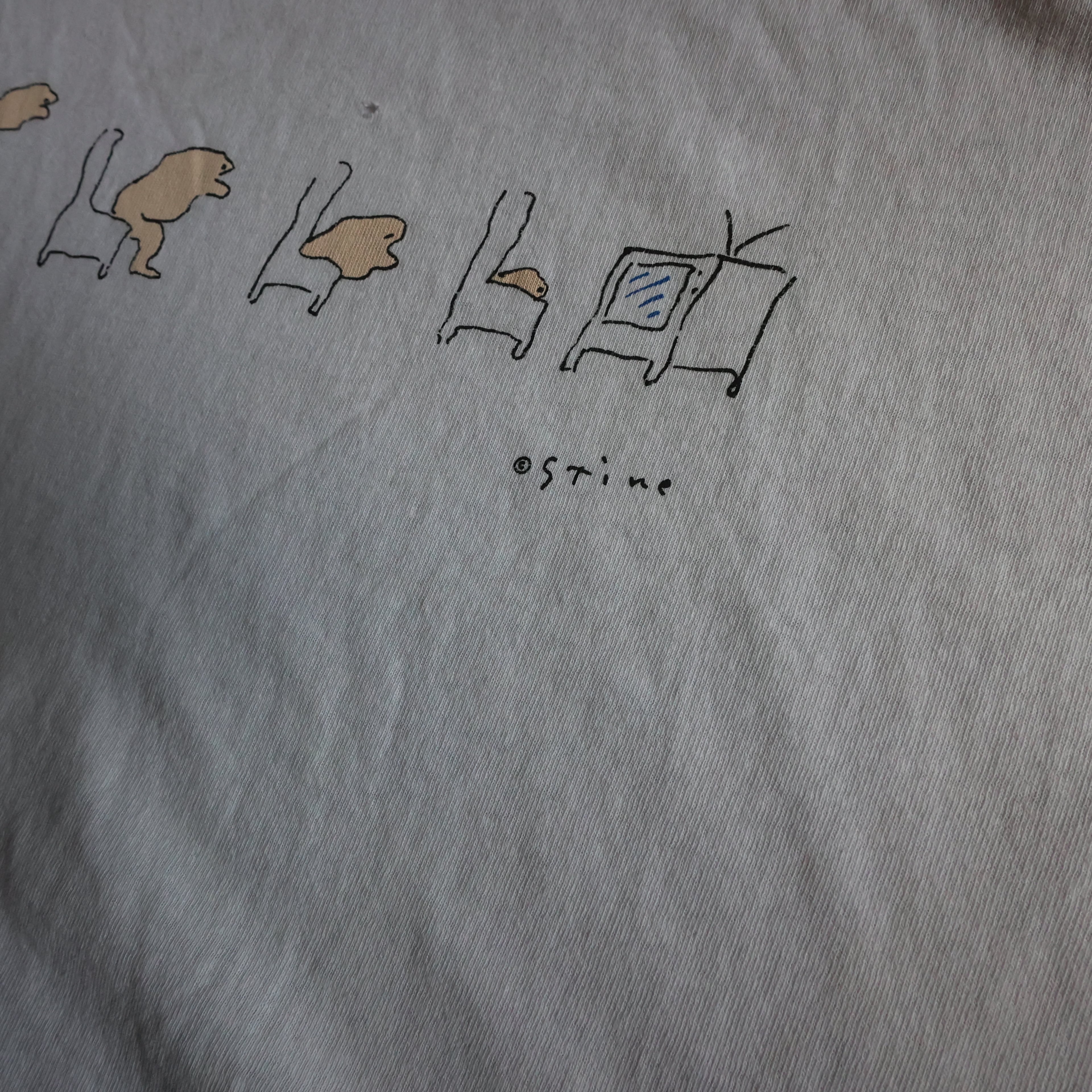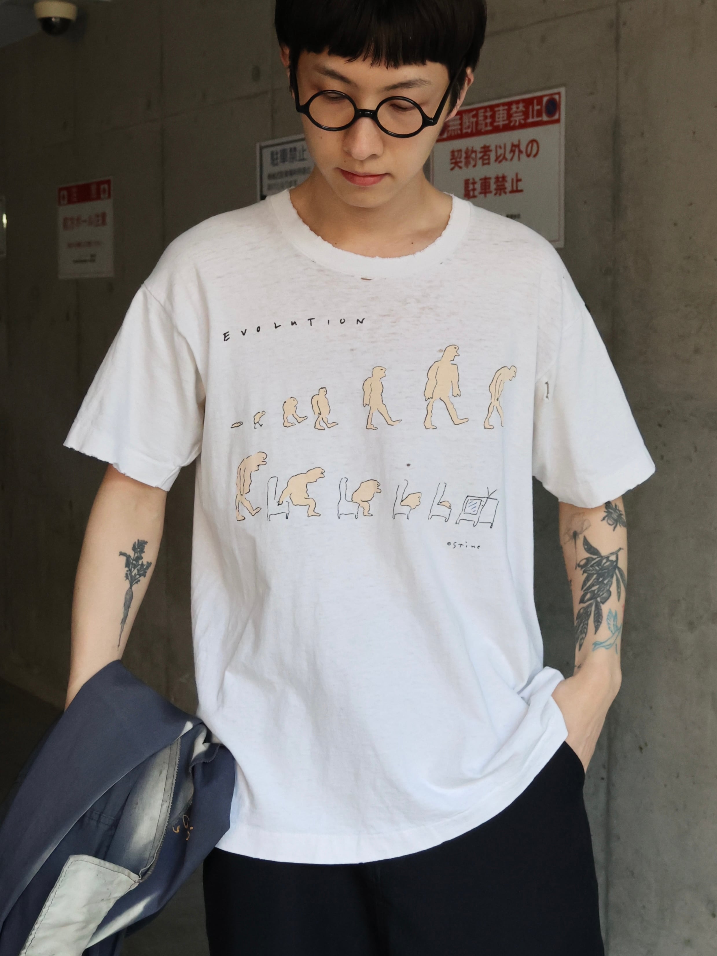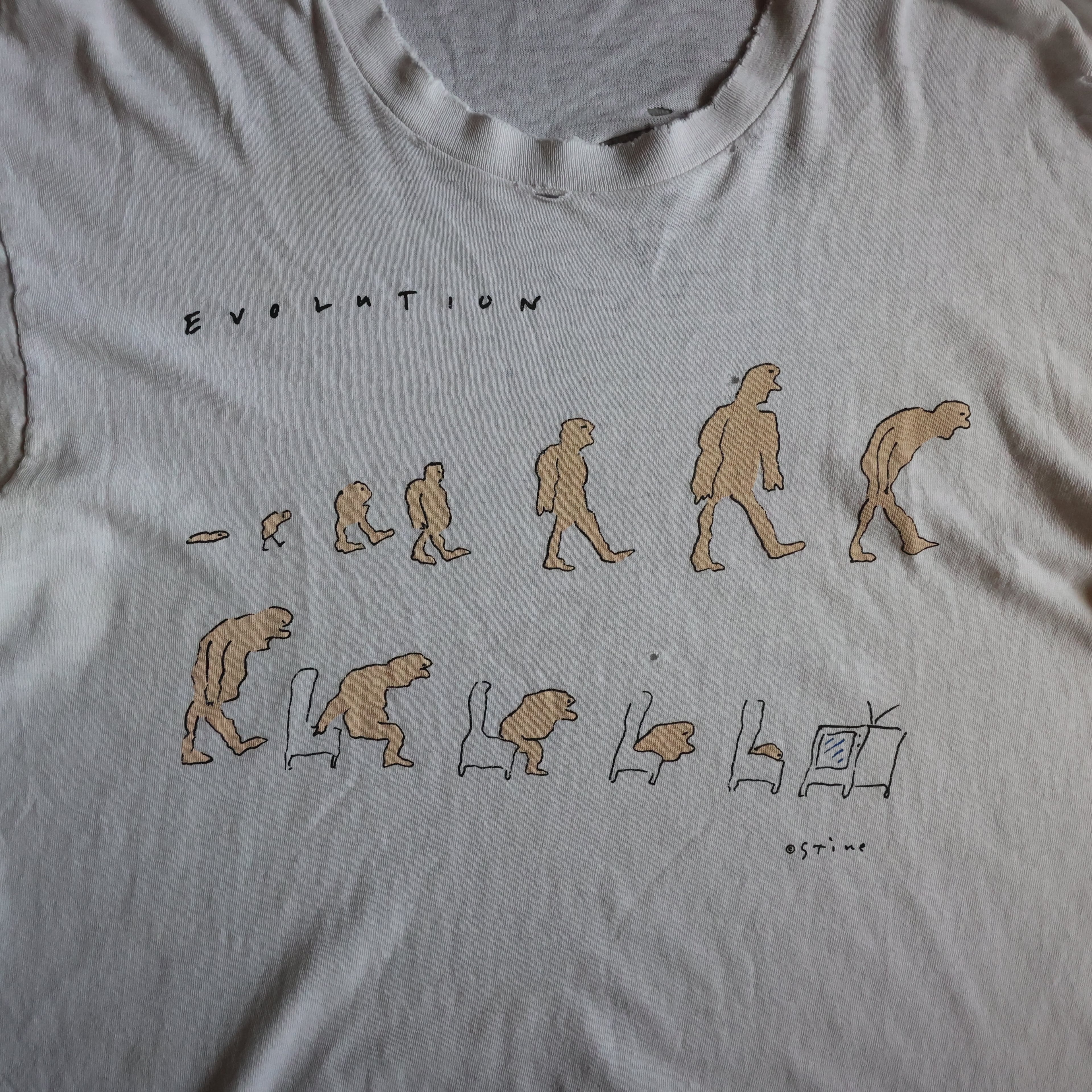 【USED】1990s USA製 Richard Stine ''EVOLUTION'' 襤褸 art TEE