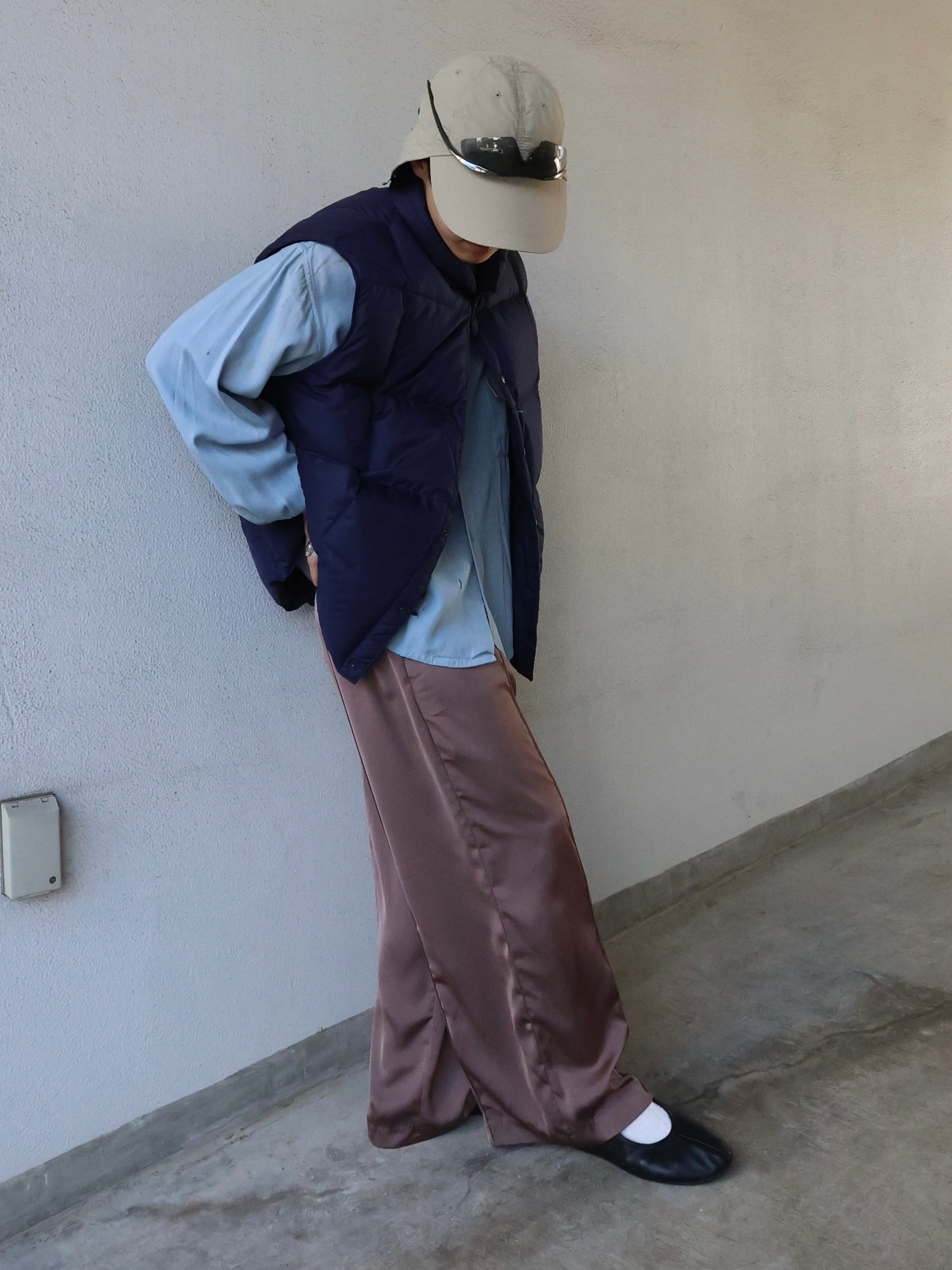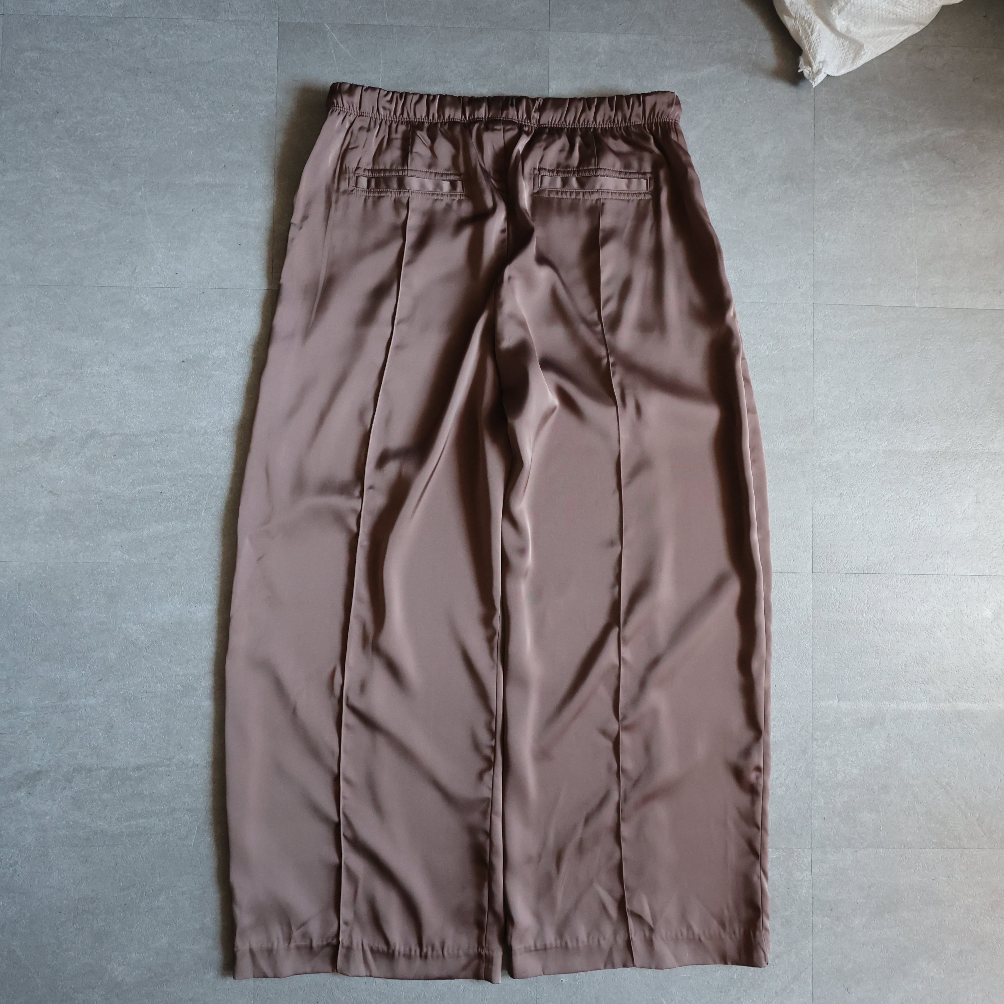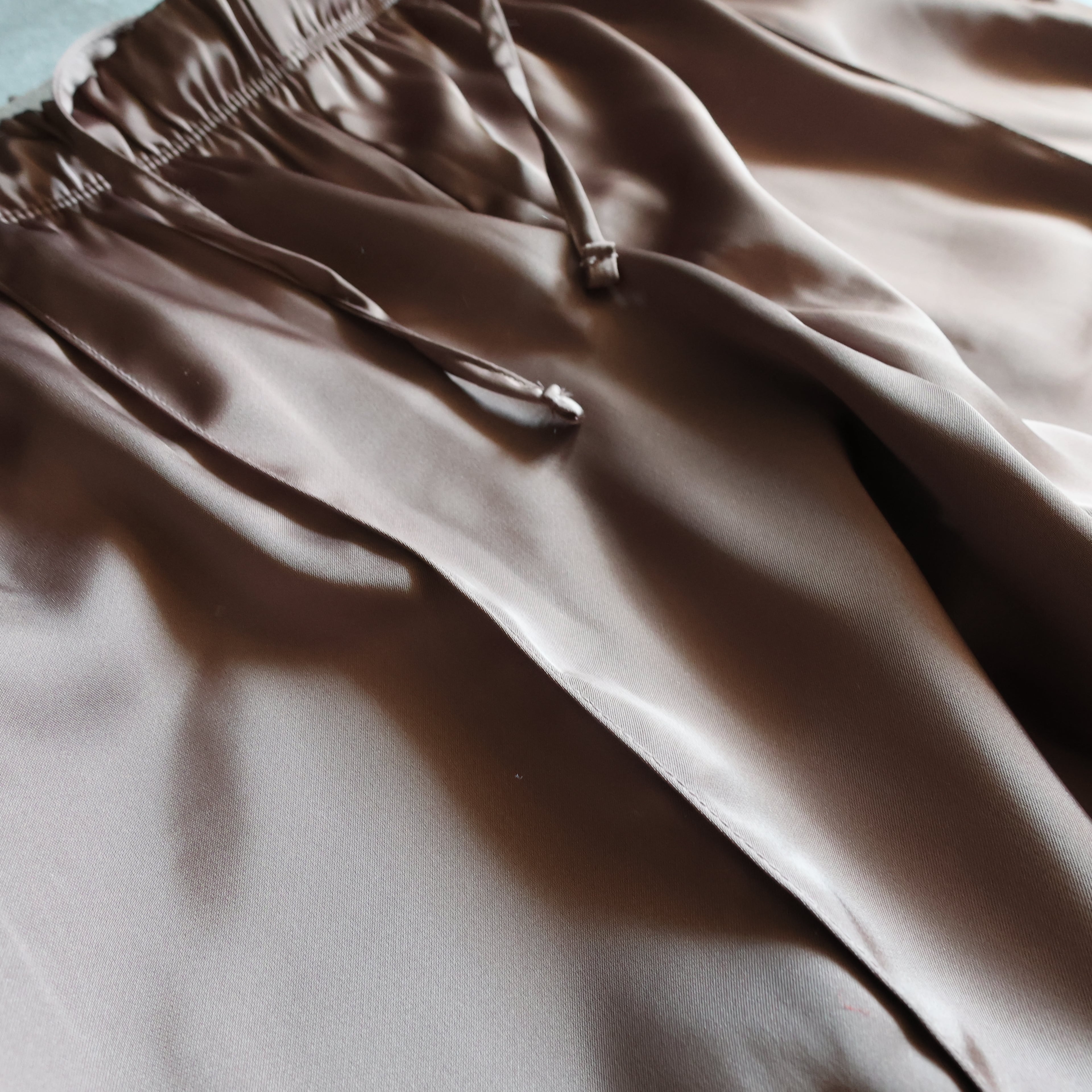 サテンのトラックパンツ。