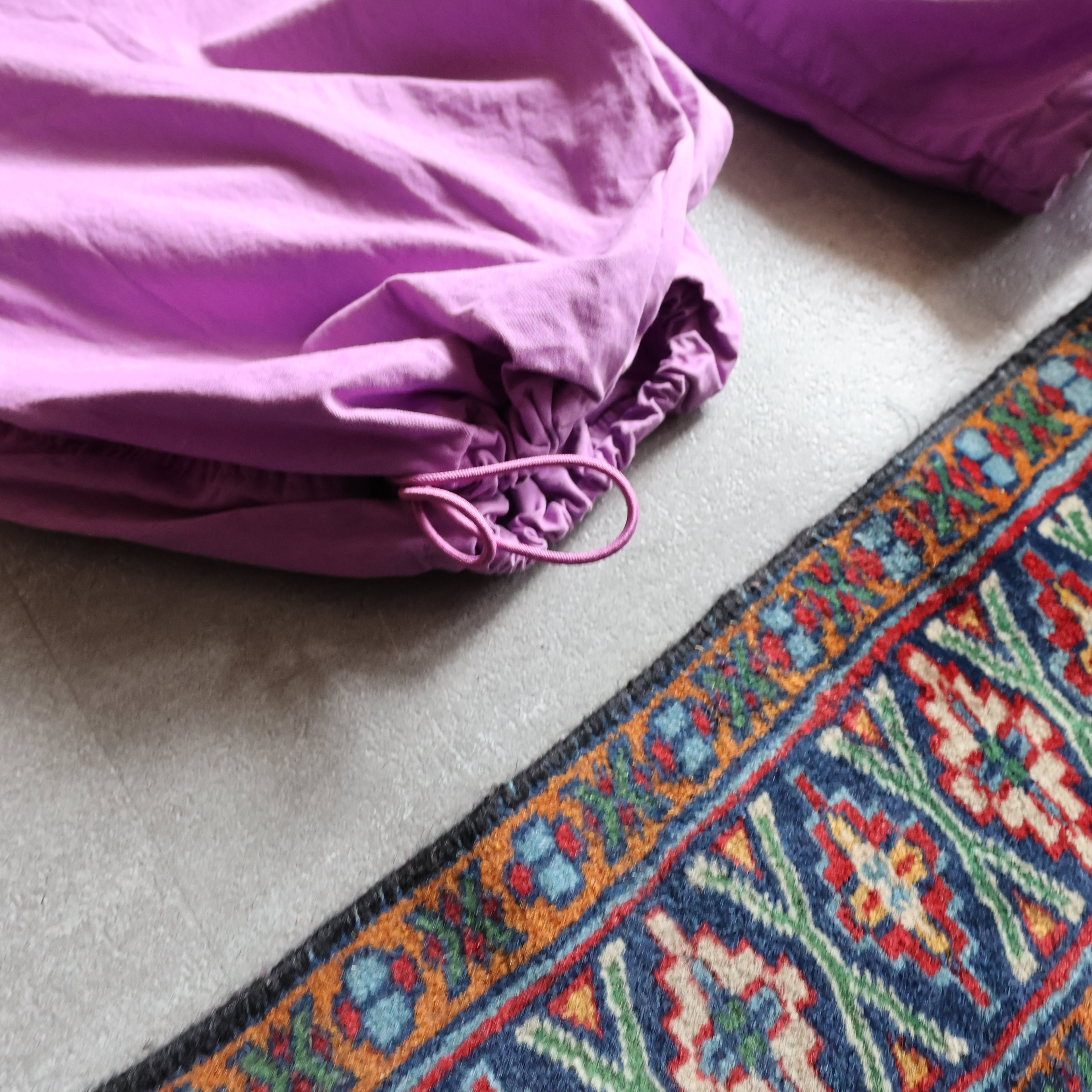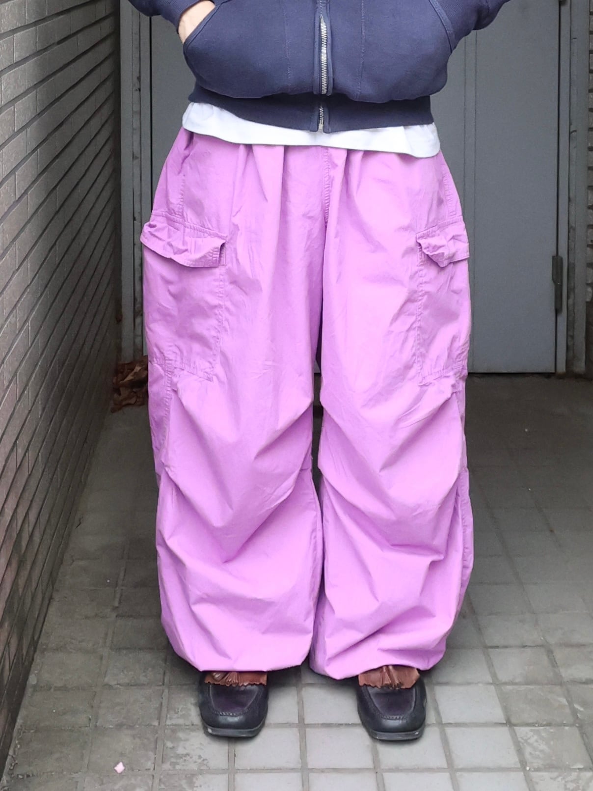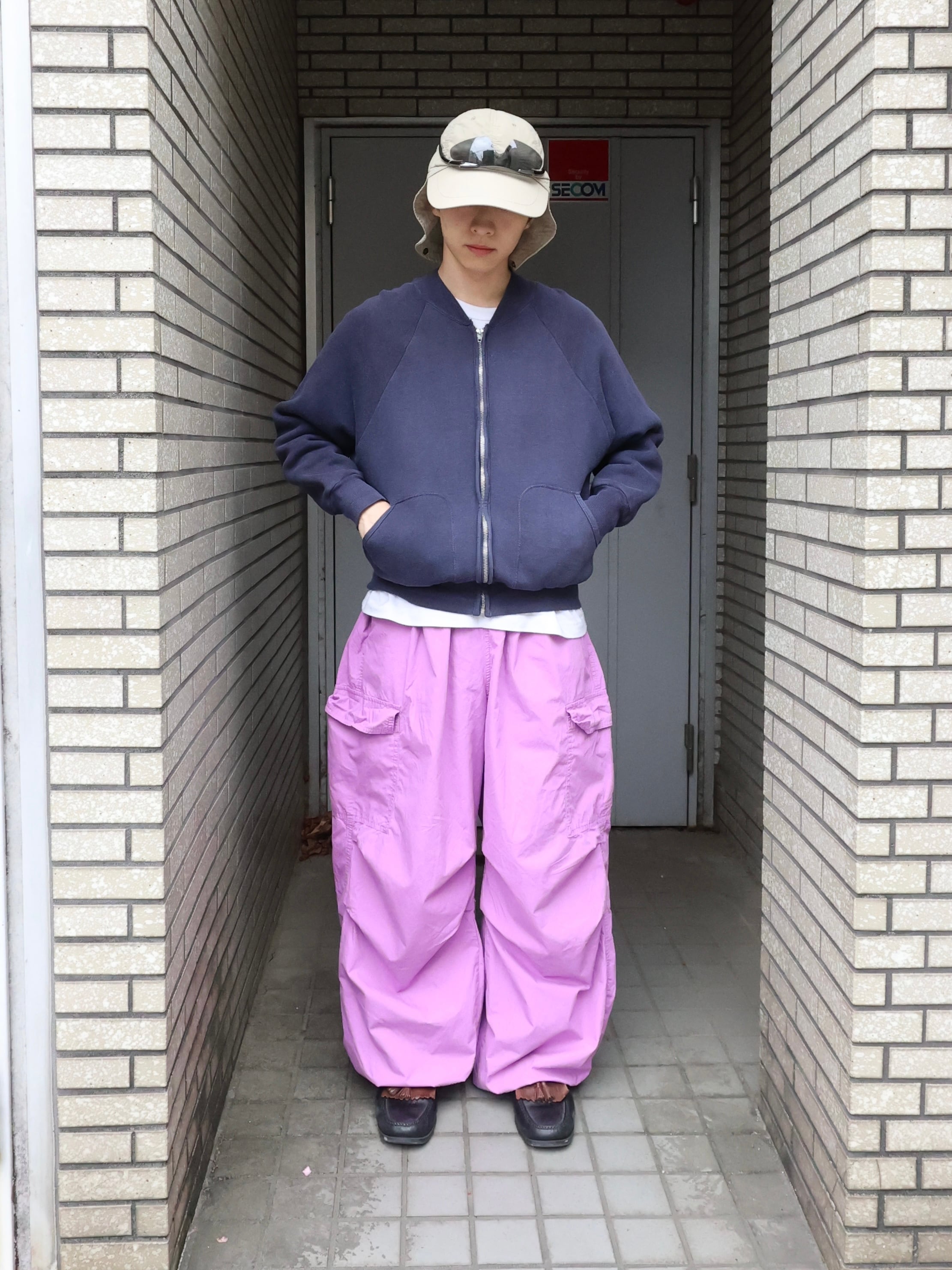 柔らかいパープルカラーにゆったりルーズなシルエット