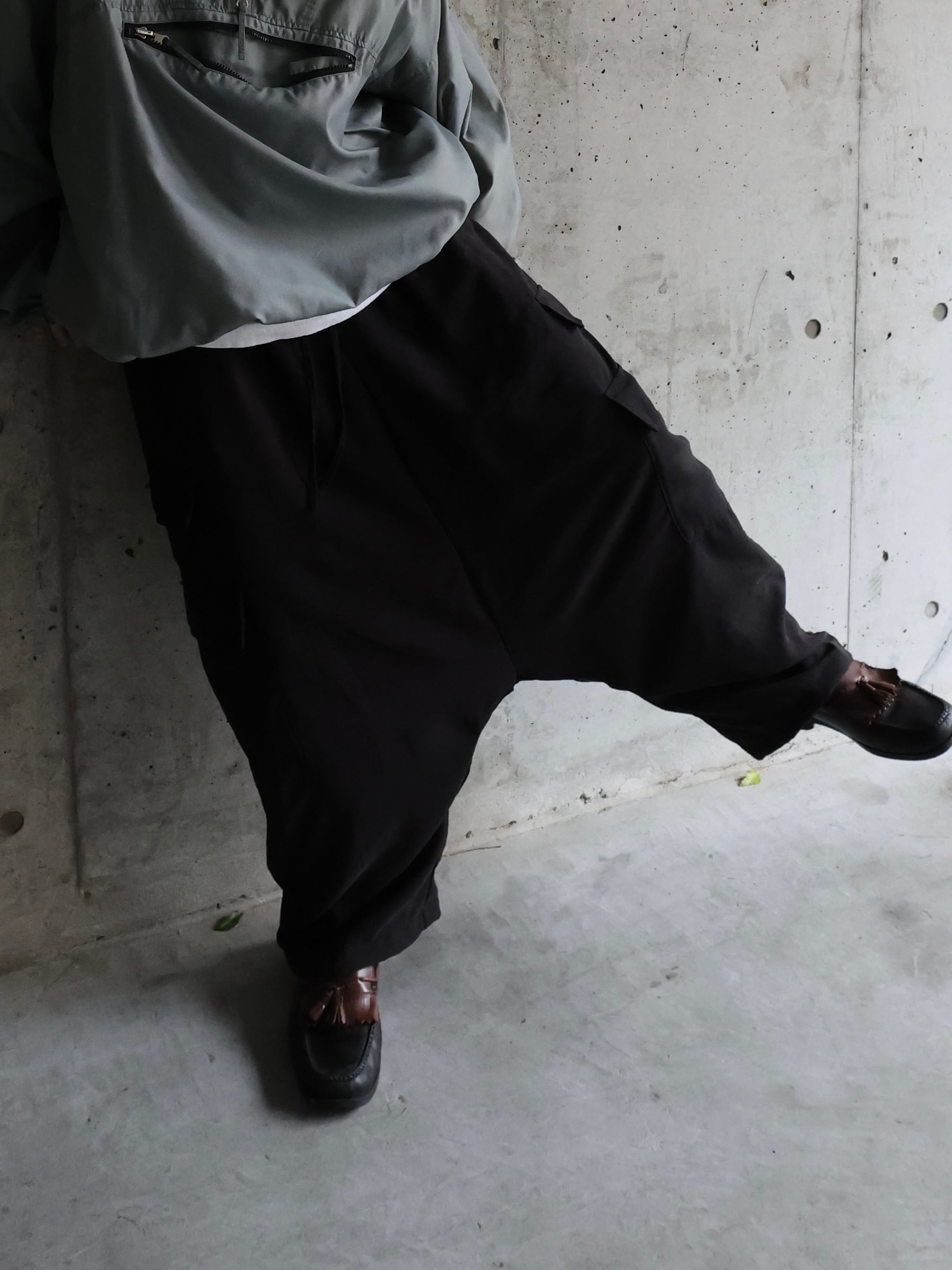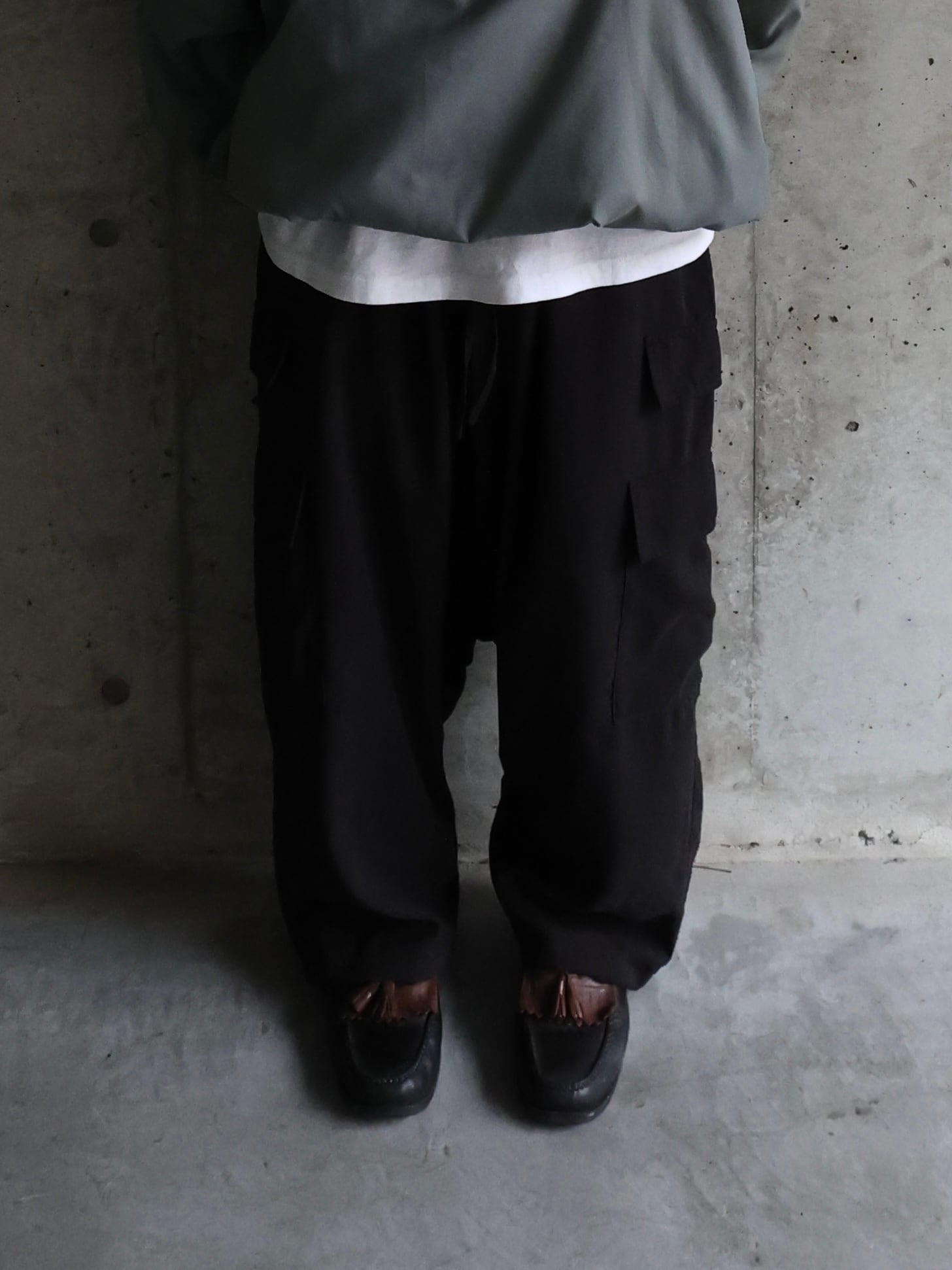 ウエストはドローコードに落ち感のあるシルエット。