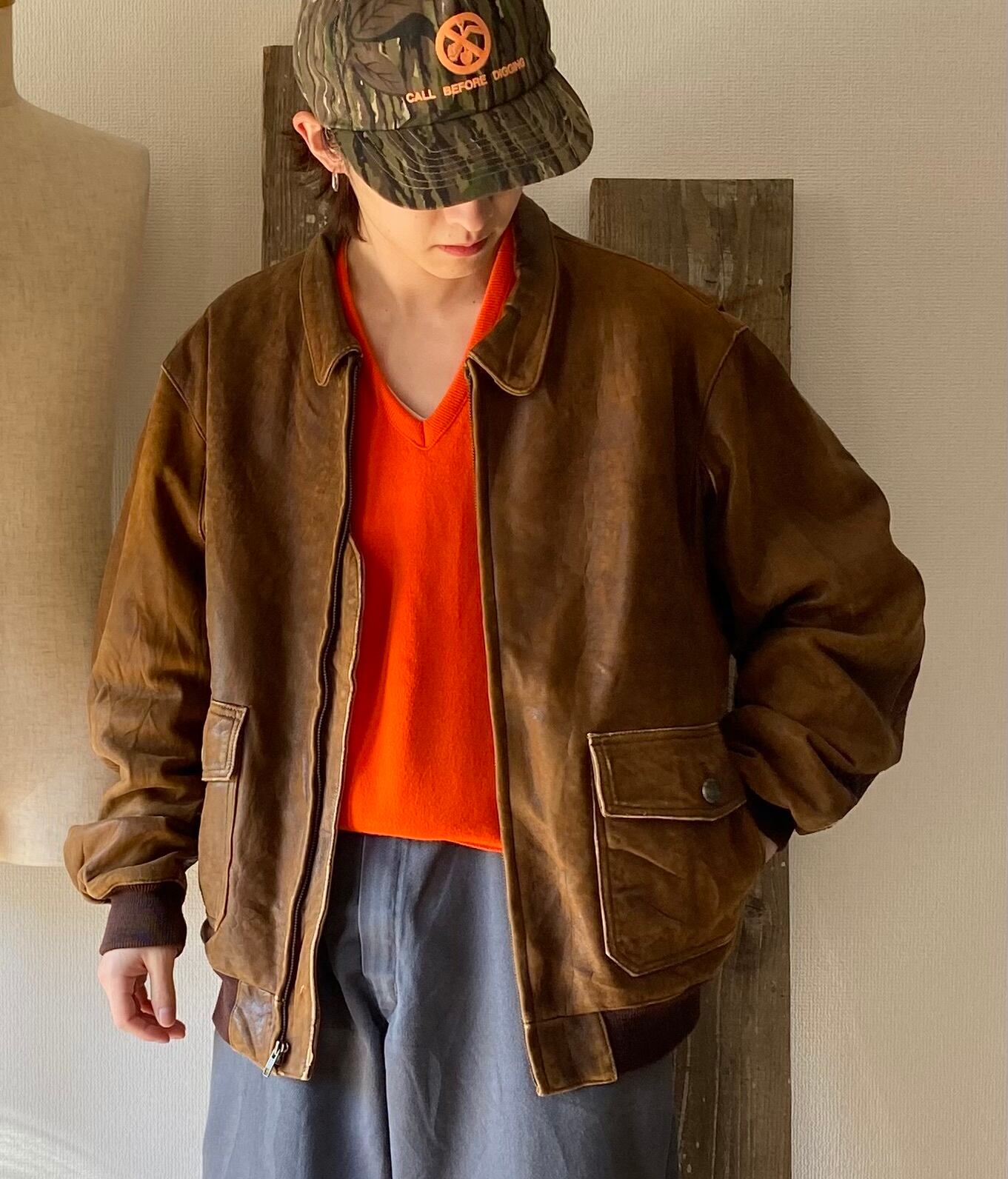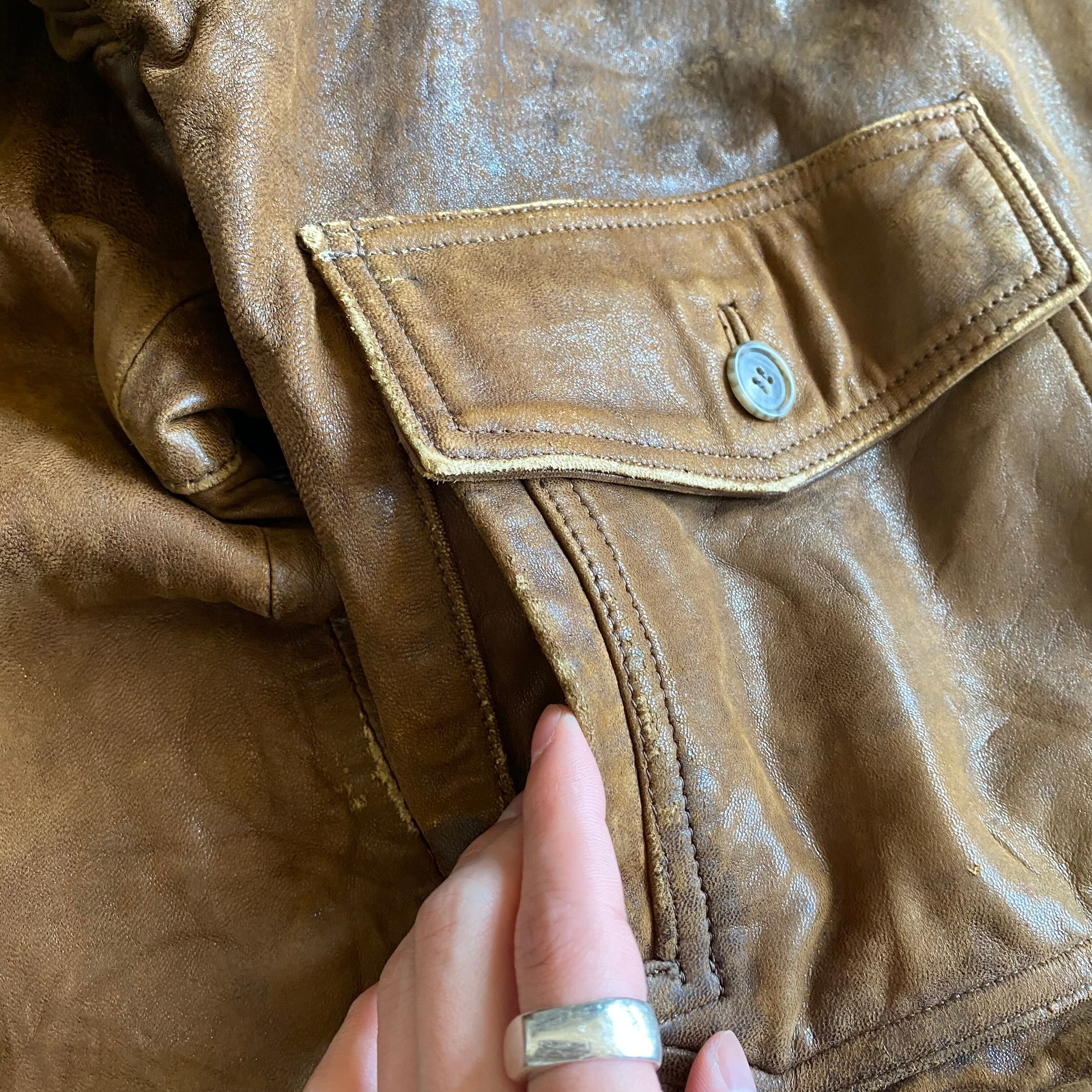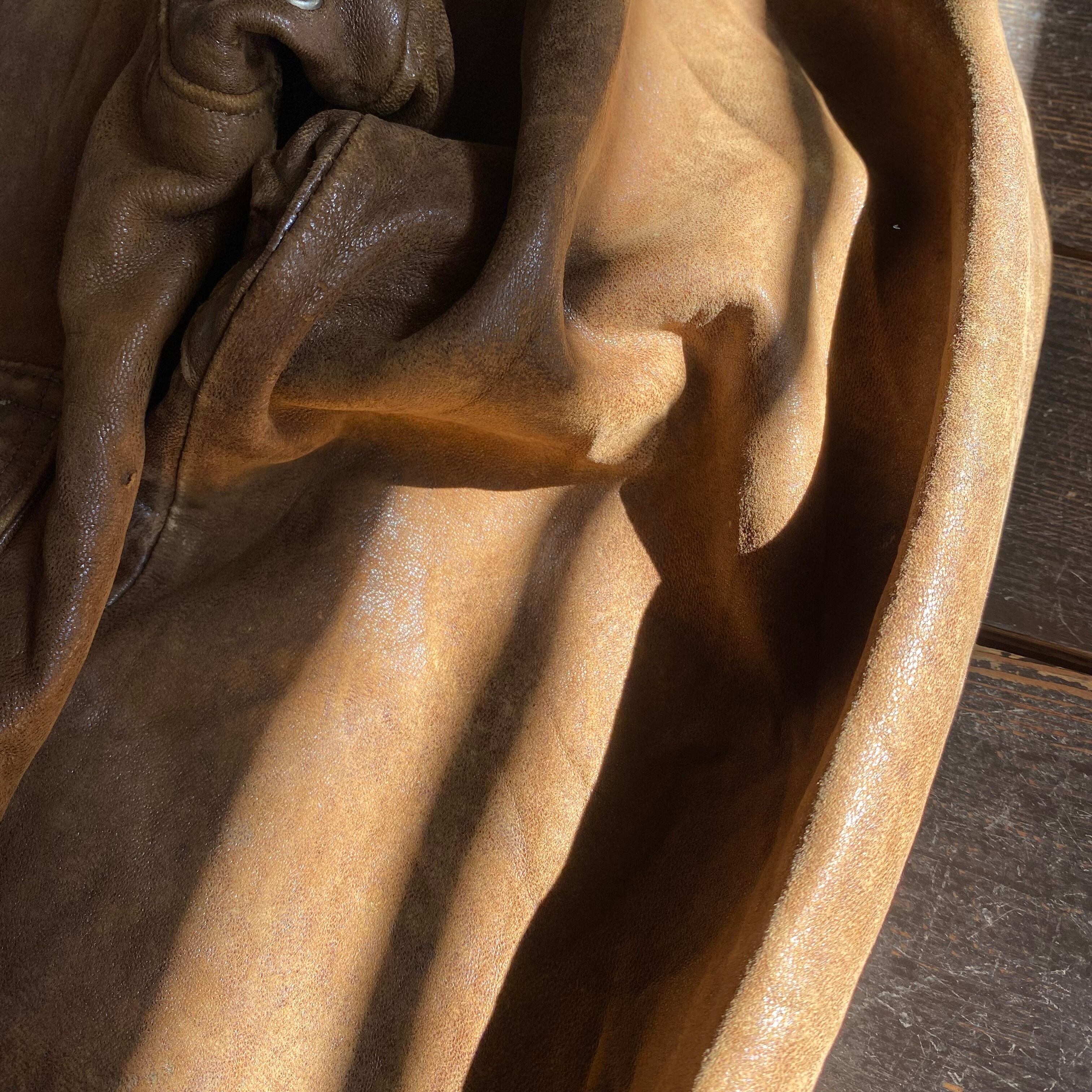 フライトジャケットをベースに、使い込まれたもちもちのレザーが最高なんです、、