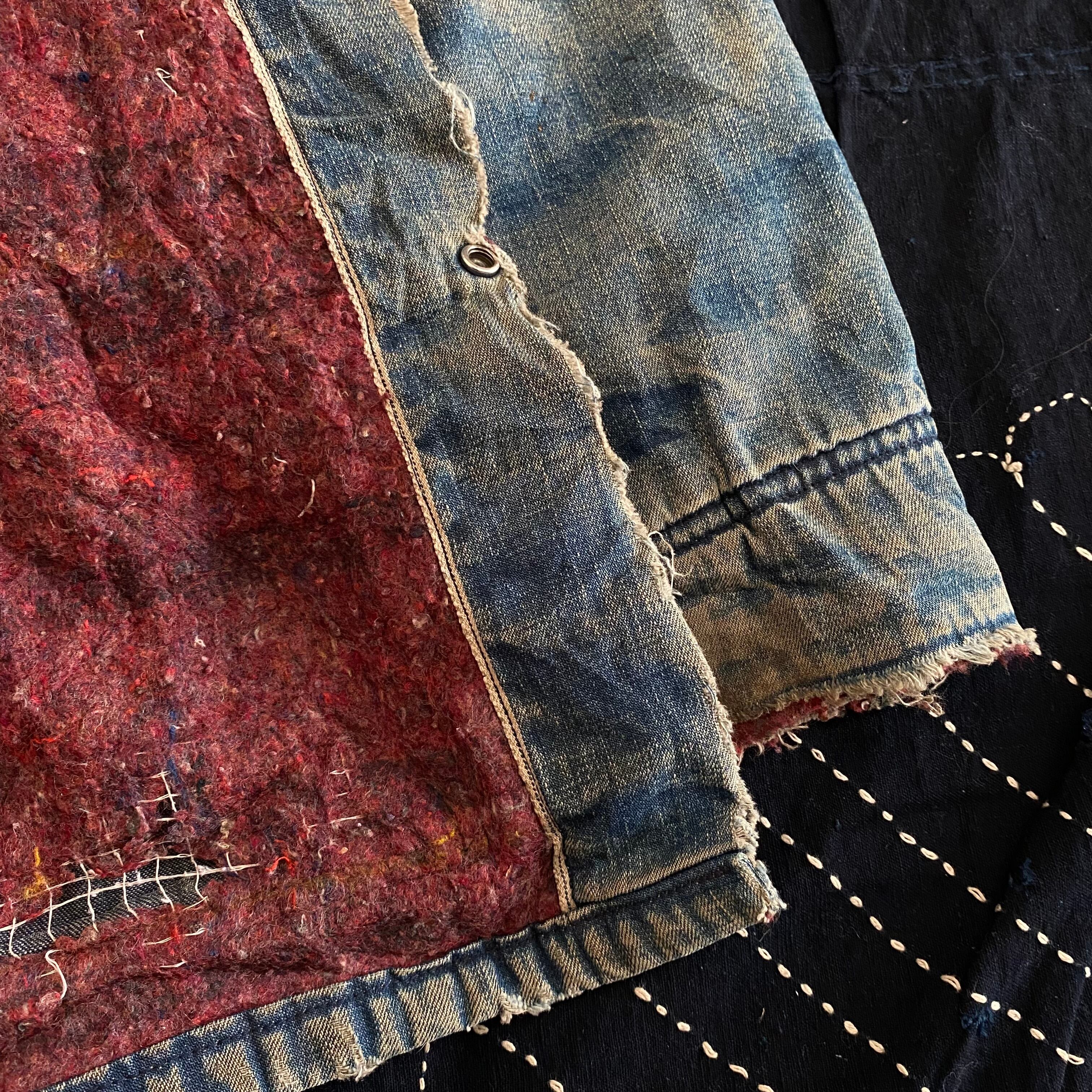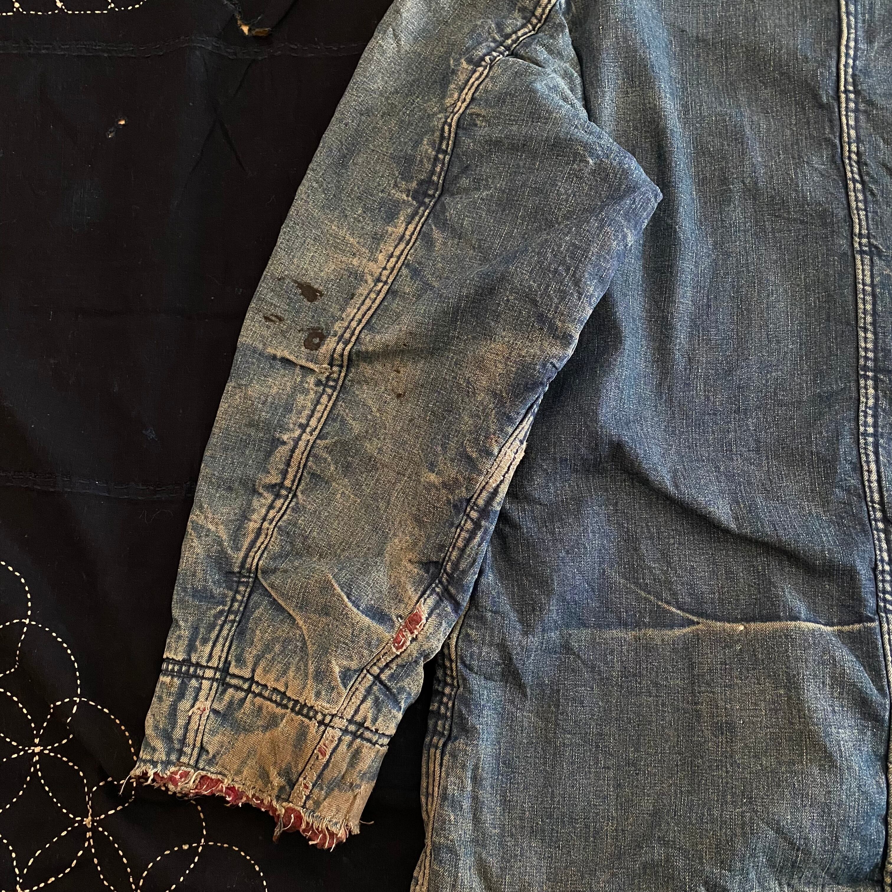 ワークの現場でリアルに使用されていたであろうヴィンテージデニム特有のアタリの付いたダイナミックな色落ちになっています。