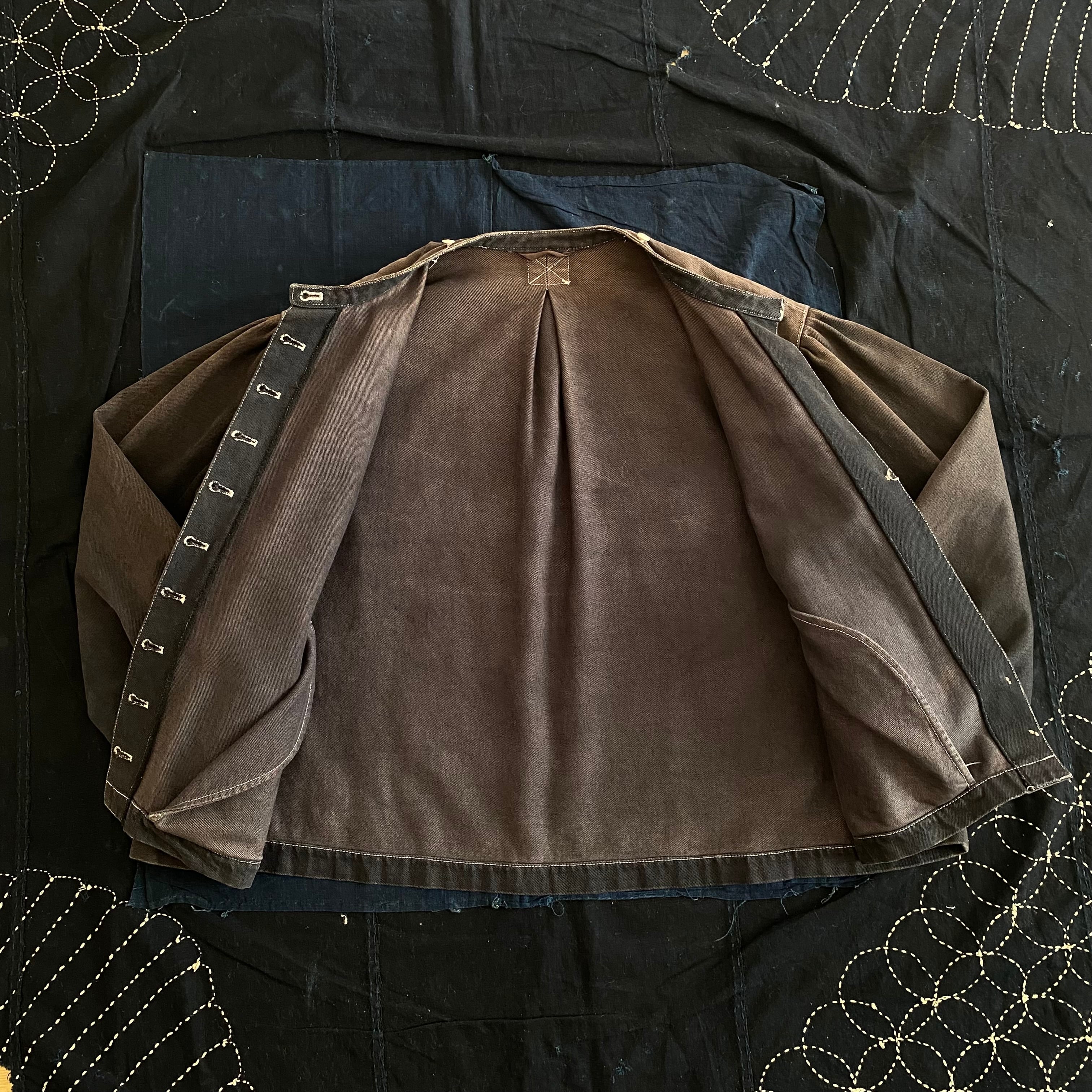 こちらはブラックのデニム生地にユーロっぽさのあるデザインでフロントのボタンも凄まじい。