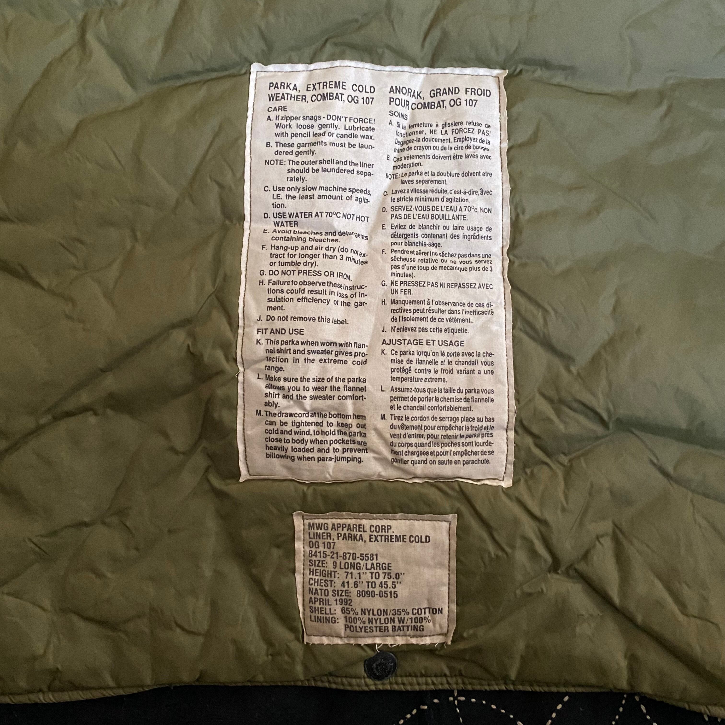 【USED】1992's Canadian ARMY ECW combat Parka full set