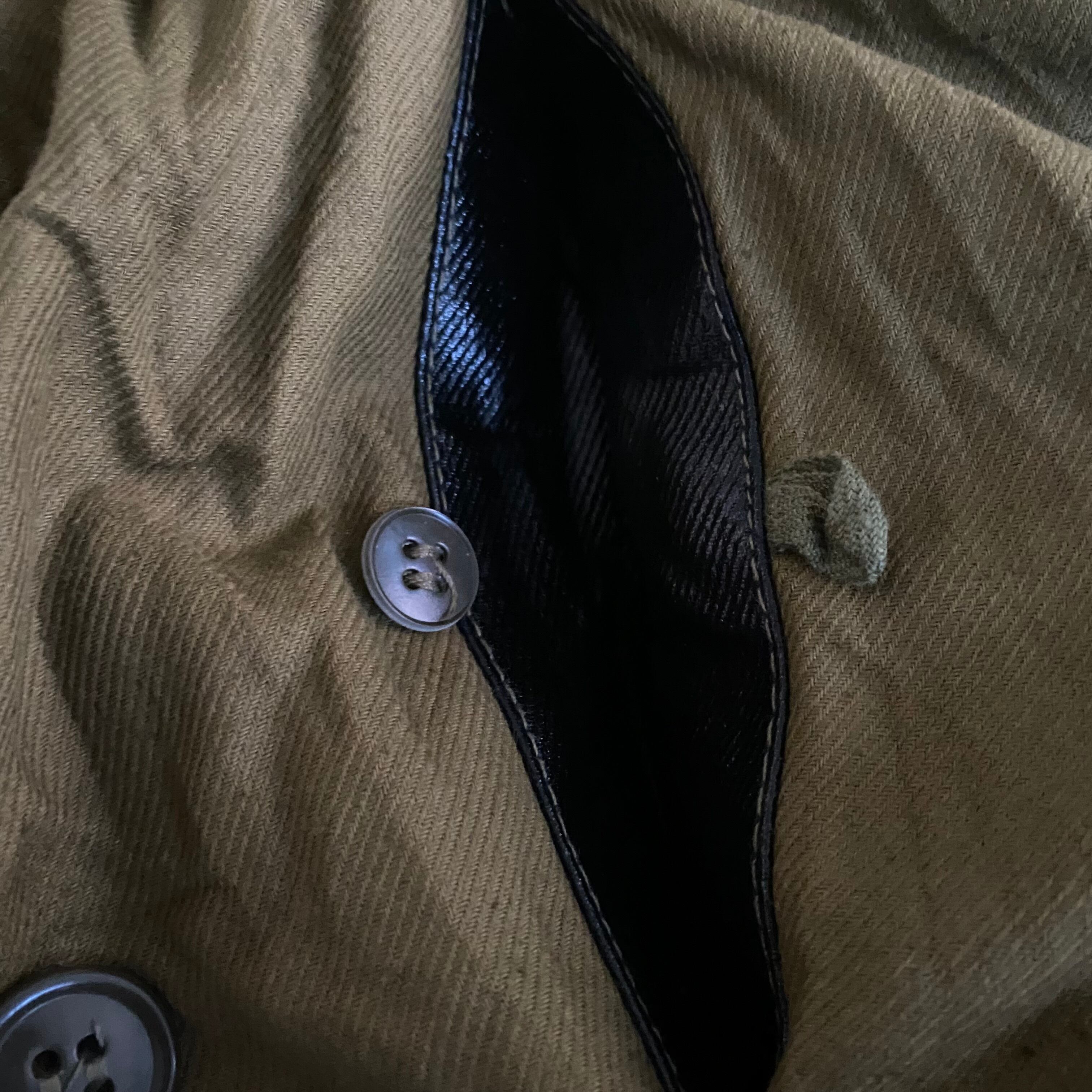 内ポケットの裏地はコーティングされたようなレザー調の裏地になっています。