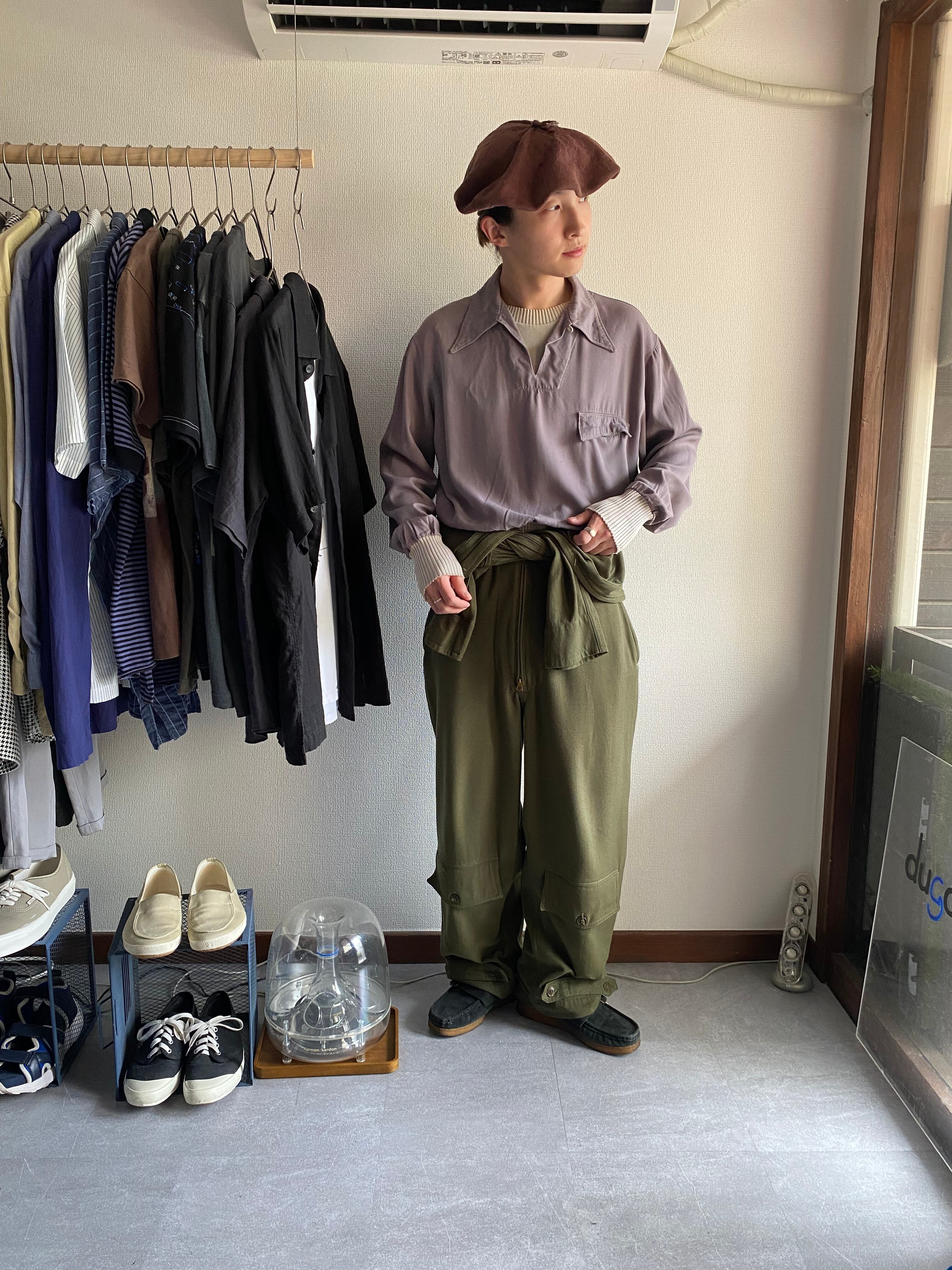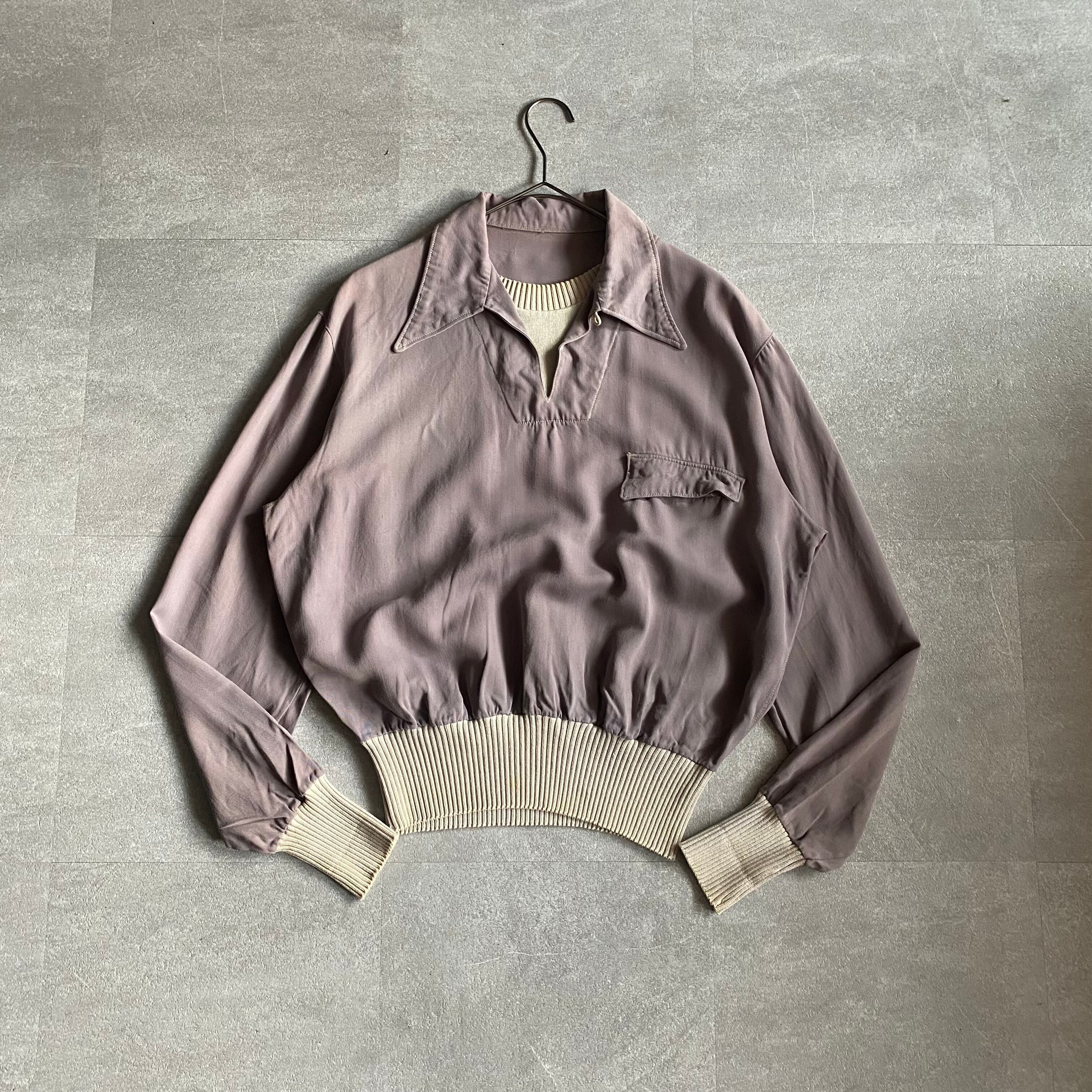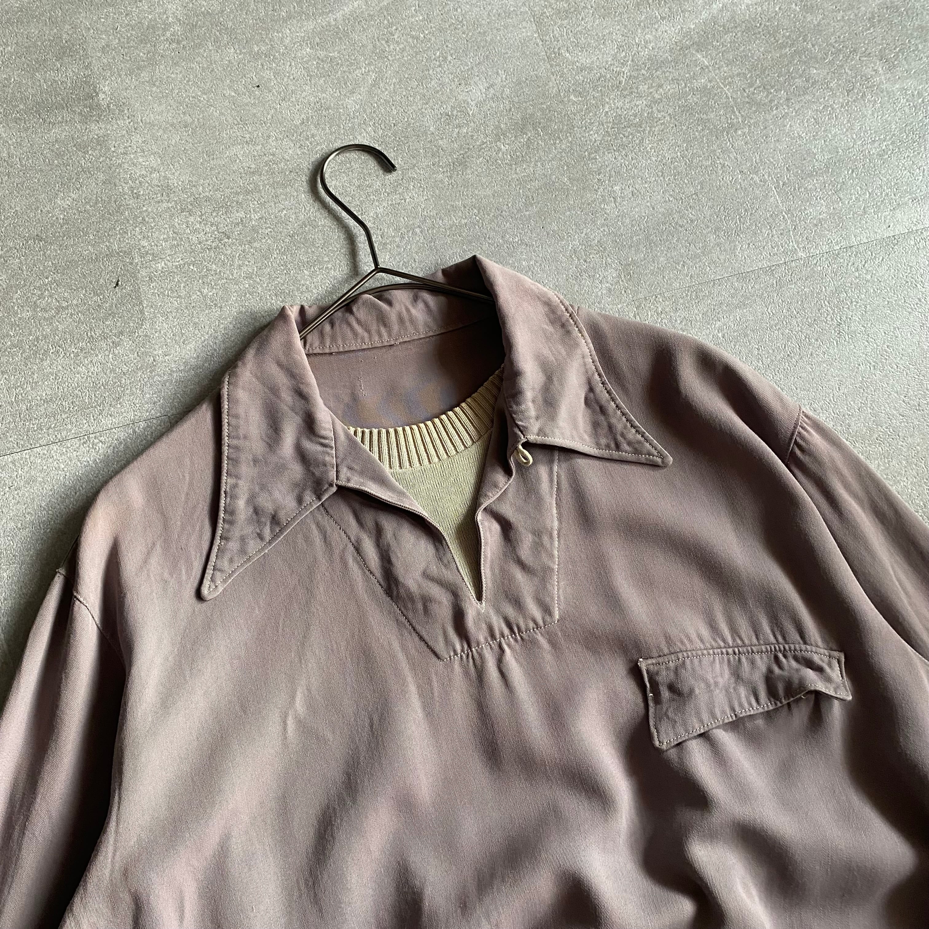 【vintage】40~50's rayon gabardine pullover layered shirt