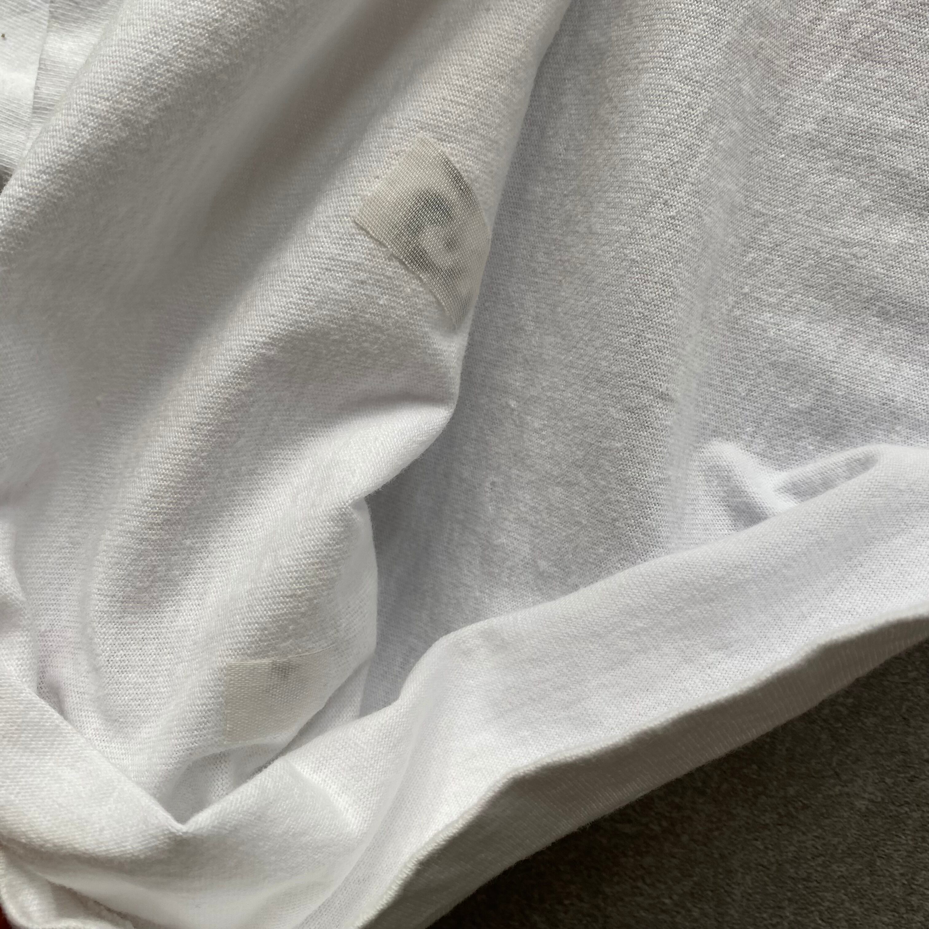 USA製なフルーツボディー、バック部分に穴を補修した跡と若干の汚れありますが普段から古着を着用される方であれば問題なく着用できるかと思います。
