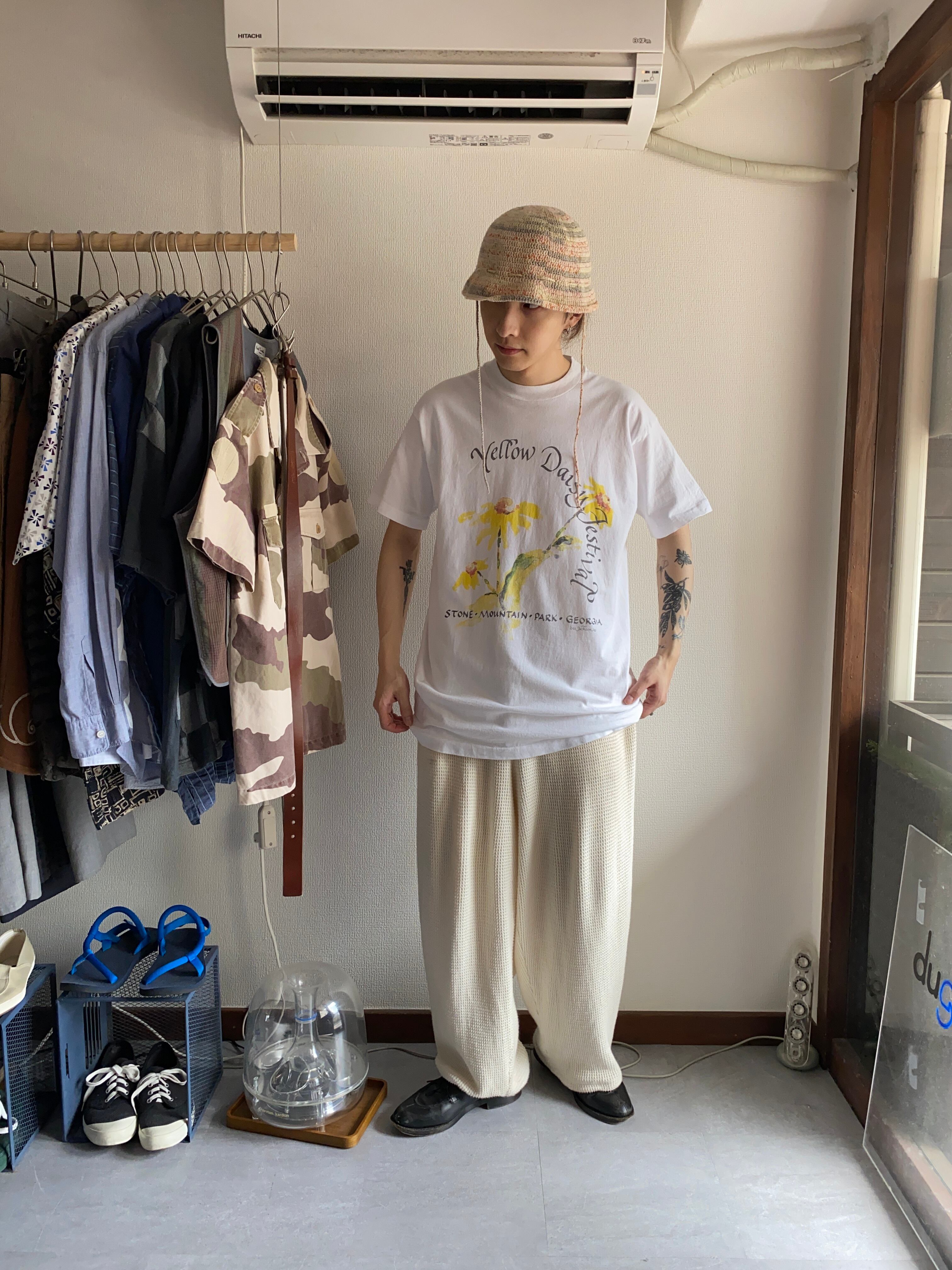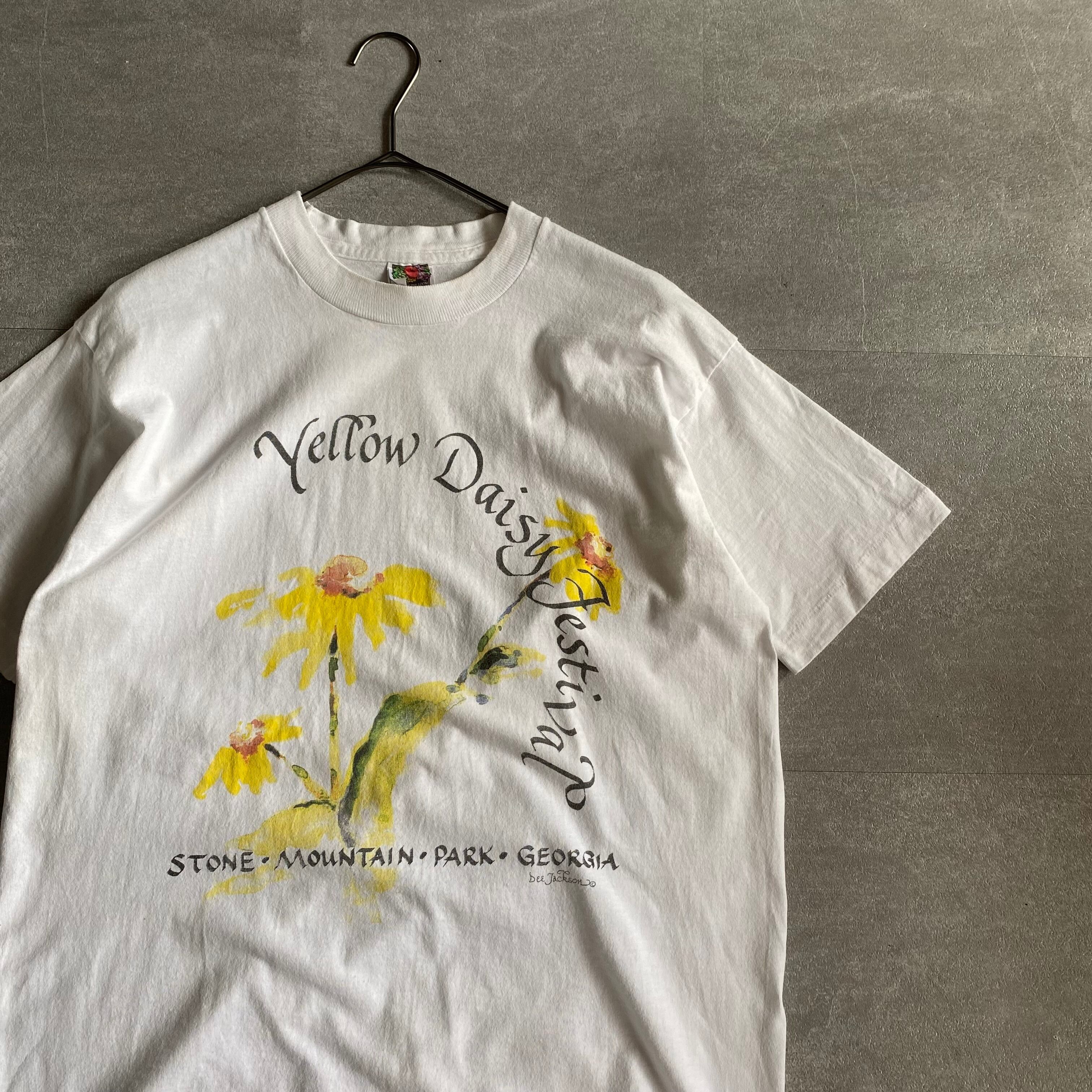 【USED】1990's USA製 yellow Daisy art TEE