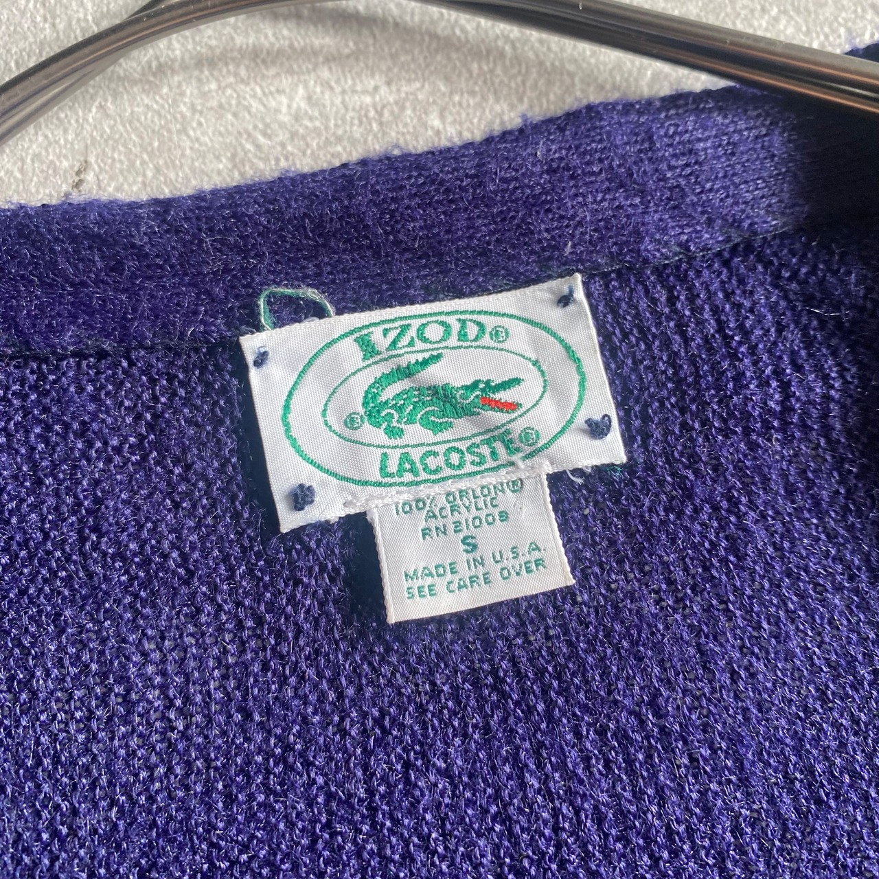 【Vintage】1980's USA製 IZOD LACOSTE 茄子紺 acrylic cardigan