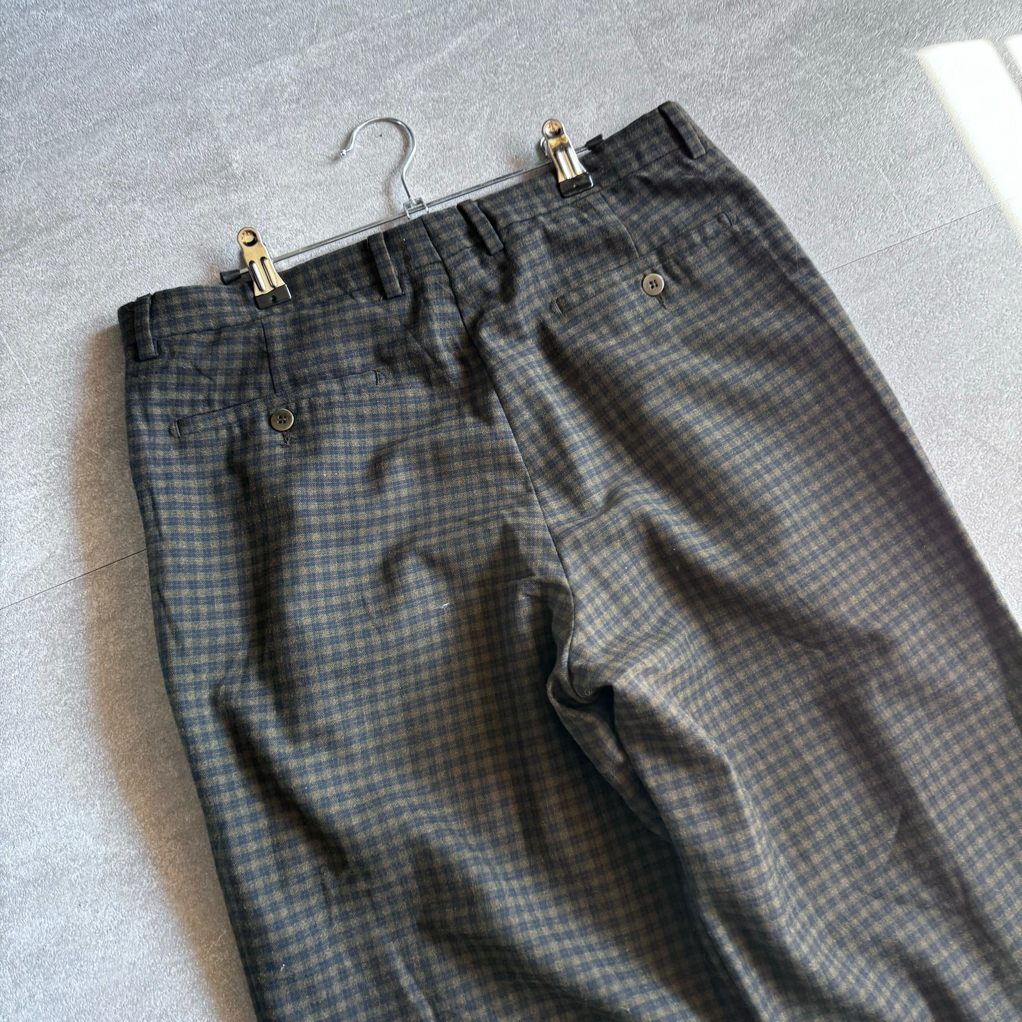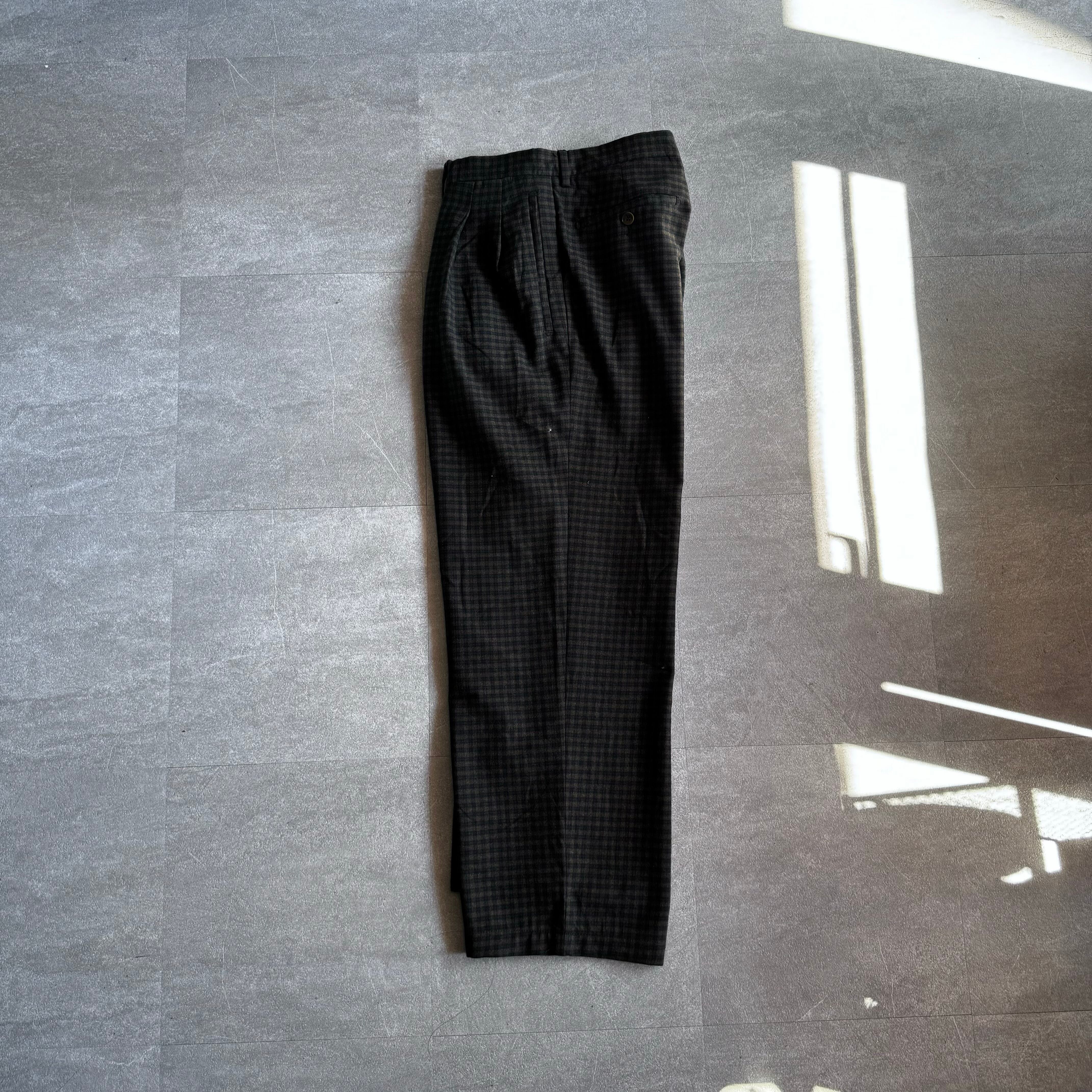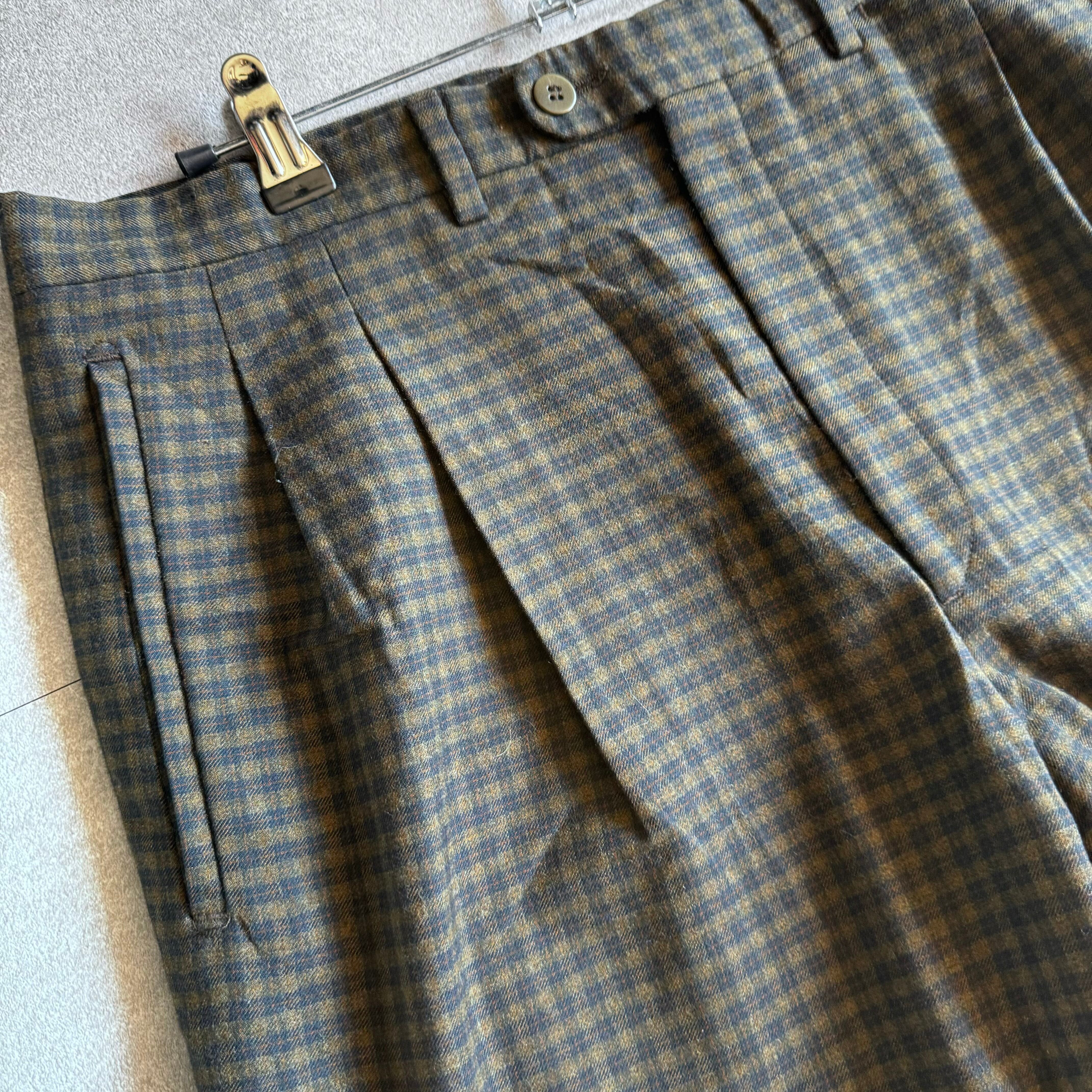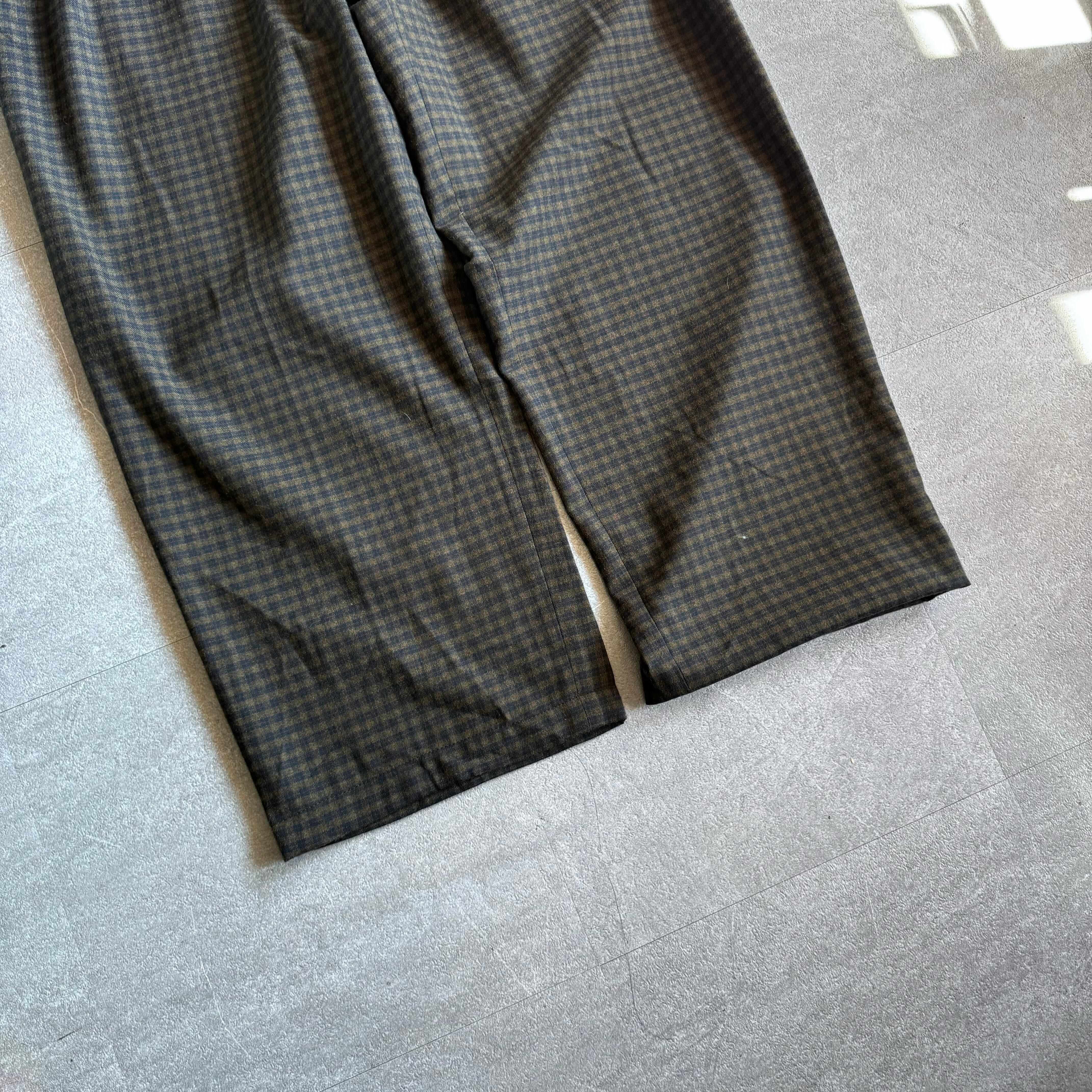 【USED】 80~90's Italy製 wool poliester check wide slacks