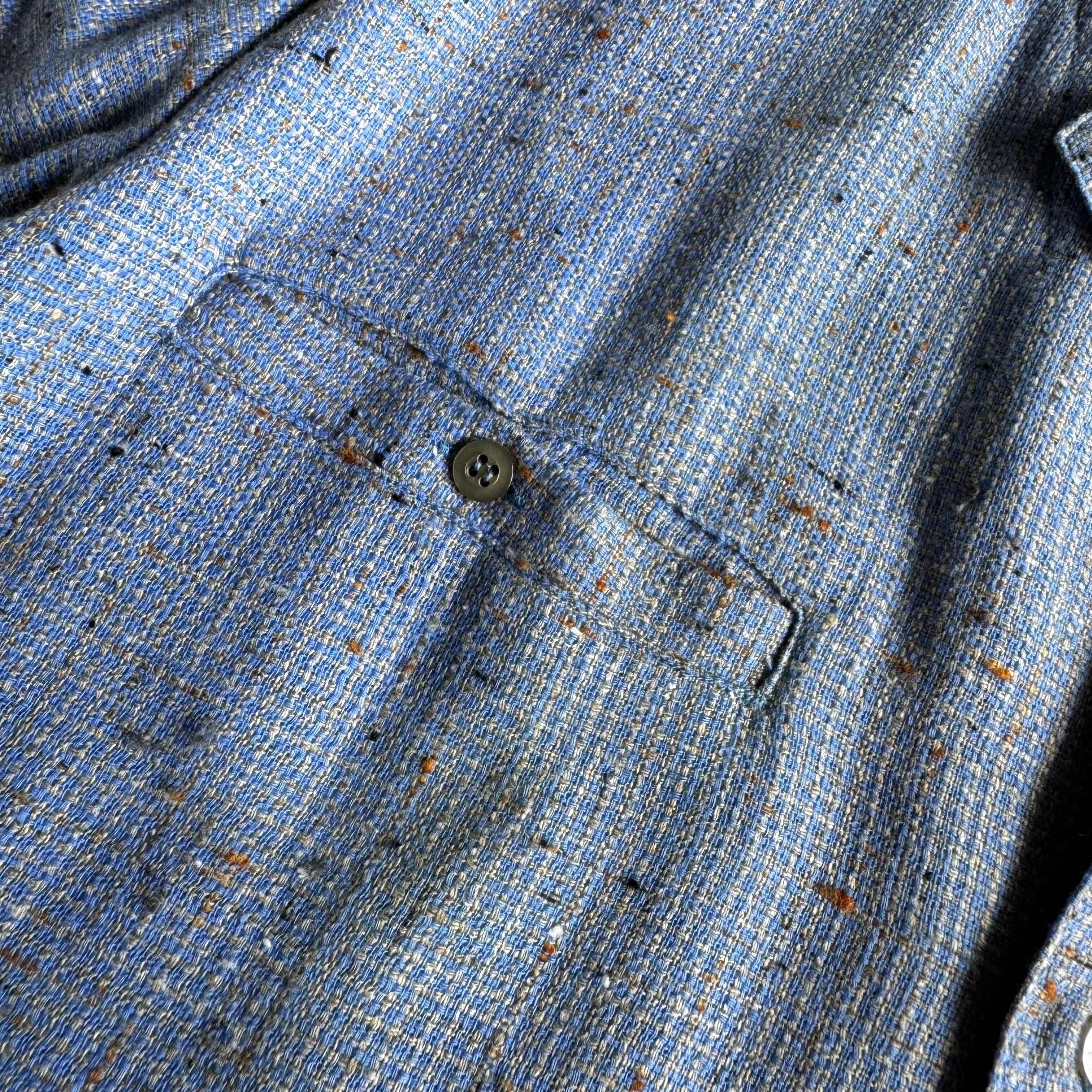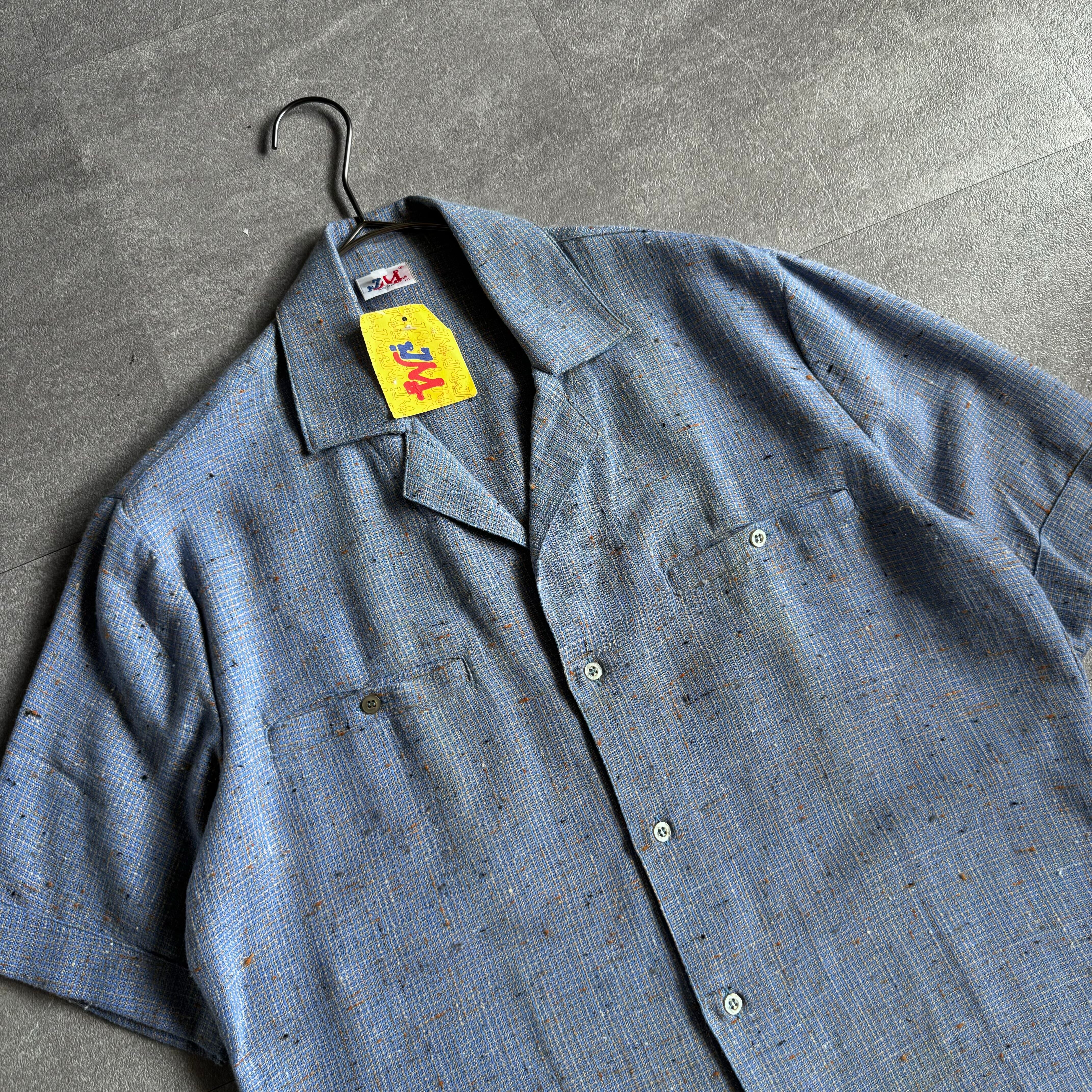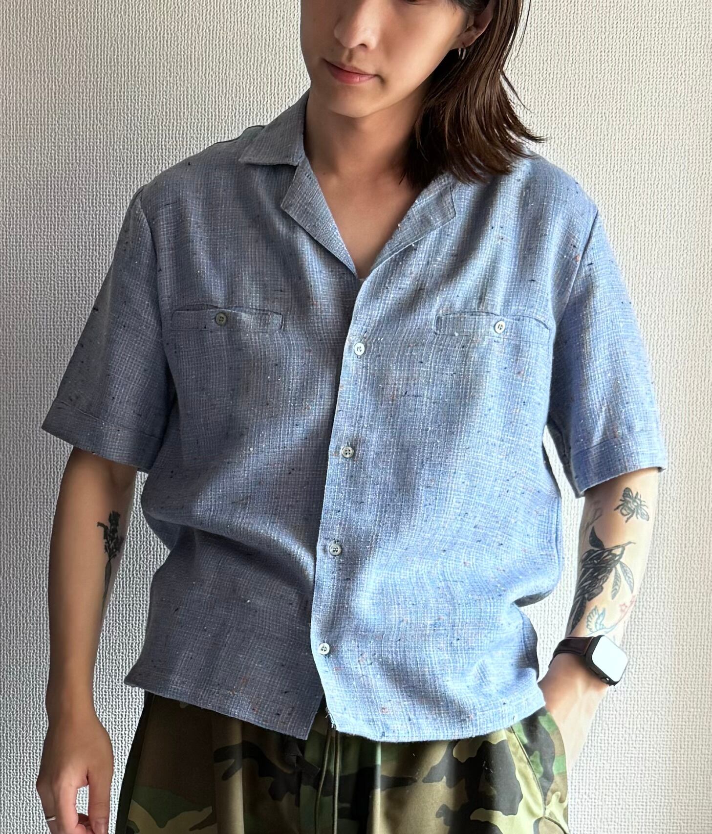 【dead stock】1980's Italy製 ''絣ネップ'' open-collar shirt