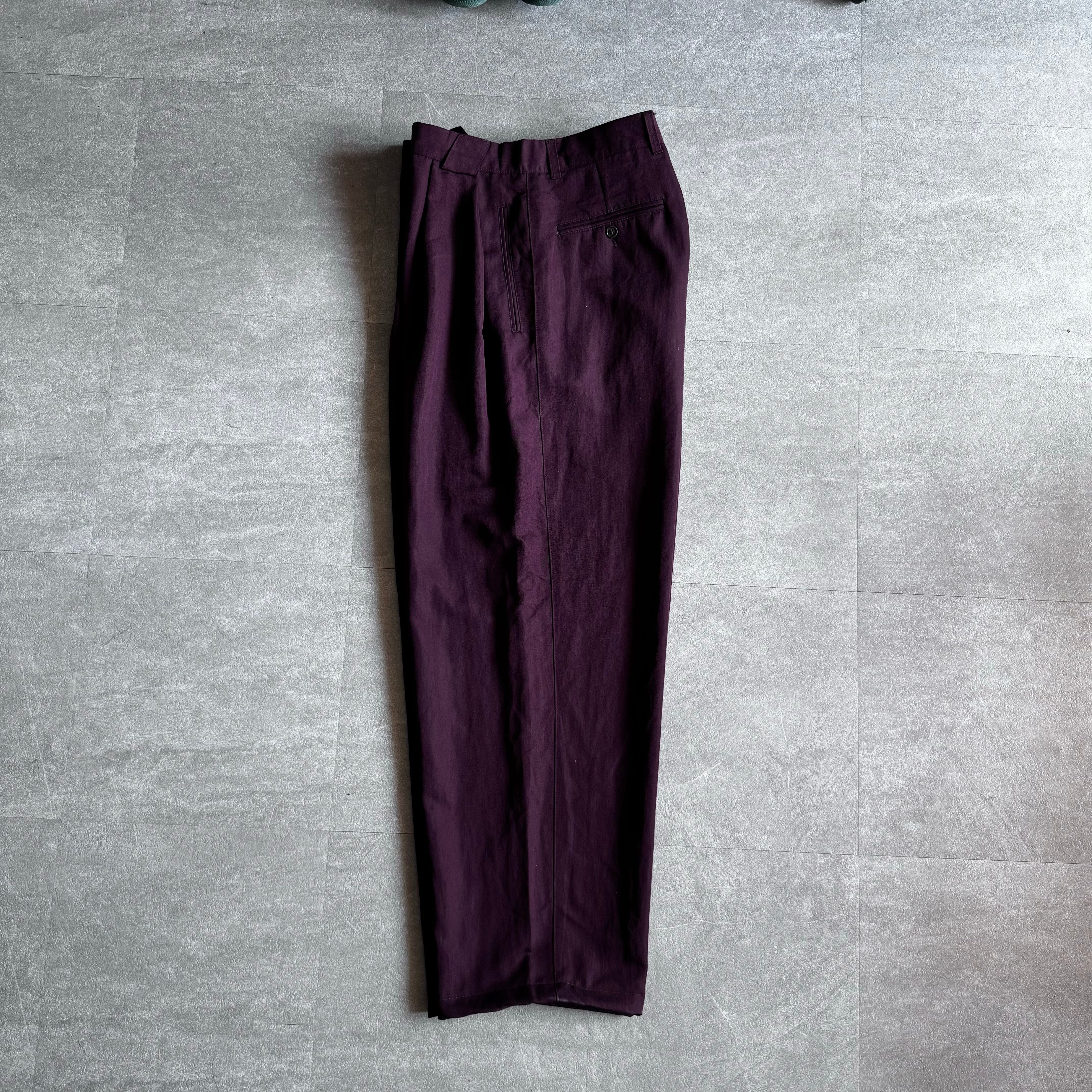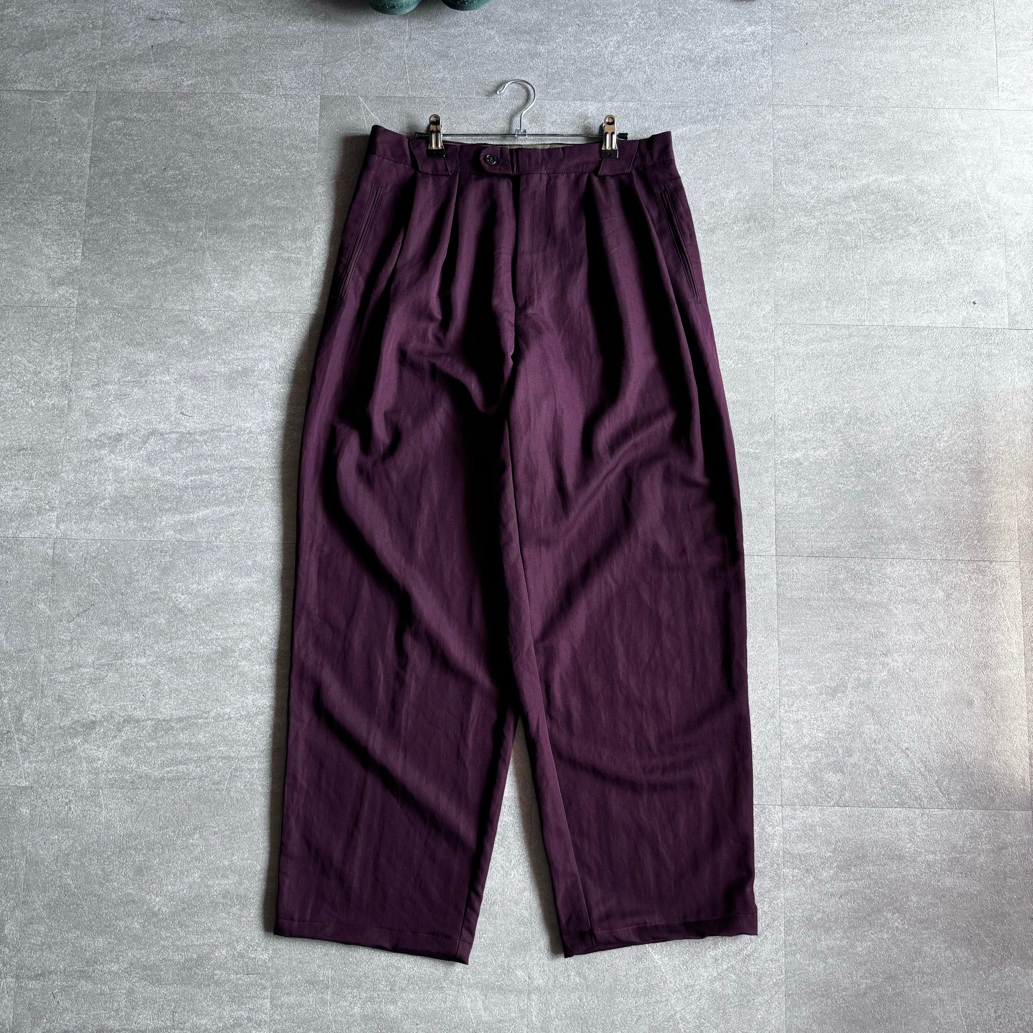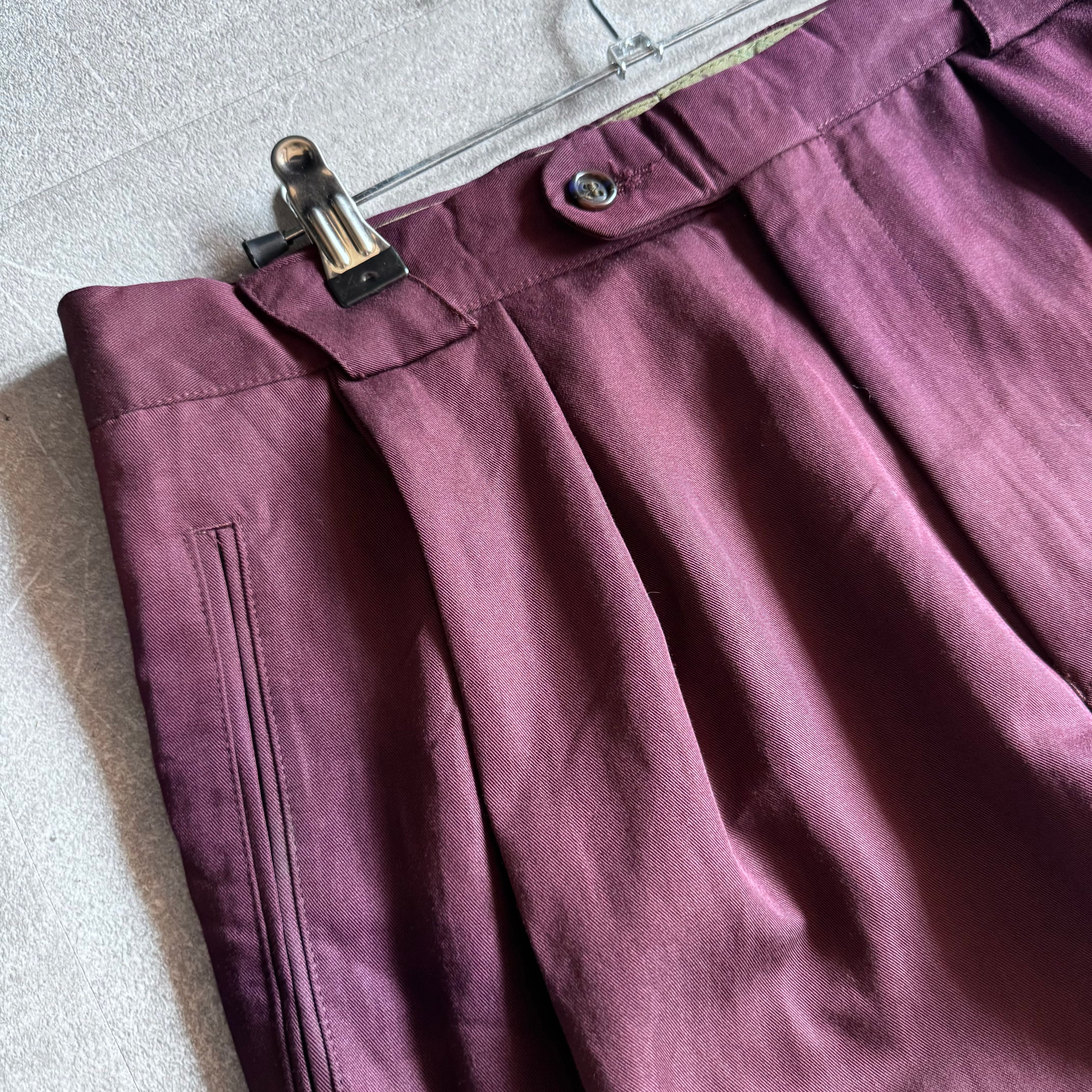 【USED】1990's rayon×polia wide tack slacks