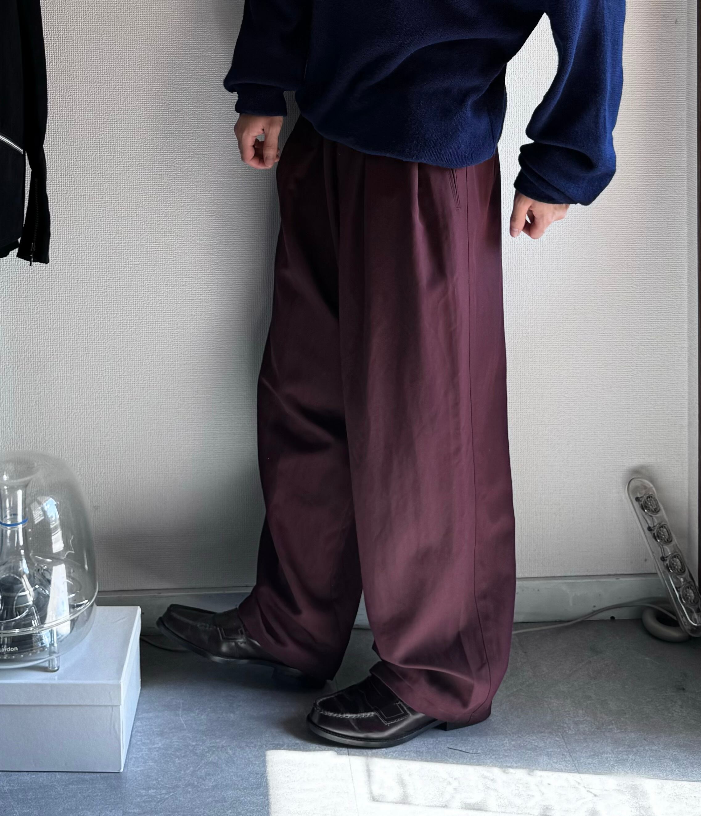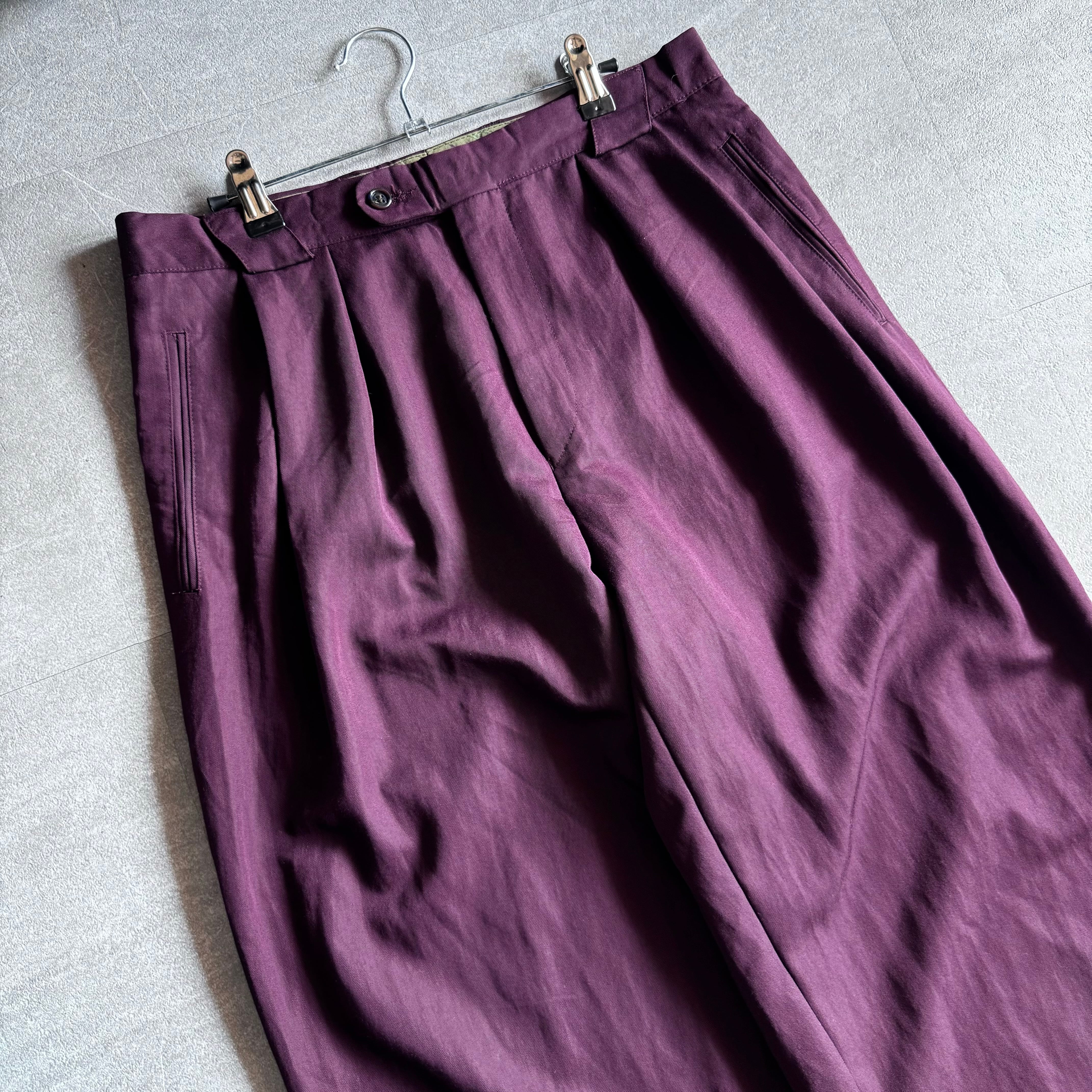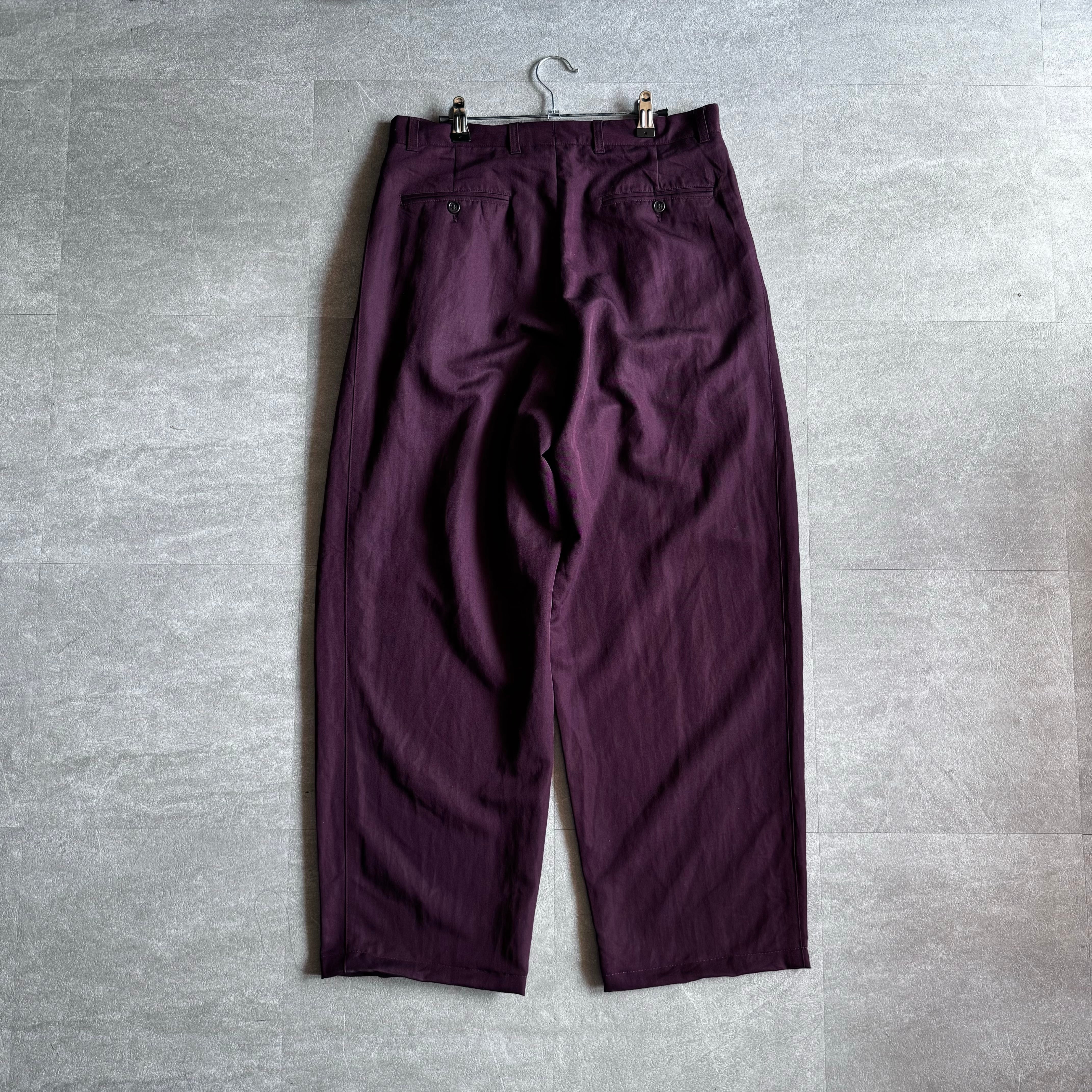 【USED】1990's rayon×polia wide tack slacks